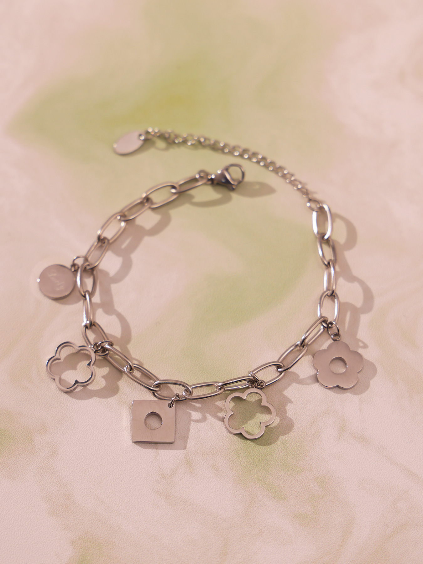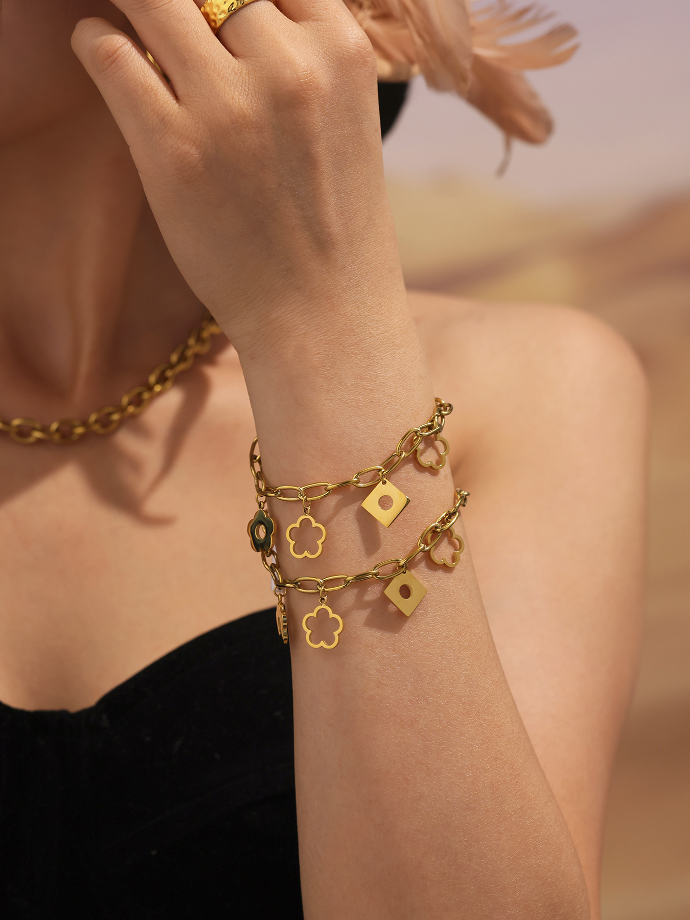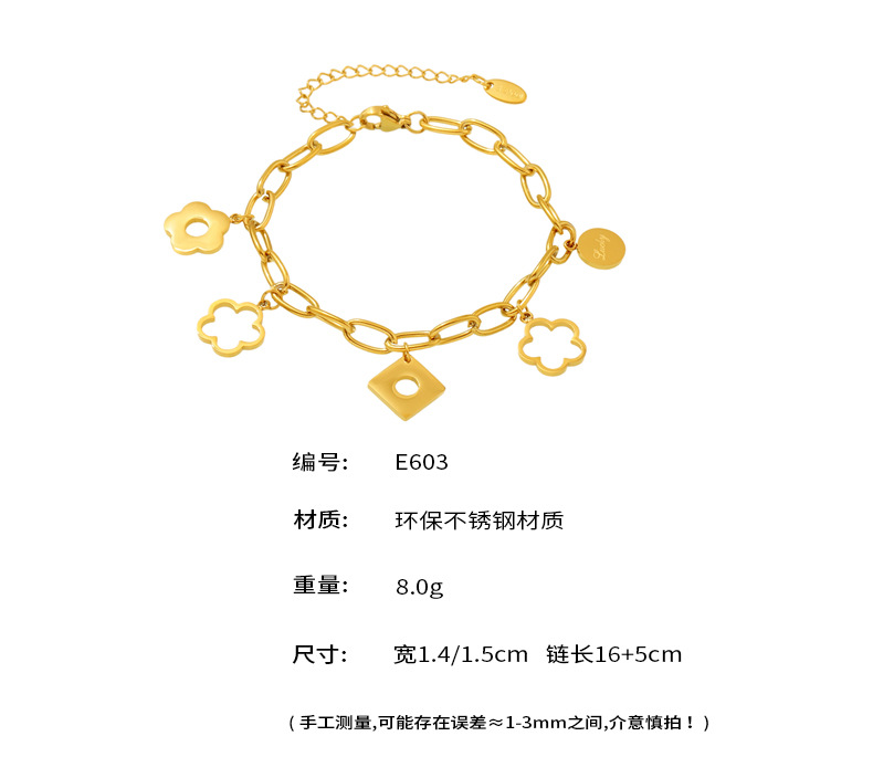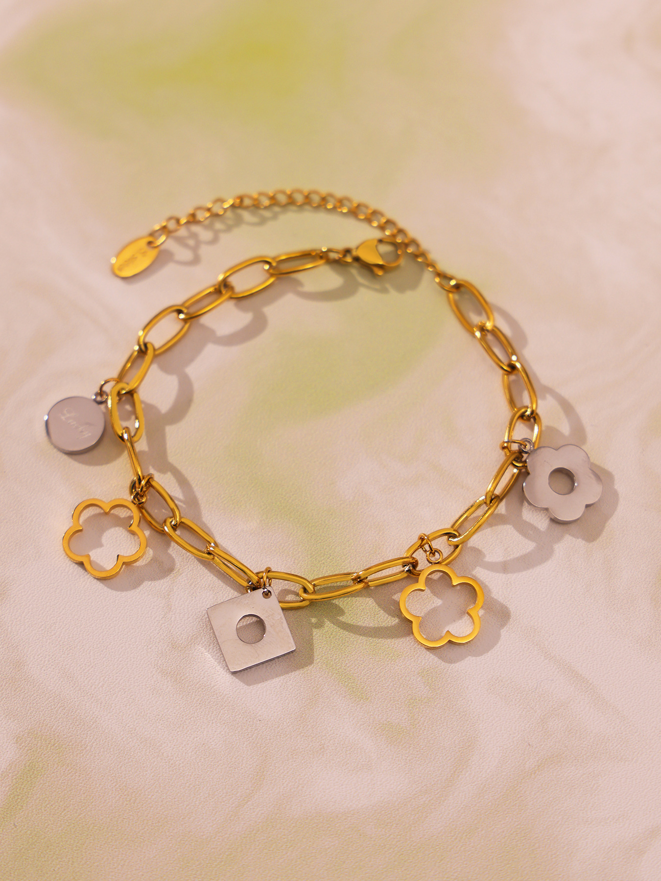谜丽304幸运花朵镜面抛光小挂件O字链条手链欧美不锈钢不掉色首饰
