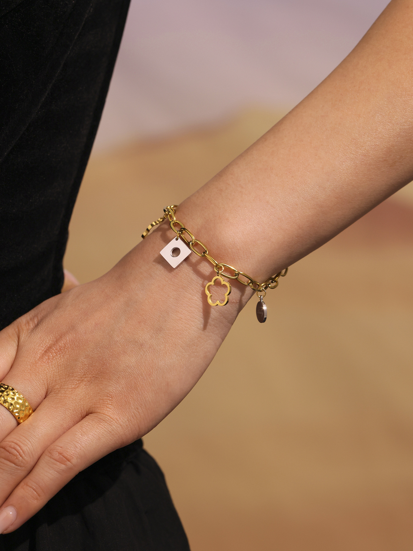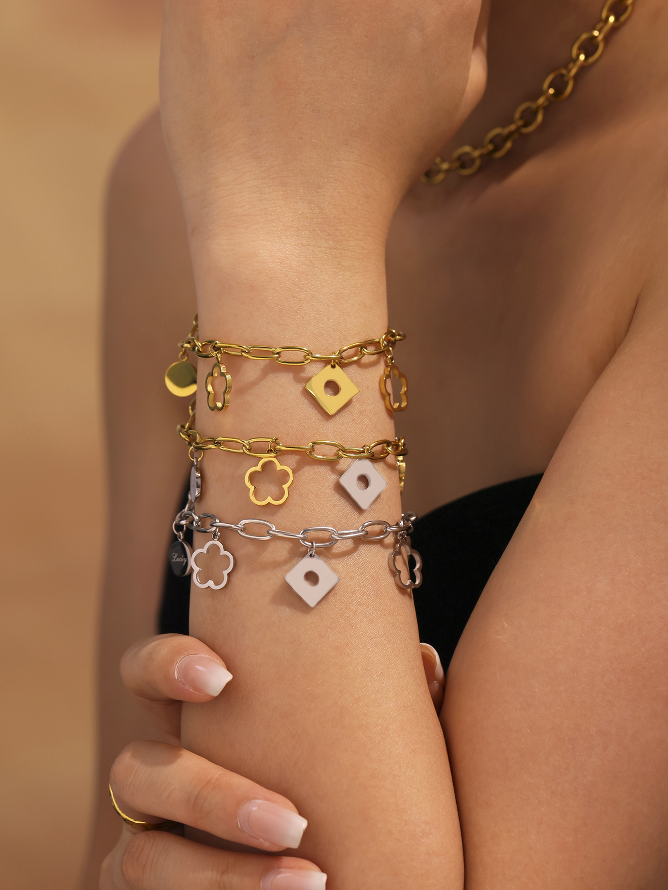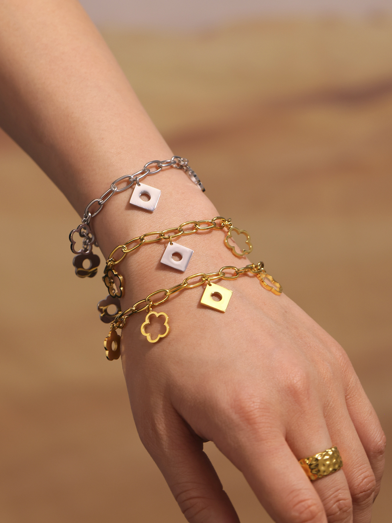 谜丽304幸运花朵镜面抛光小挂件O字链条手链欧美不锈钢不掉色首饰