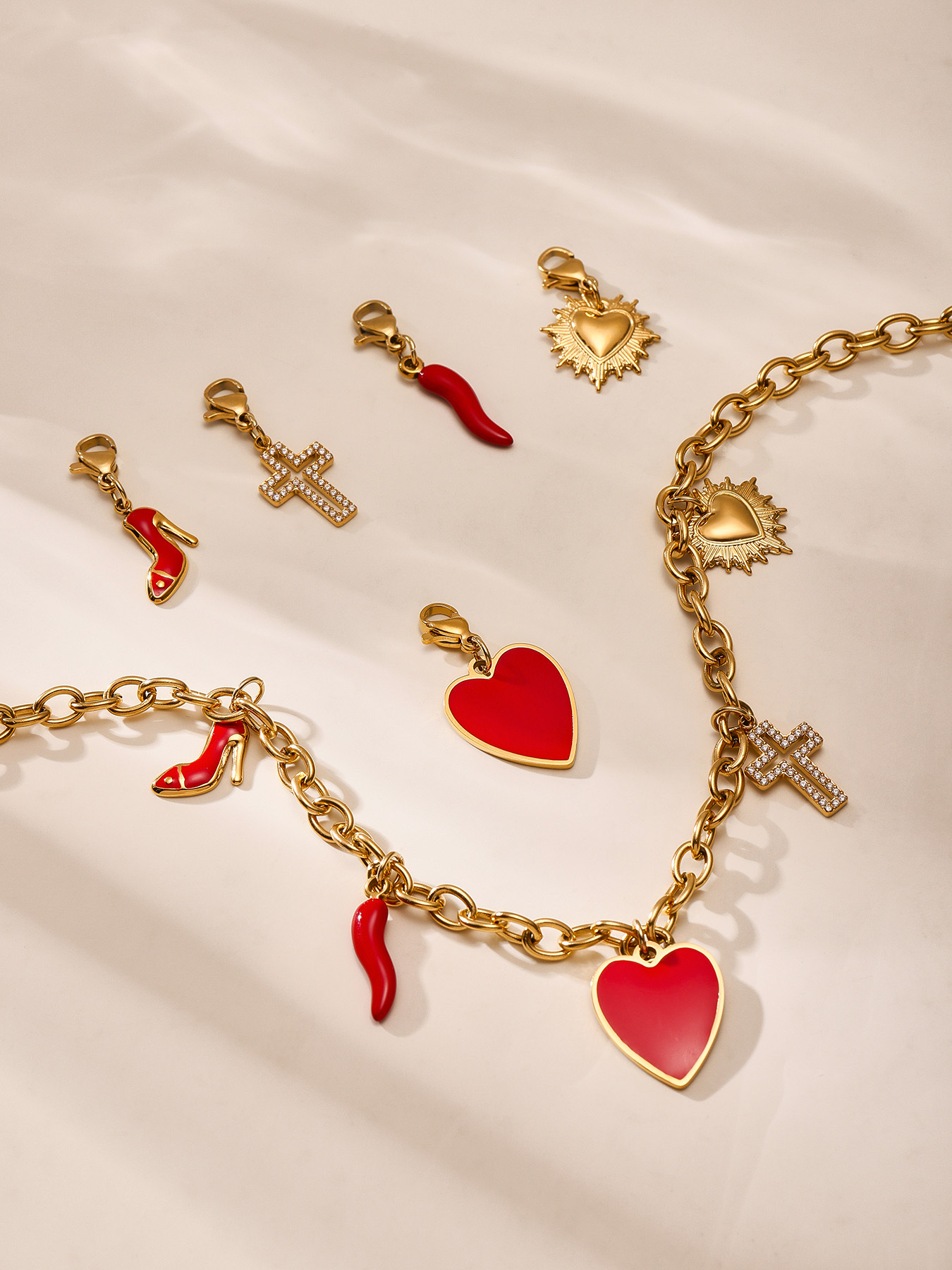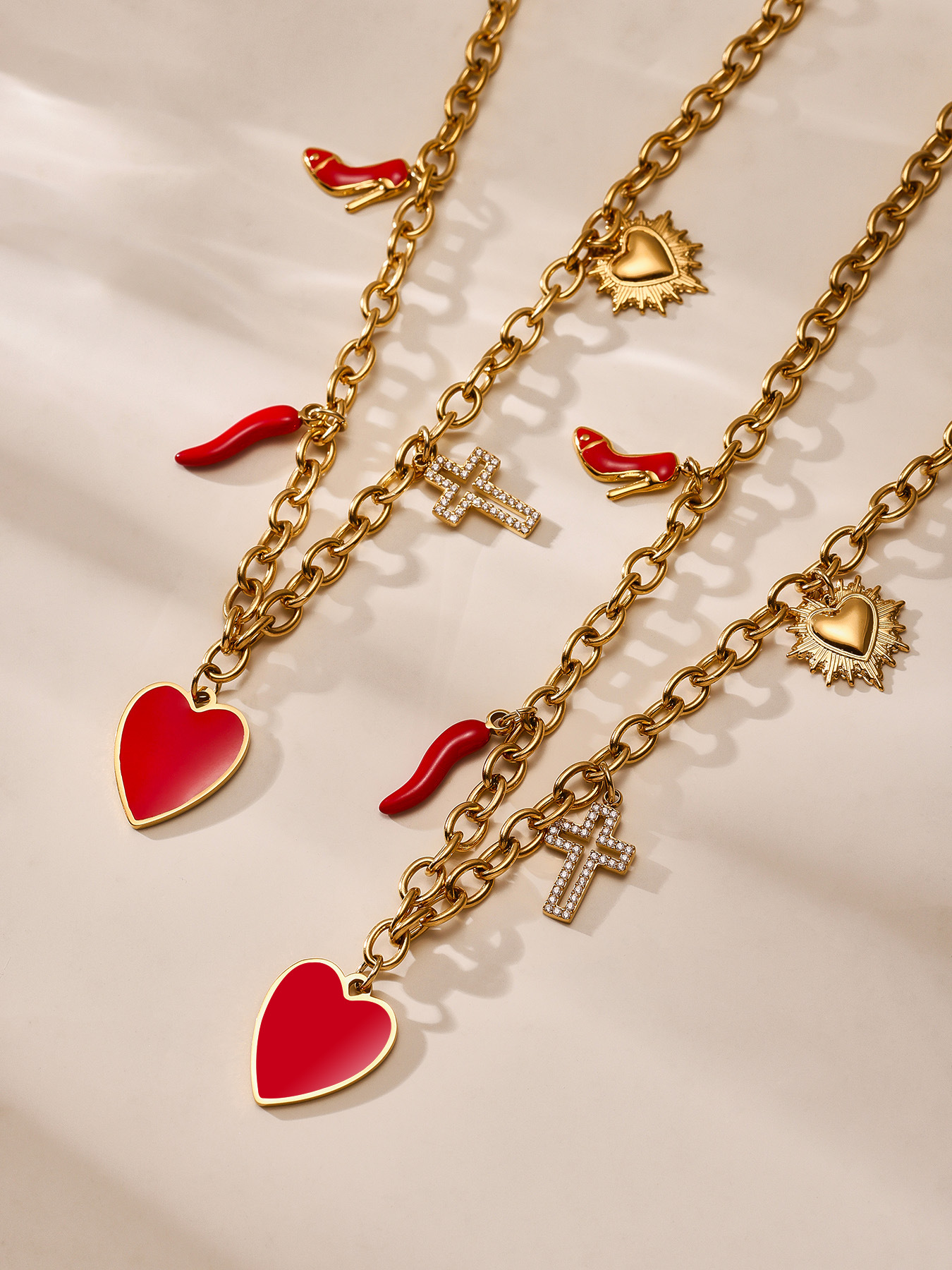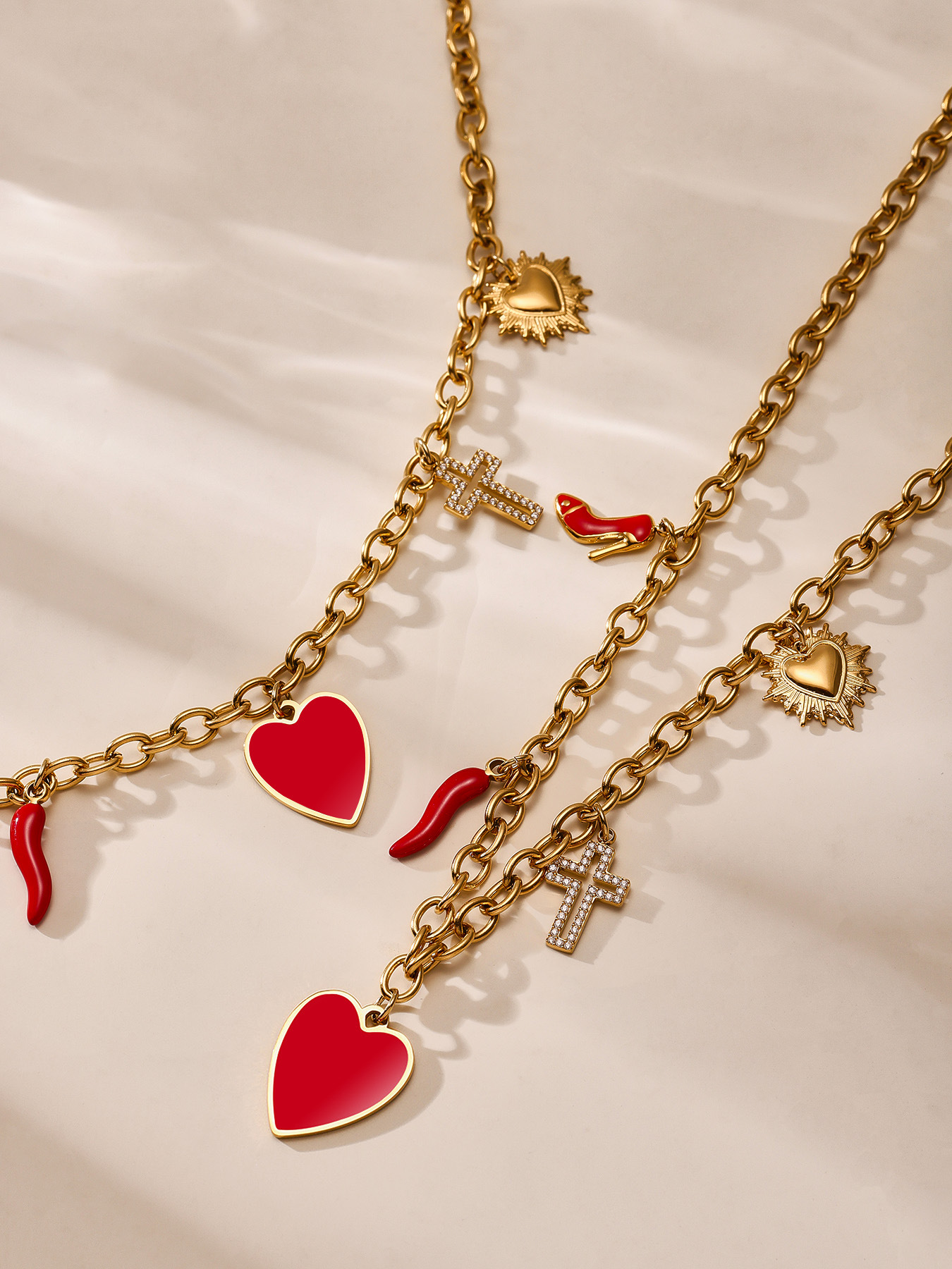 谜丽红色滴油多配件爱心高跟鞋十字架吊坠锁骨项链小众时尚流行款