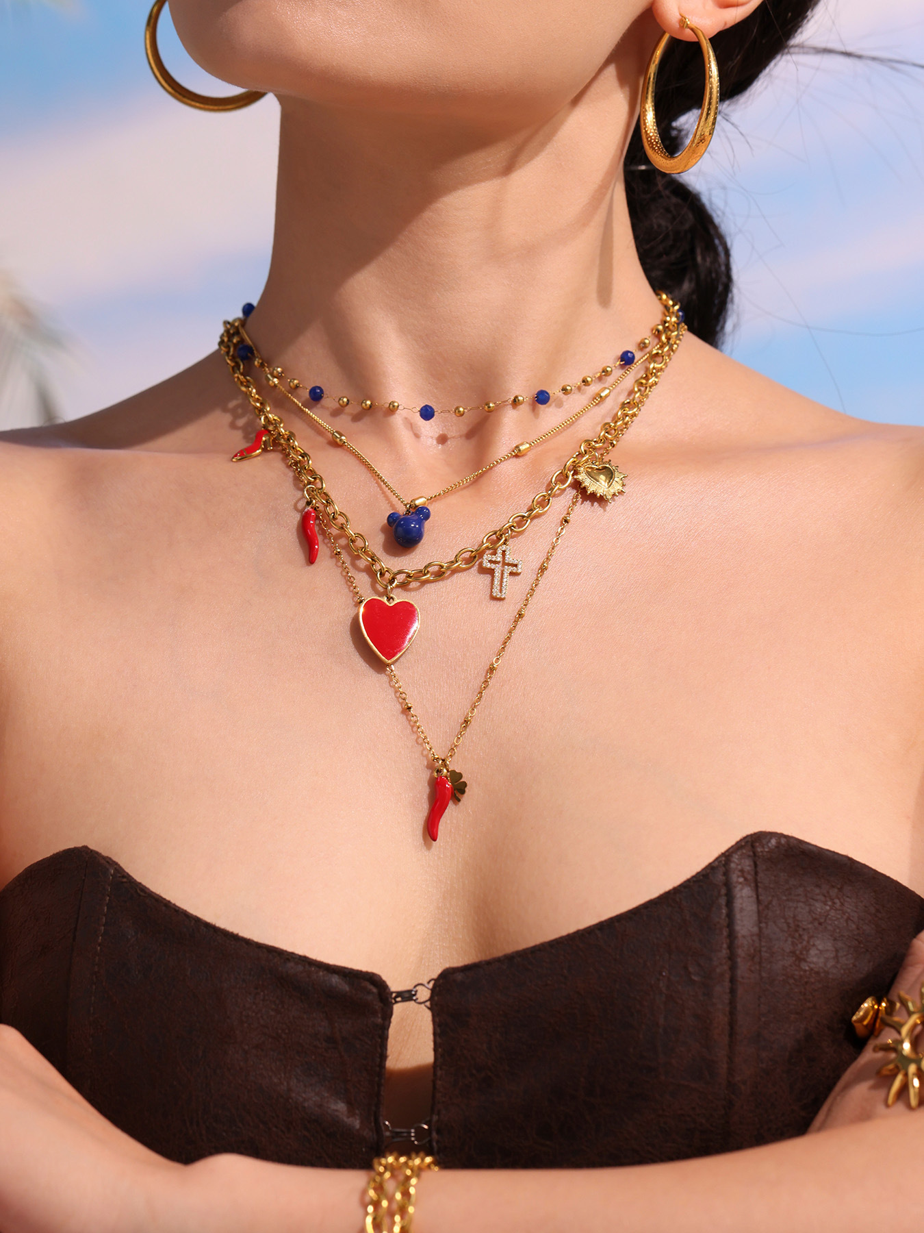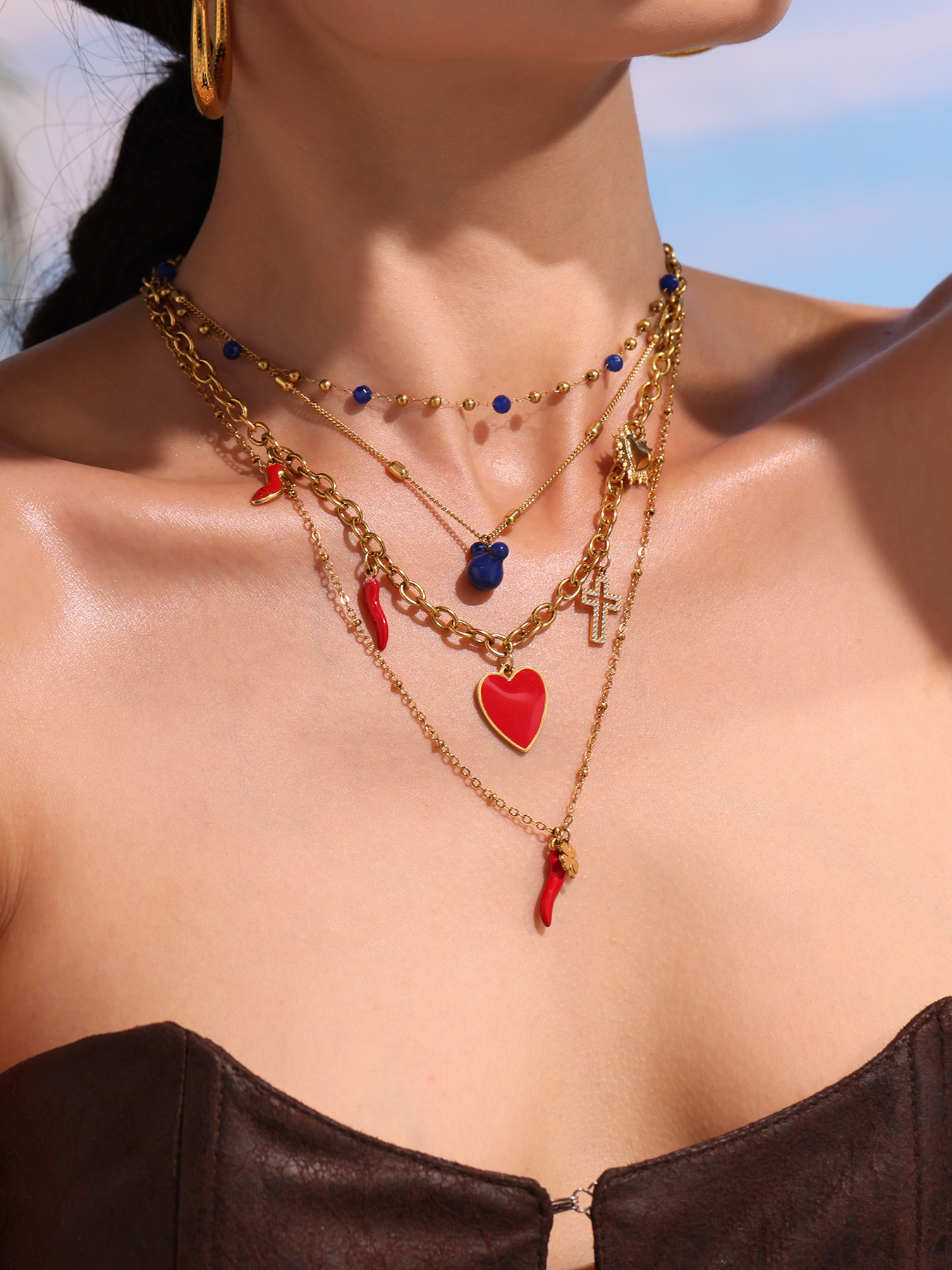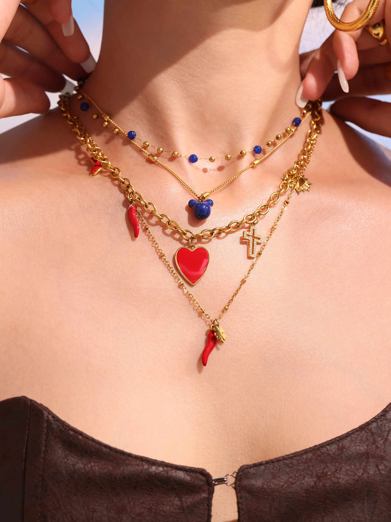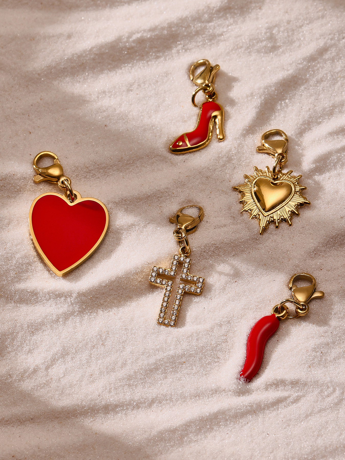 谜丽红色滴油多配件爱心高跟鞋十字架吊坠锁骨项链小众时尚流行款