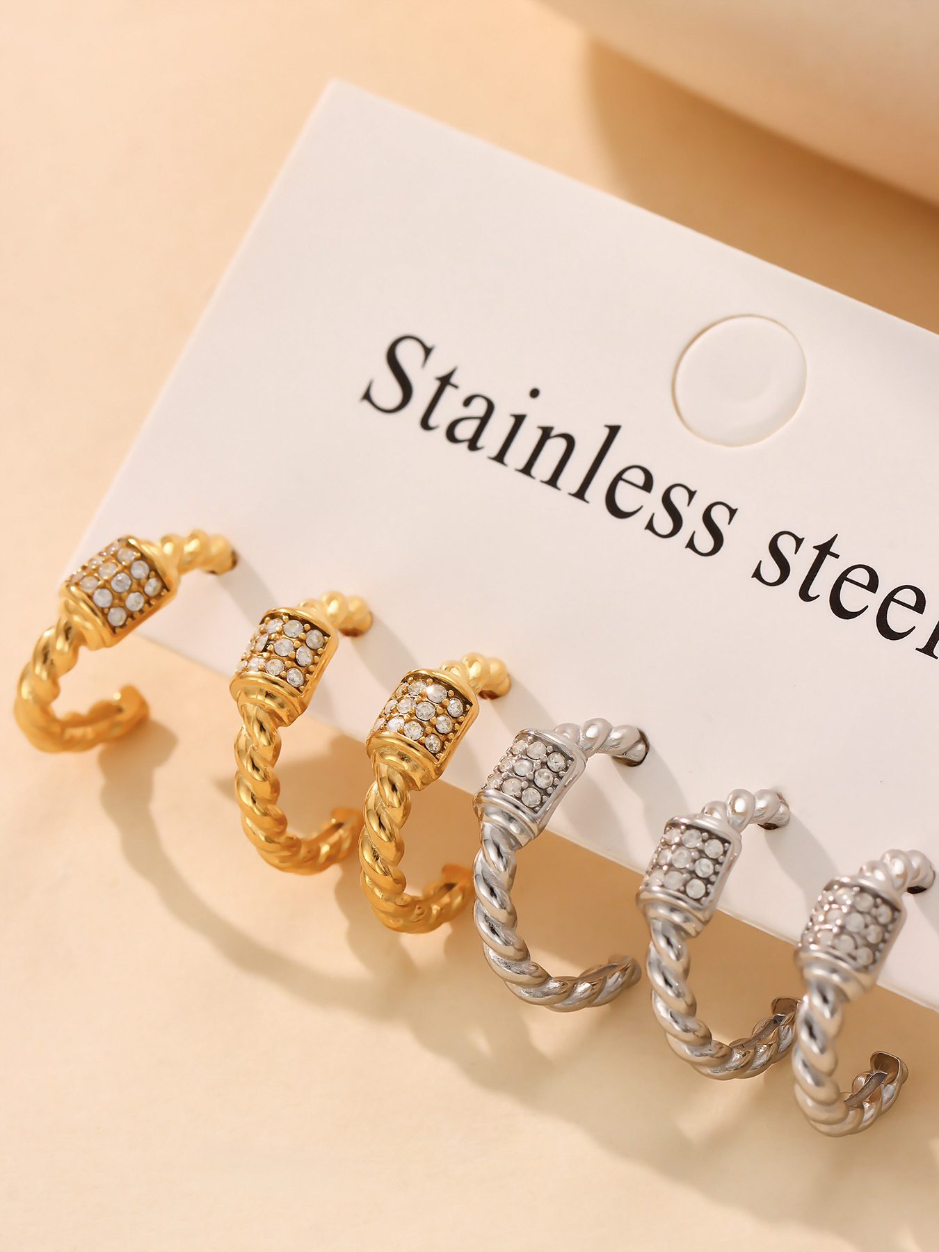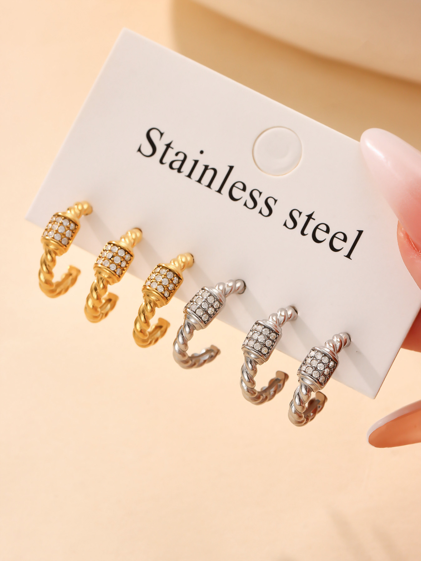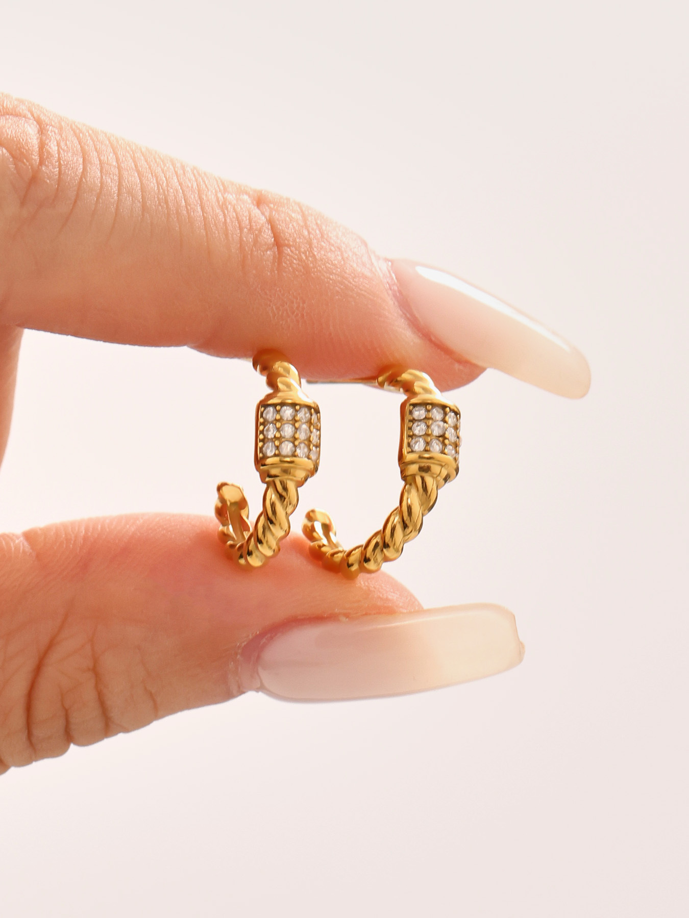 谜丽跨境轻奢C形麻花锆石耳环不锈钢18k金不掉色小众设计耳钉耳饰