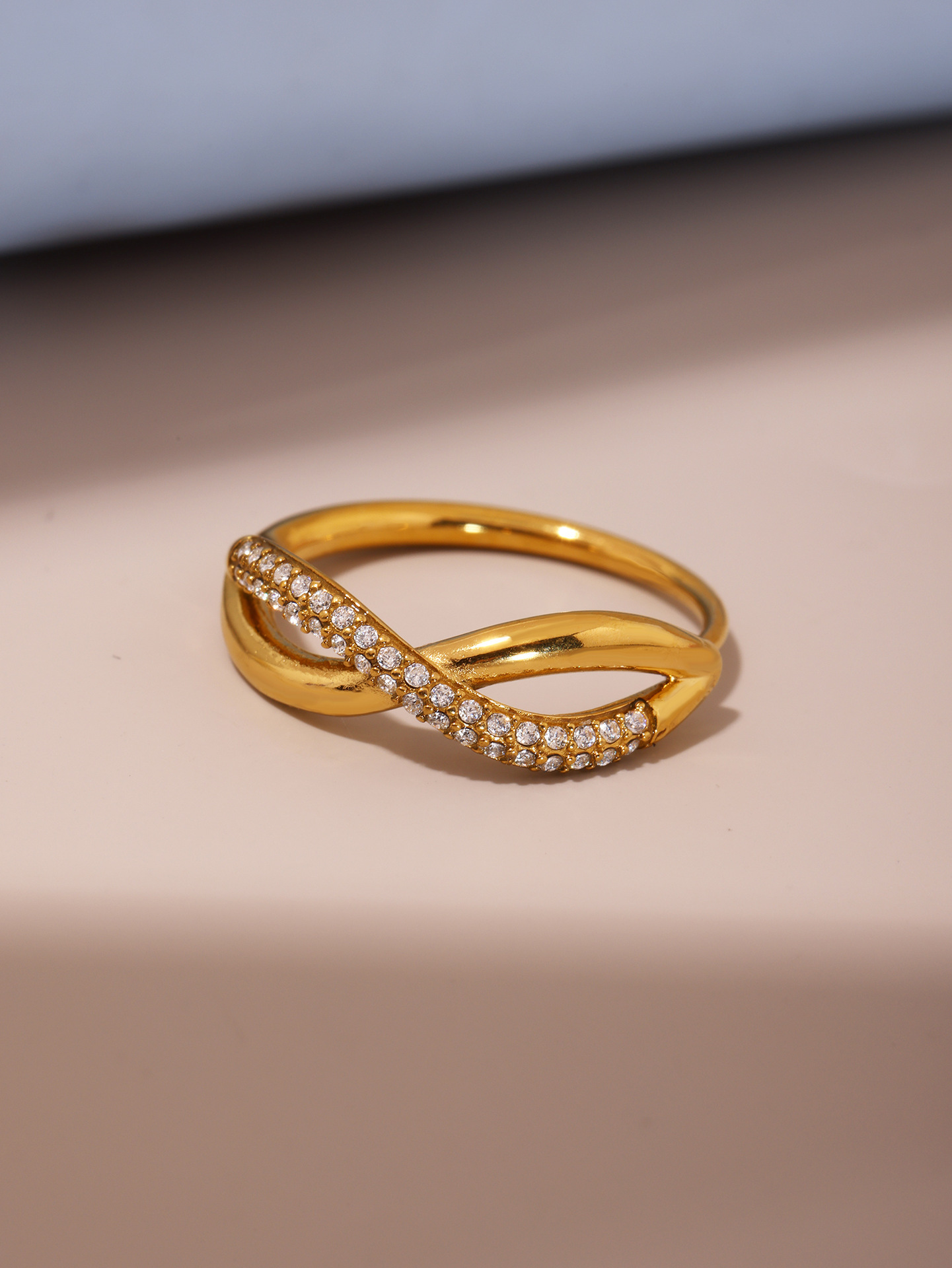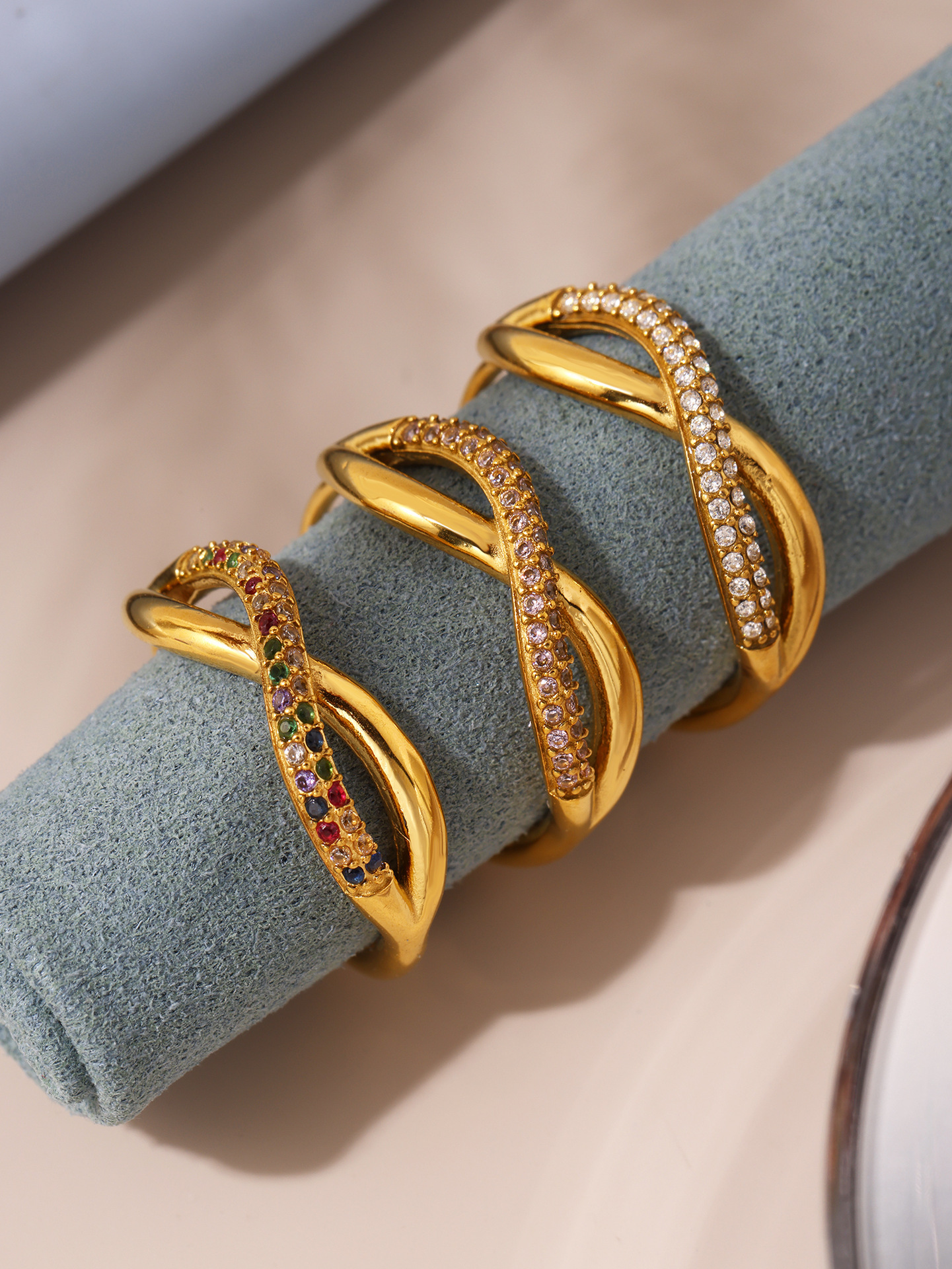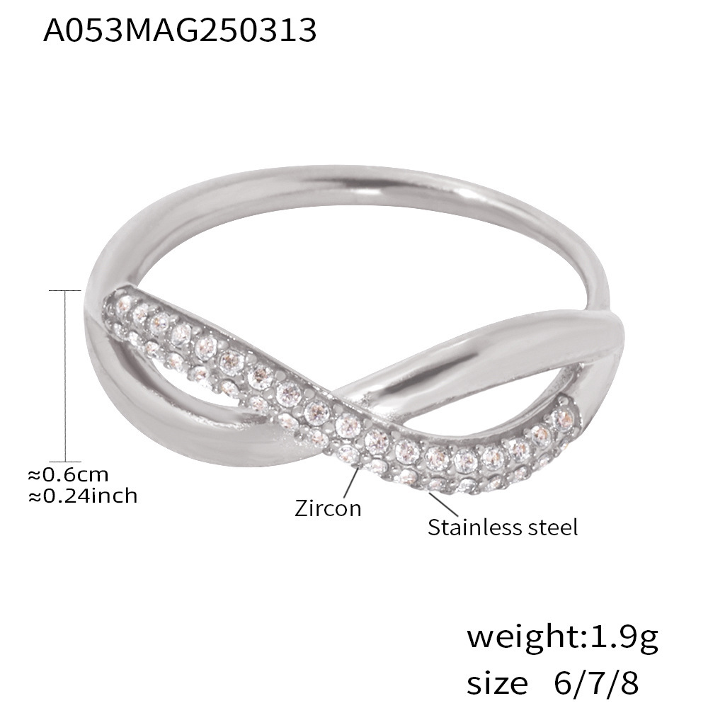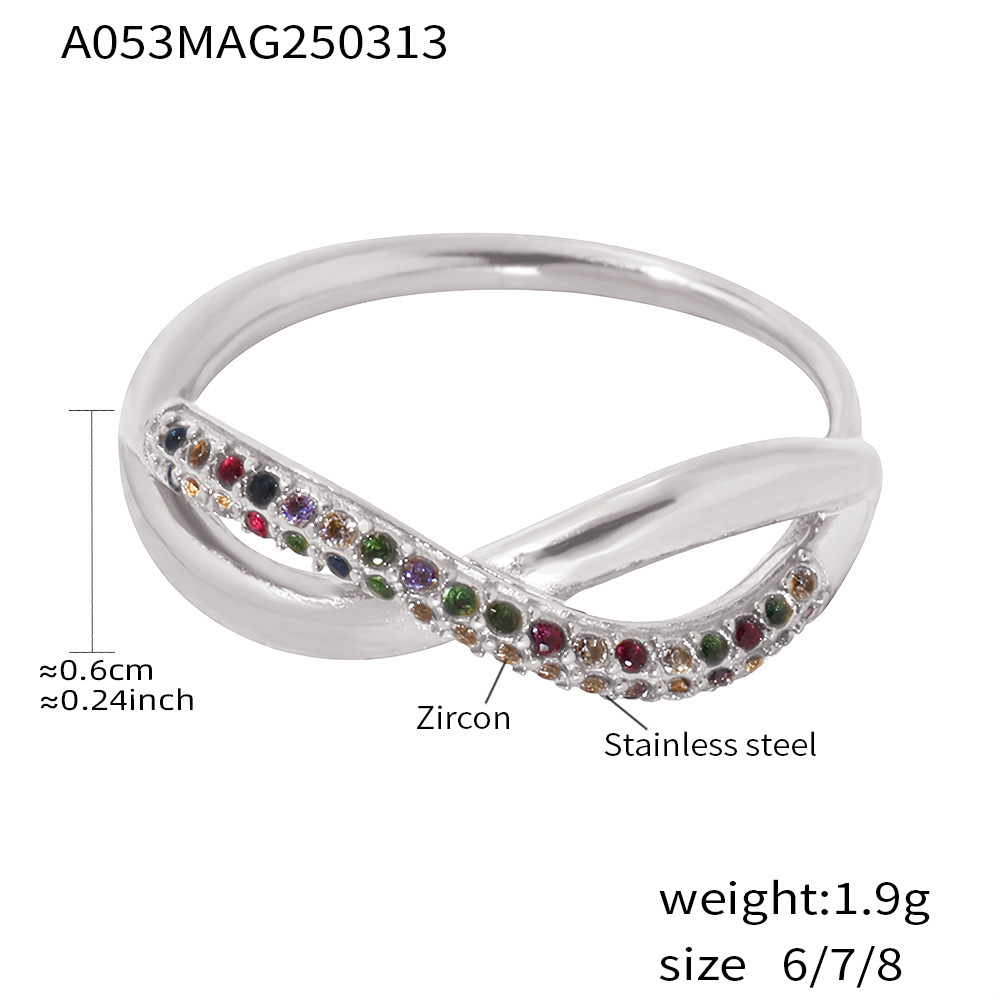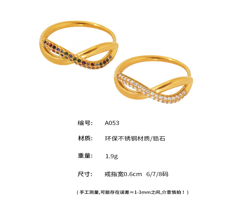 谜丽 新款彩色锆石交叉细麻花食指戒不锈钢镀18K真金小众通勤指环