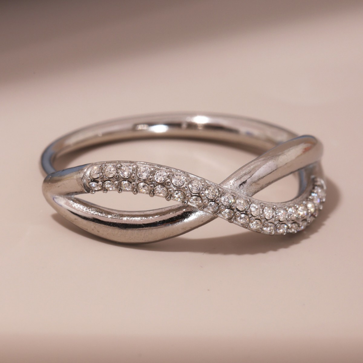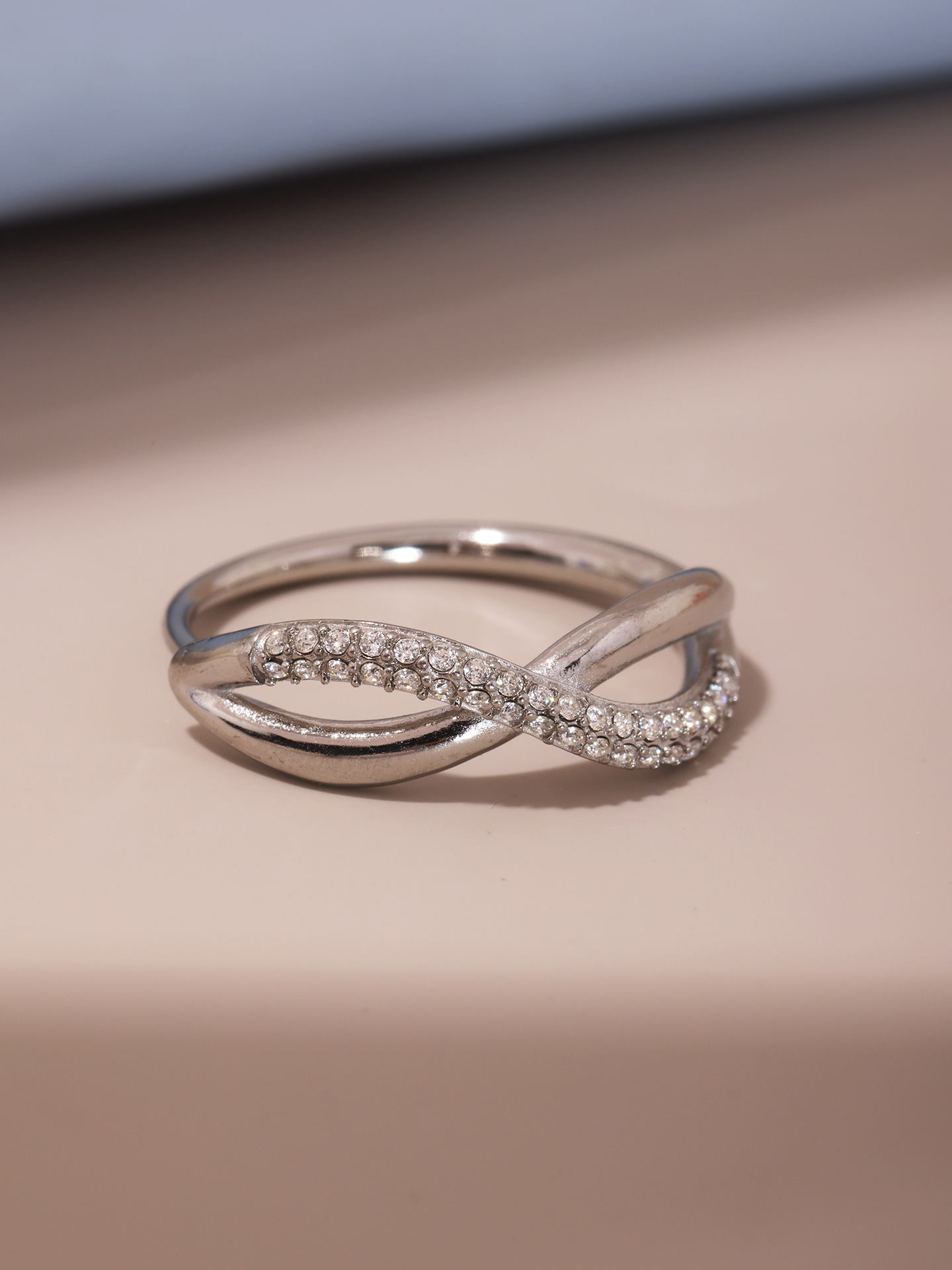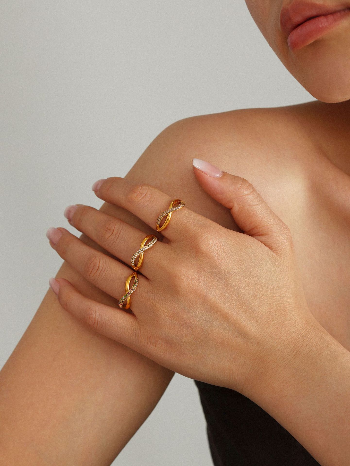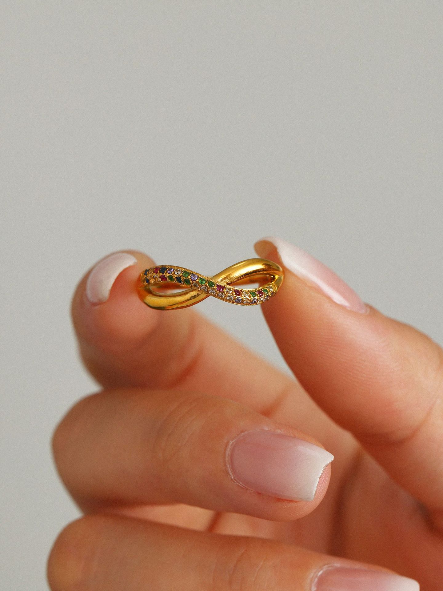谜丽 新款彩色锆石交叉细麻花食指戒不锈钢镀18K真金小众通勤指环
