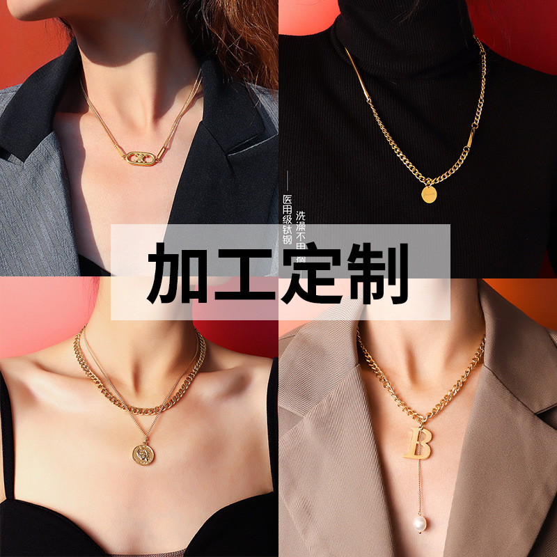 加工定制欧美ins饰品钛钢镀18k真金项链女锁骨颈链项圈轻奢几何