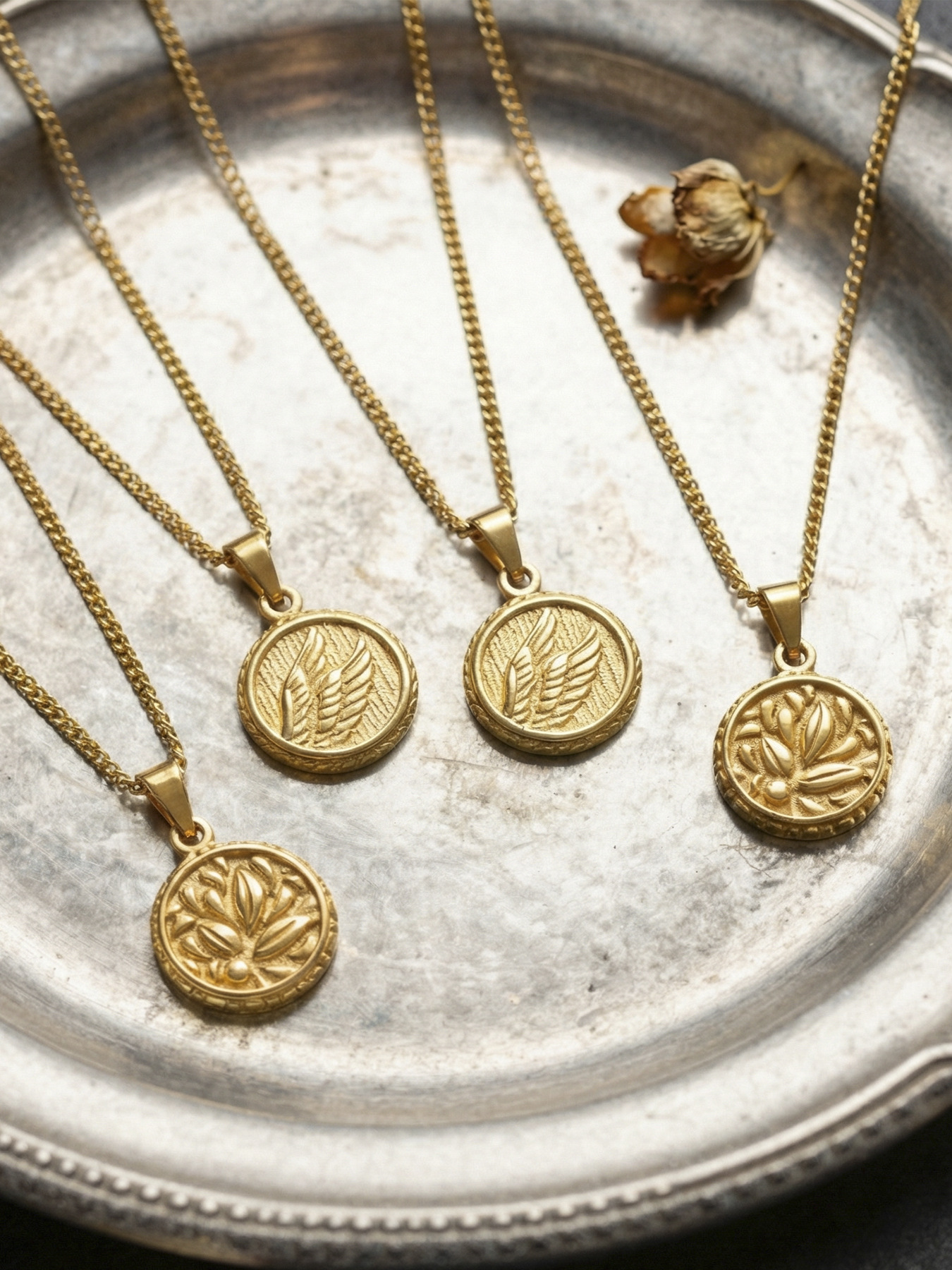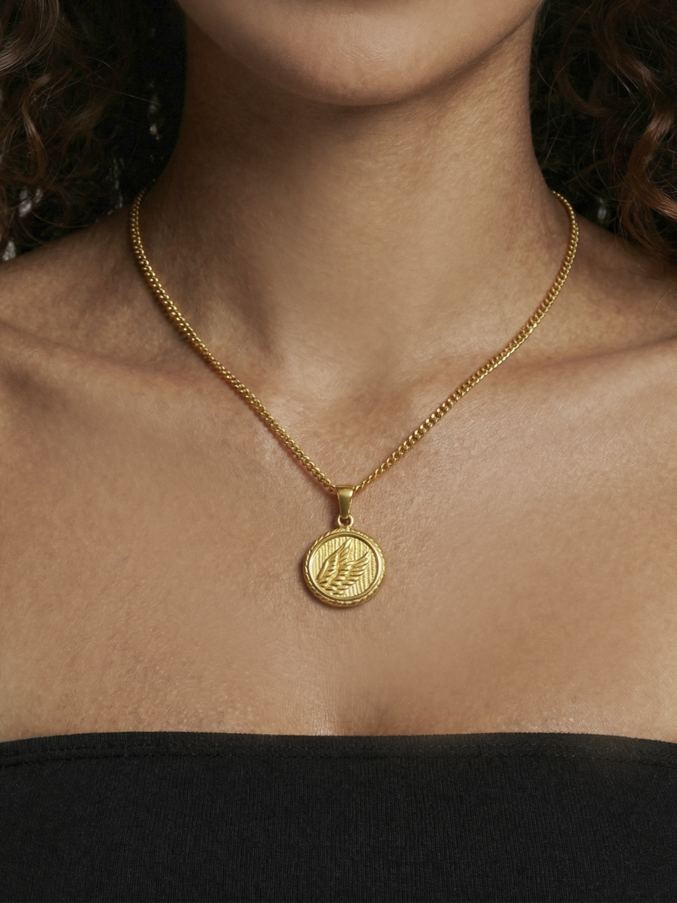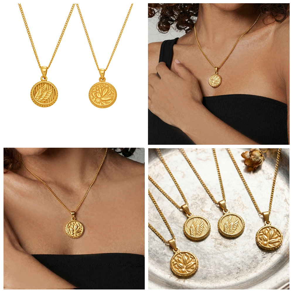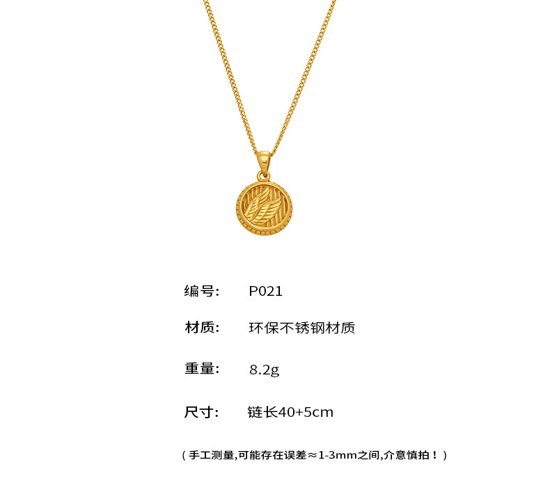 谜丽 不锈钢立体翅膀浮雕圆牌吊坠锁骨链镀18k金法式气质简约项链