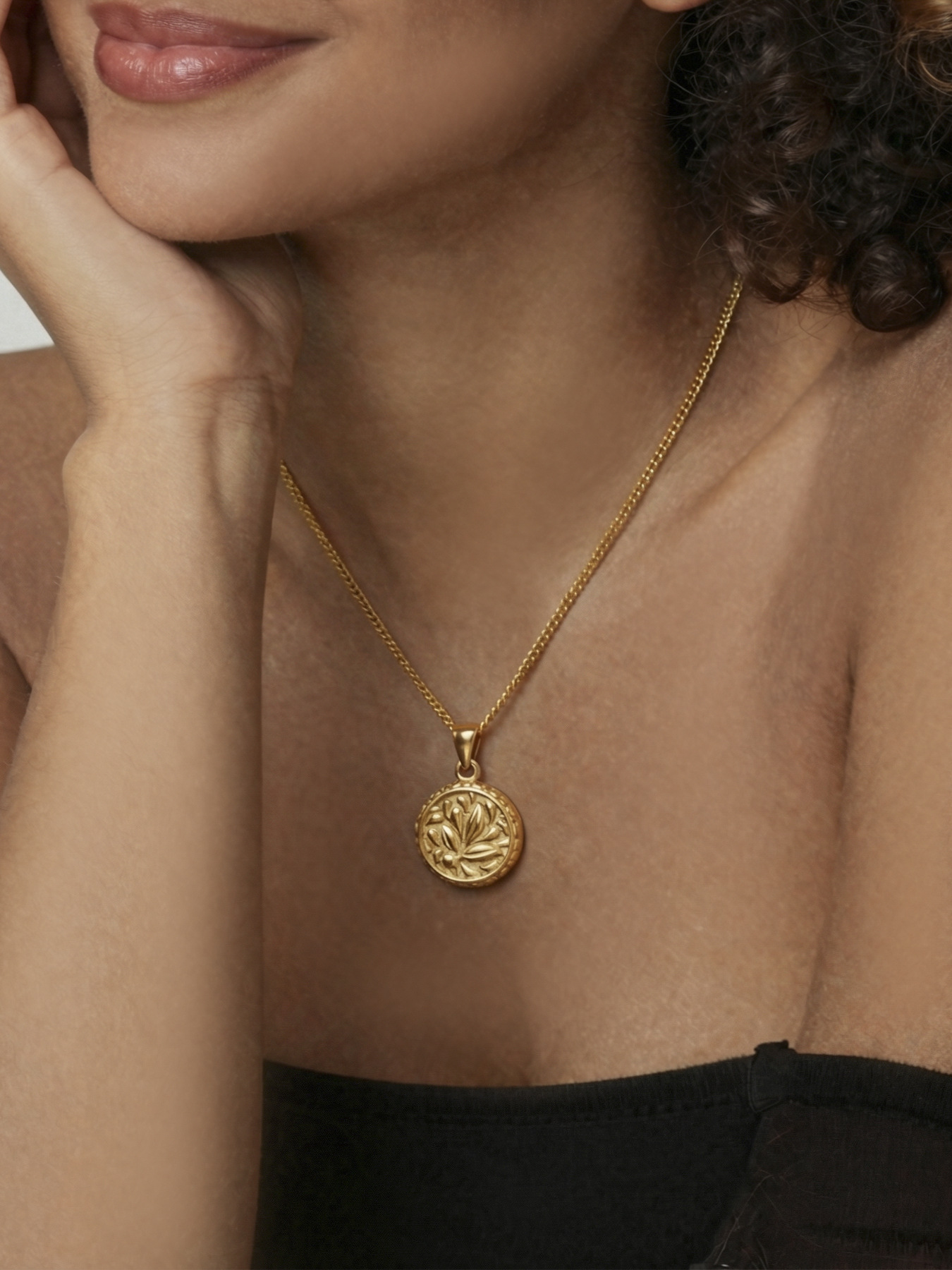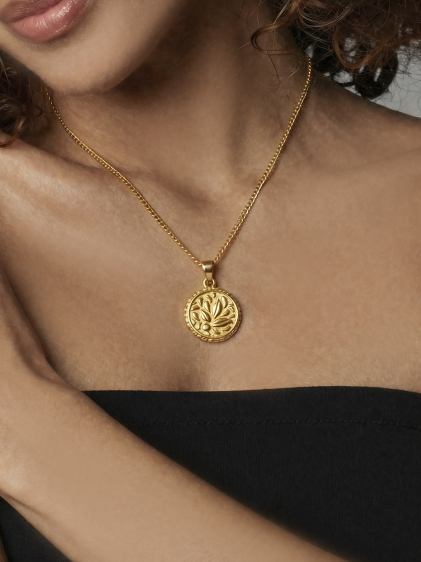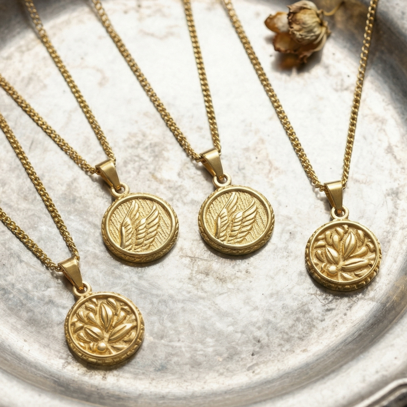 谜丽 不锈钢立体翅膀浮雕圆牌吊坠锁骨链镀18k金法式气质简约项链