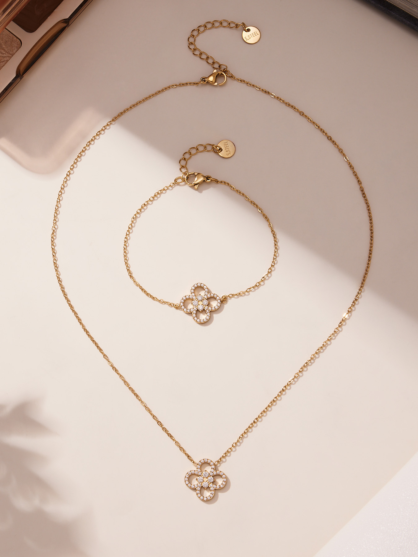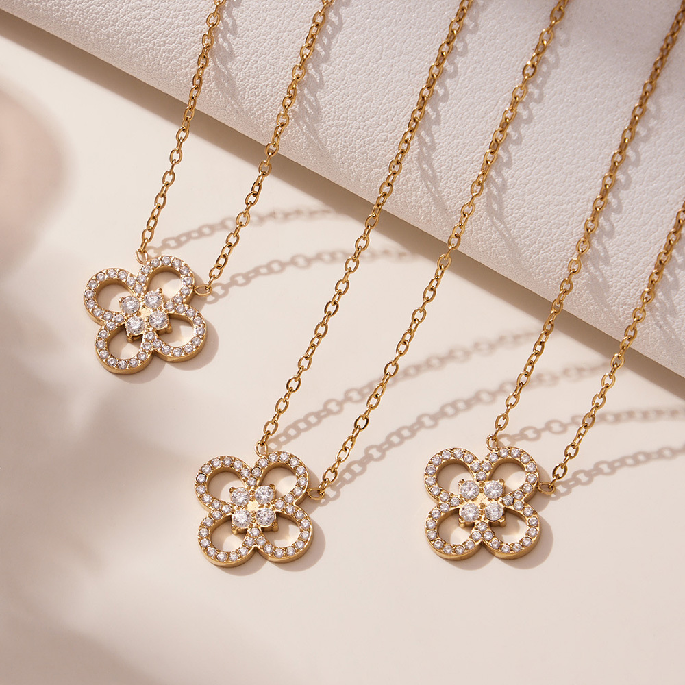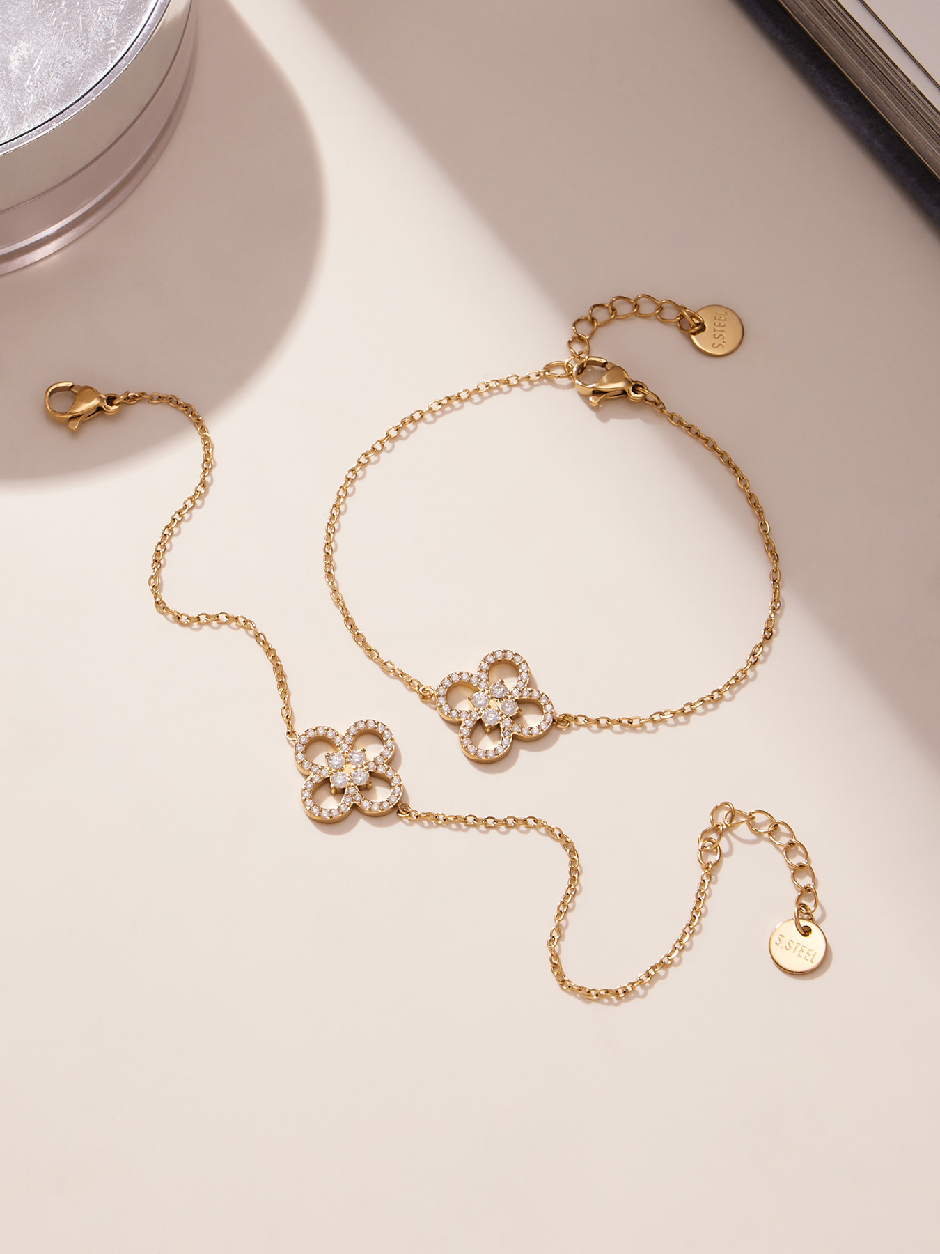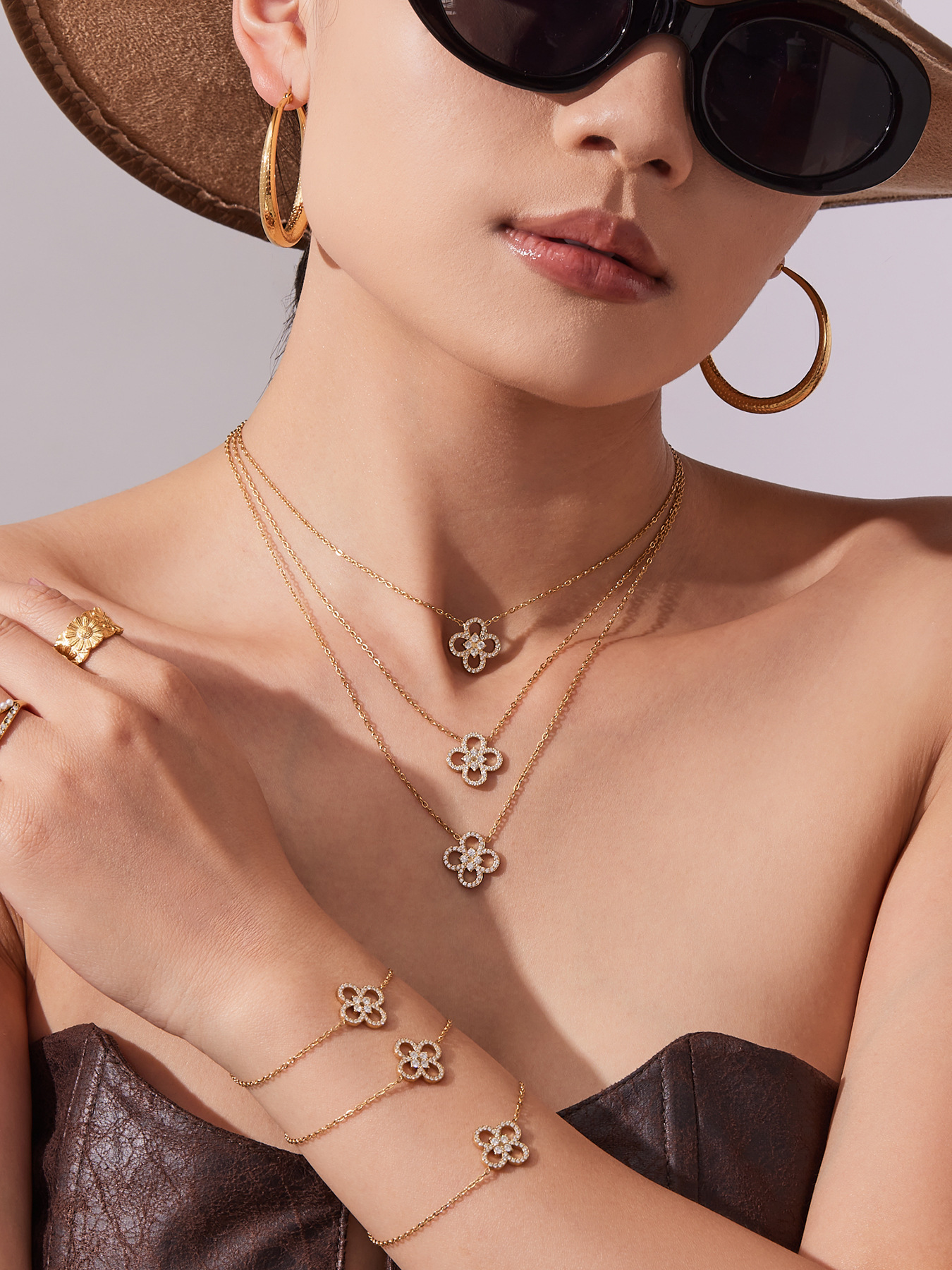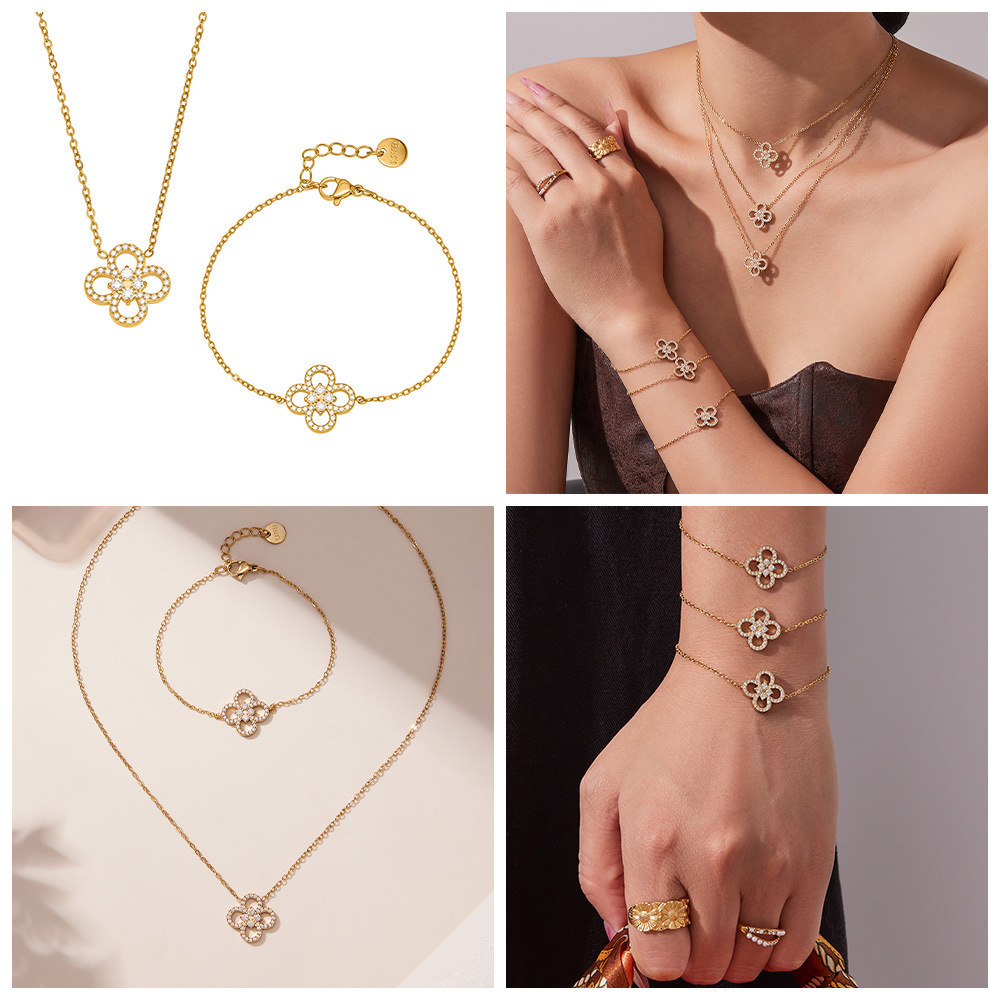 谜丽 精致满锆四叶草吊坠极细锁骨链手链轻奢精致不锈钢珠宝首饰