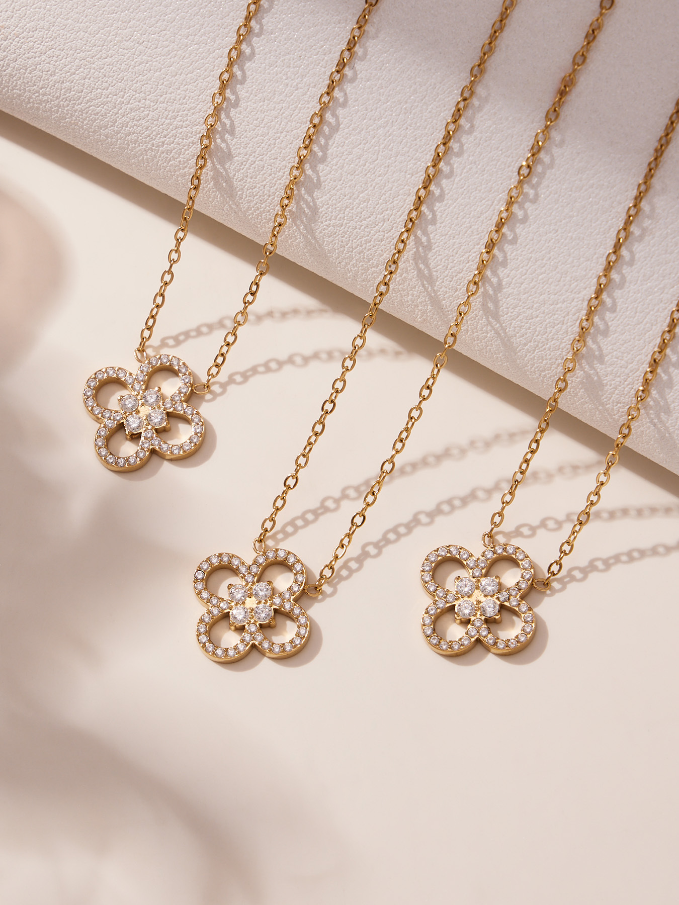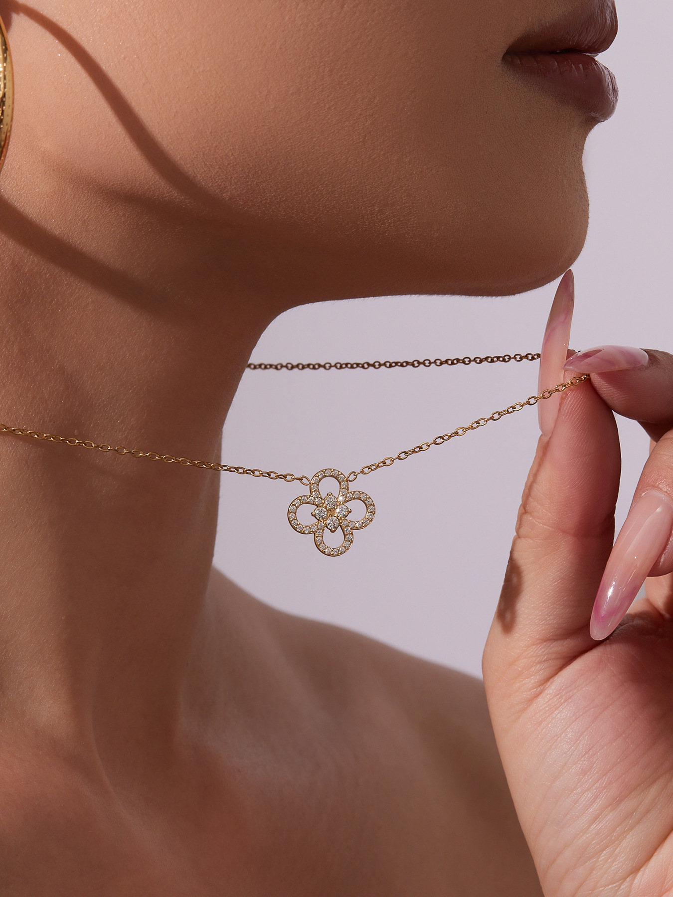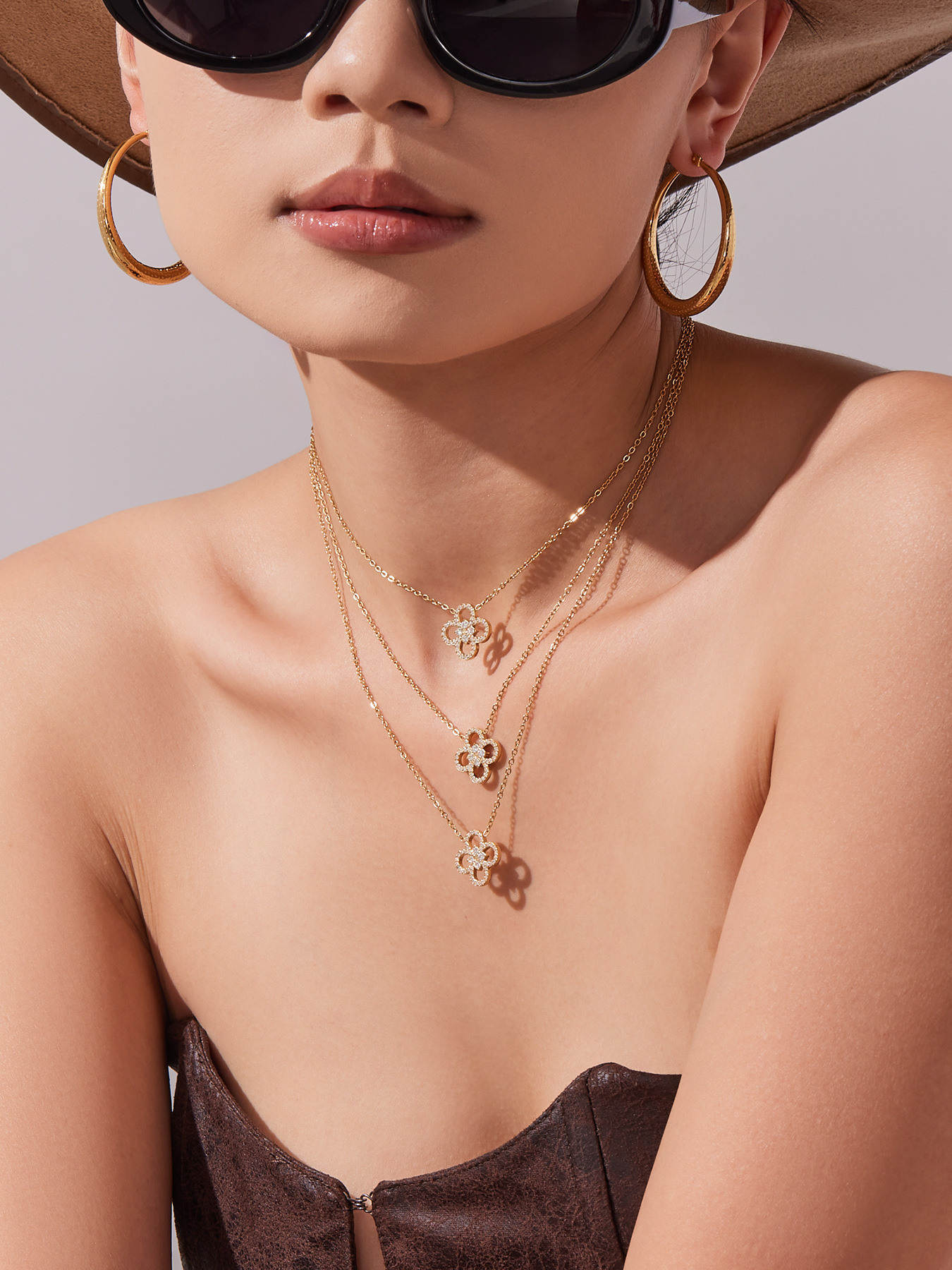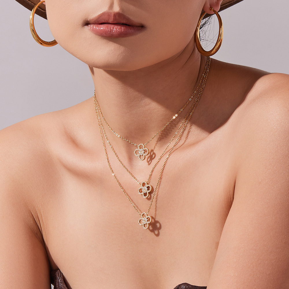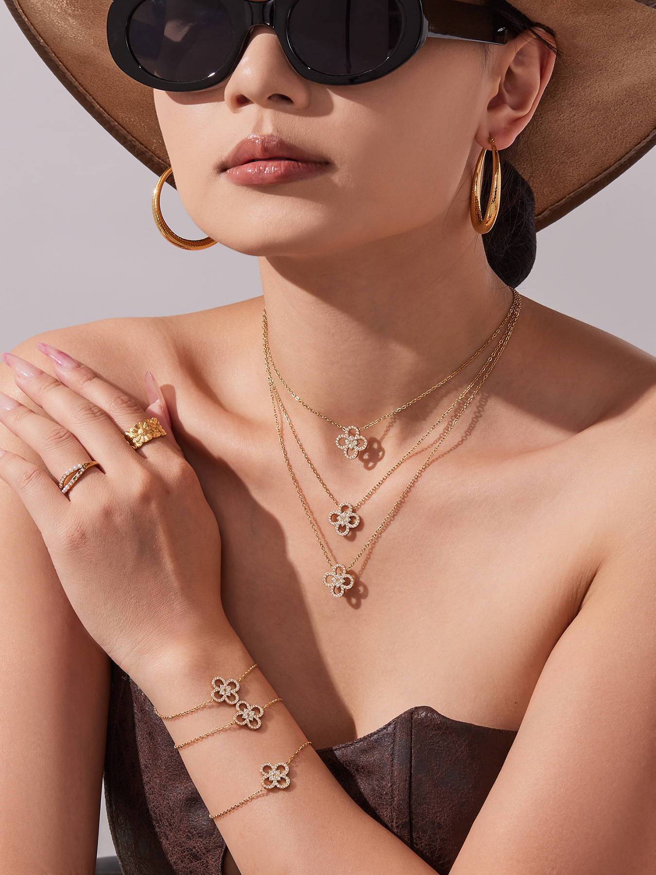 谜丽 精致满锆四叶草吊坠极细锁骨链手链轻奢精致不锈钢珠宝首饰