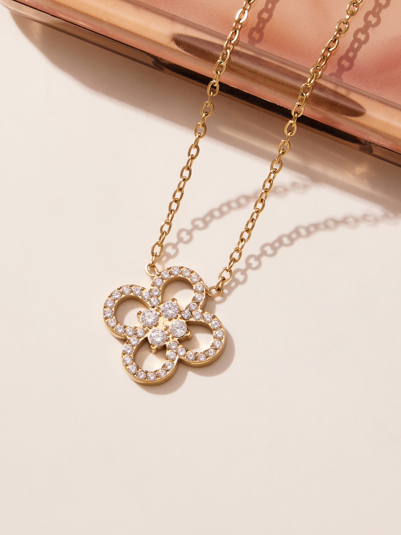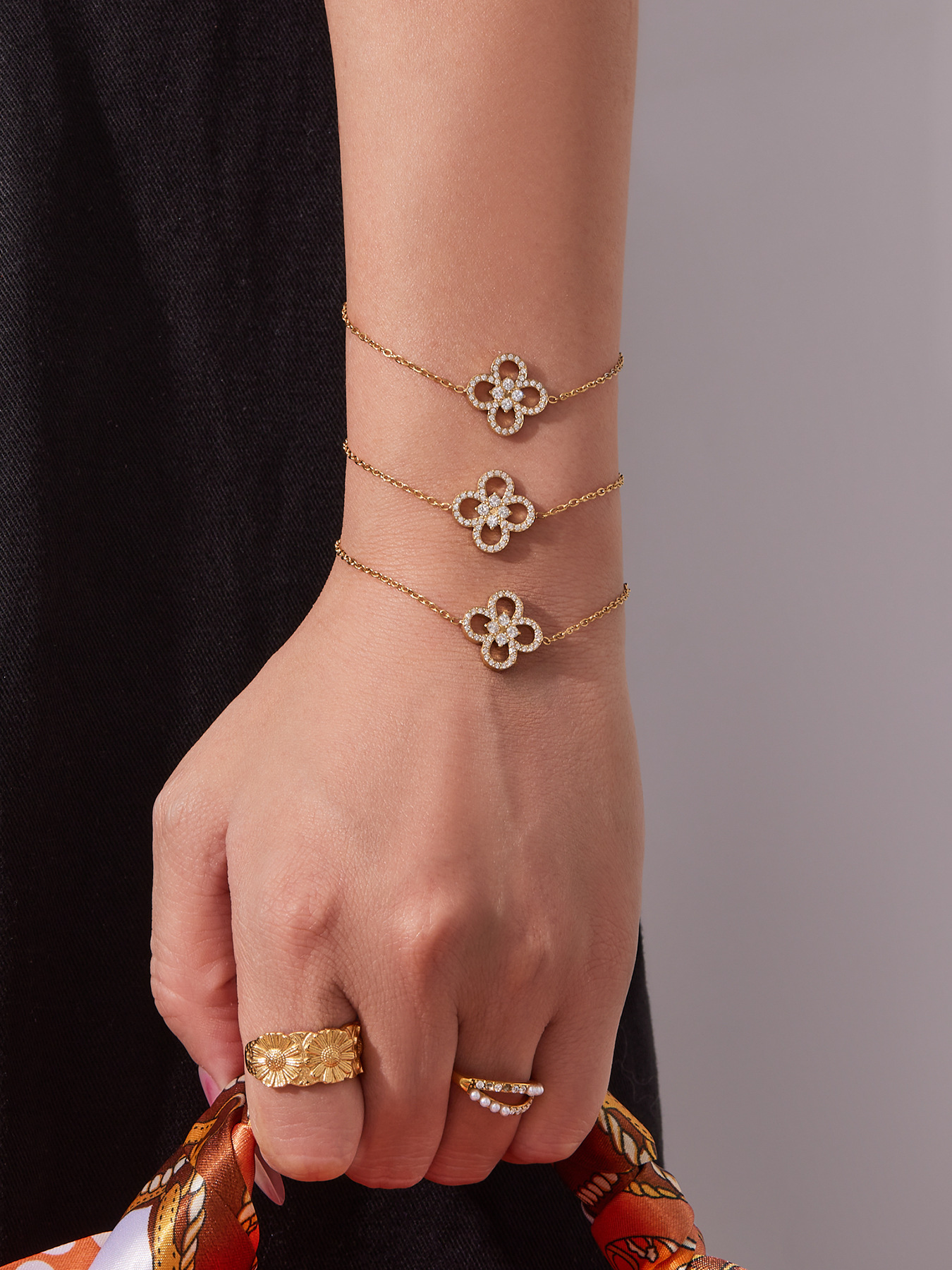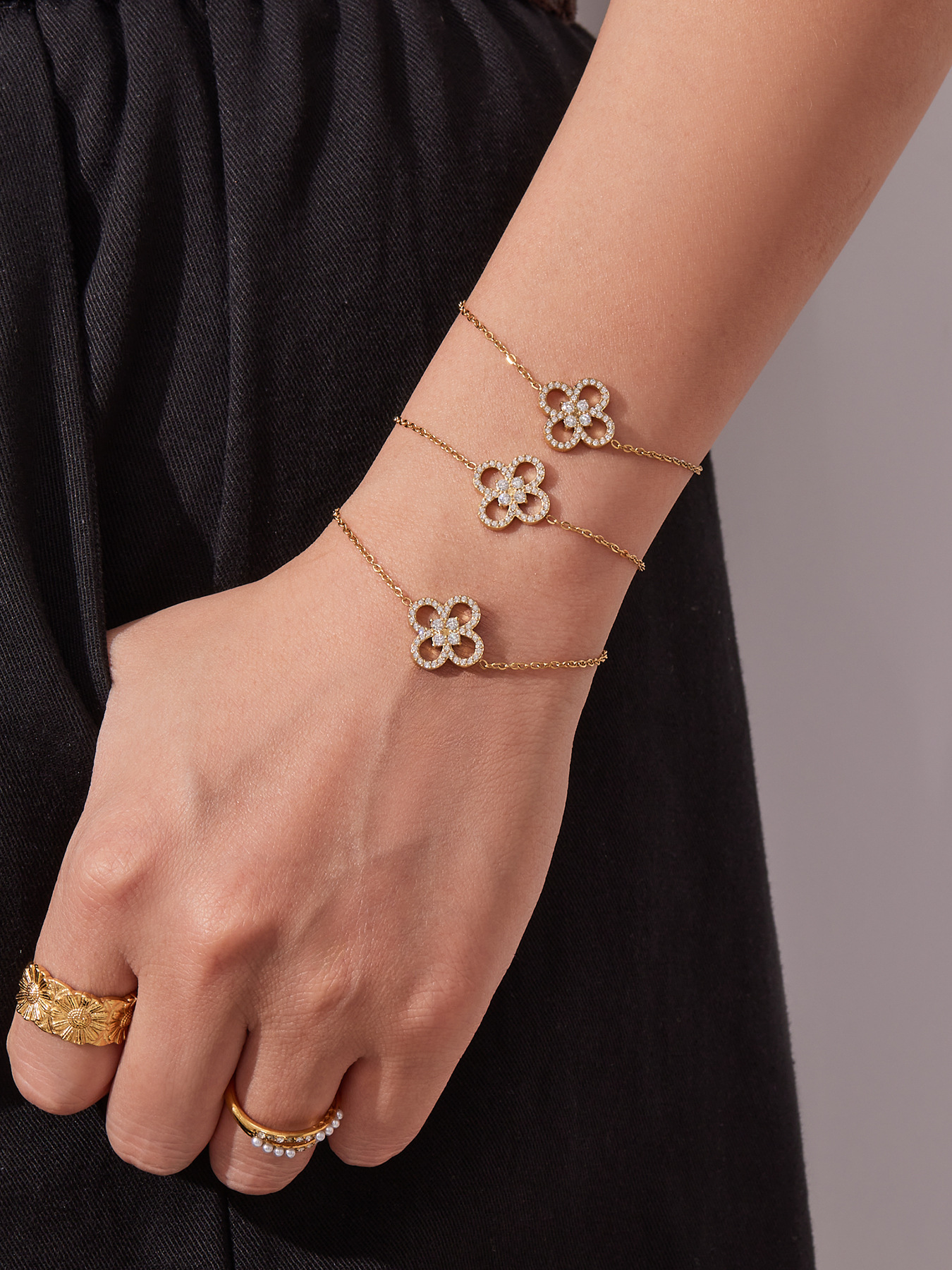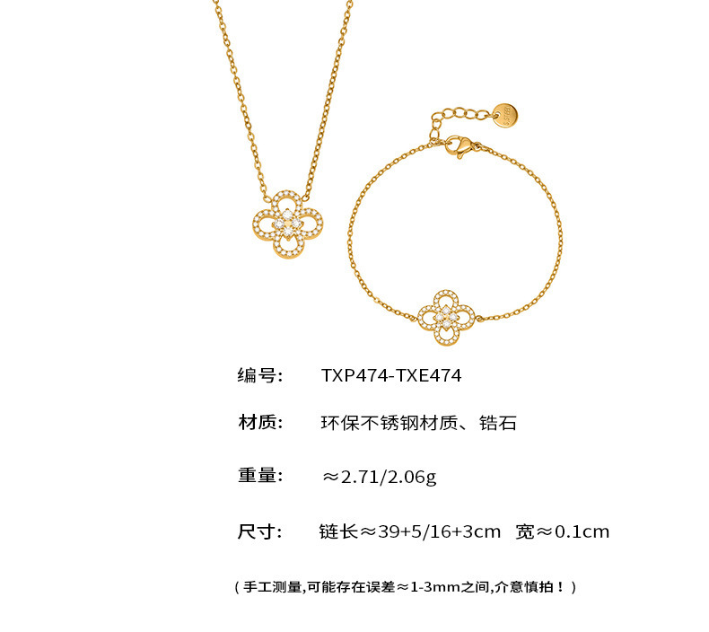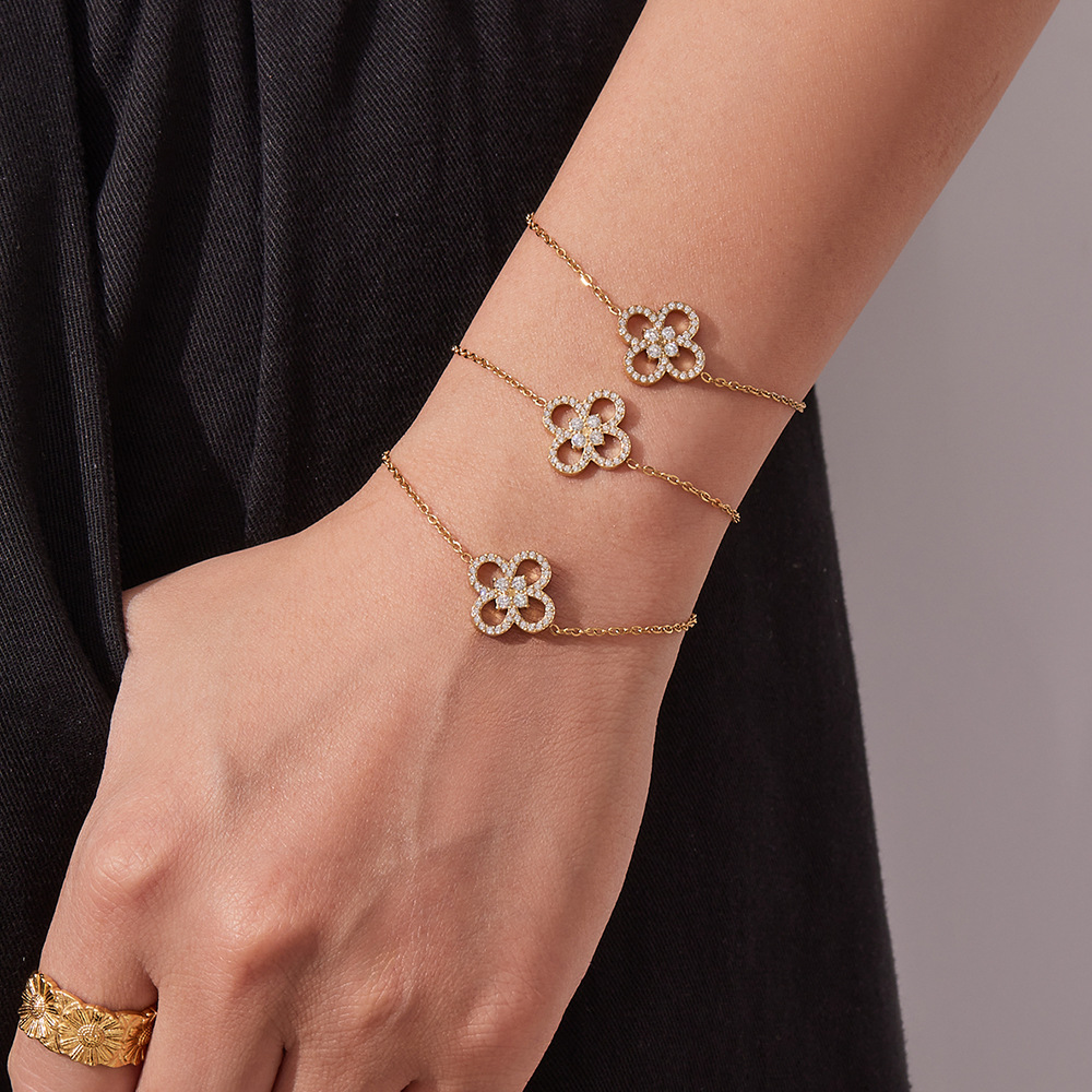 谜丽 精致满锆四叶草吊坠极细锁骨链手链轻奢精致不锈钢珠宝首饰