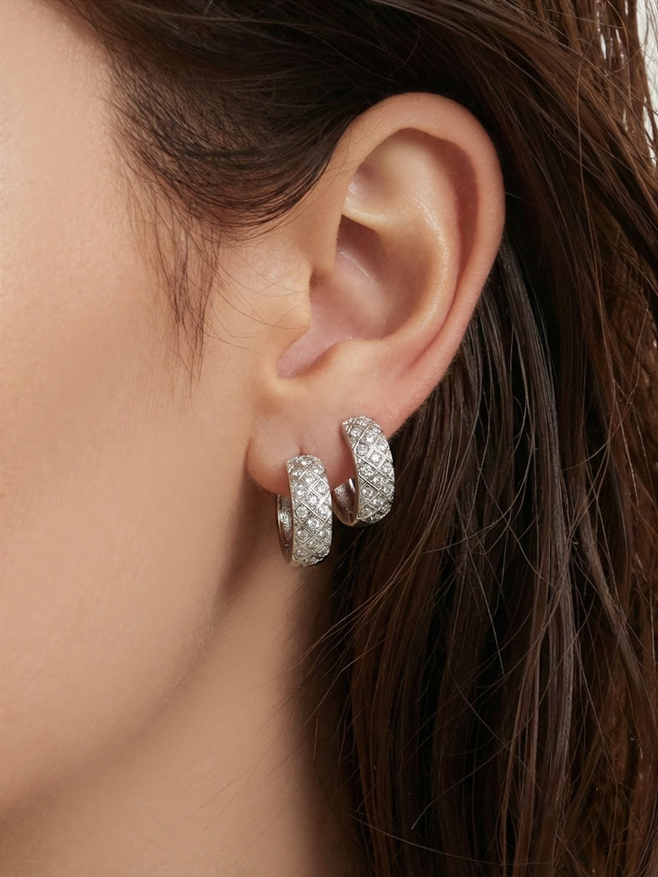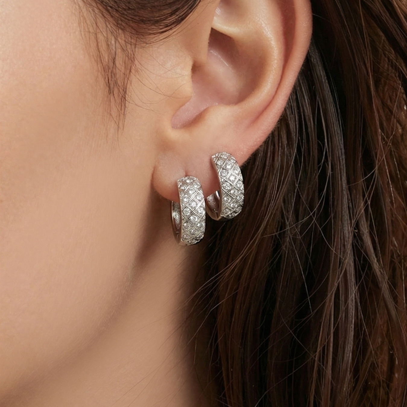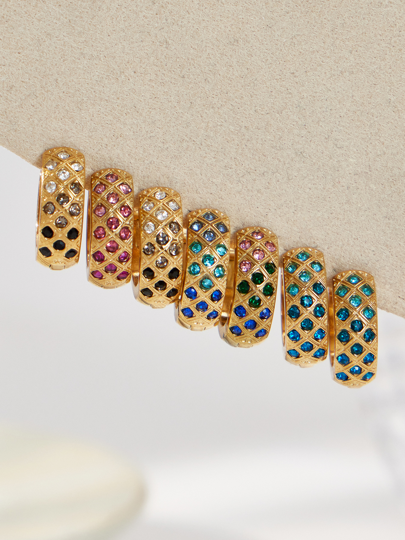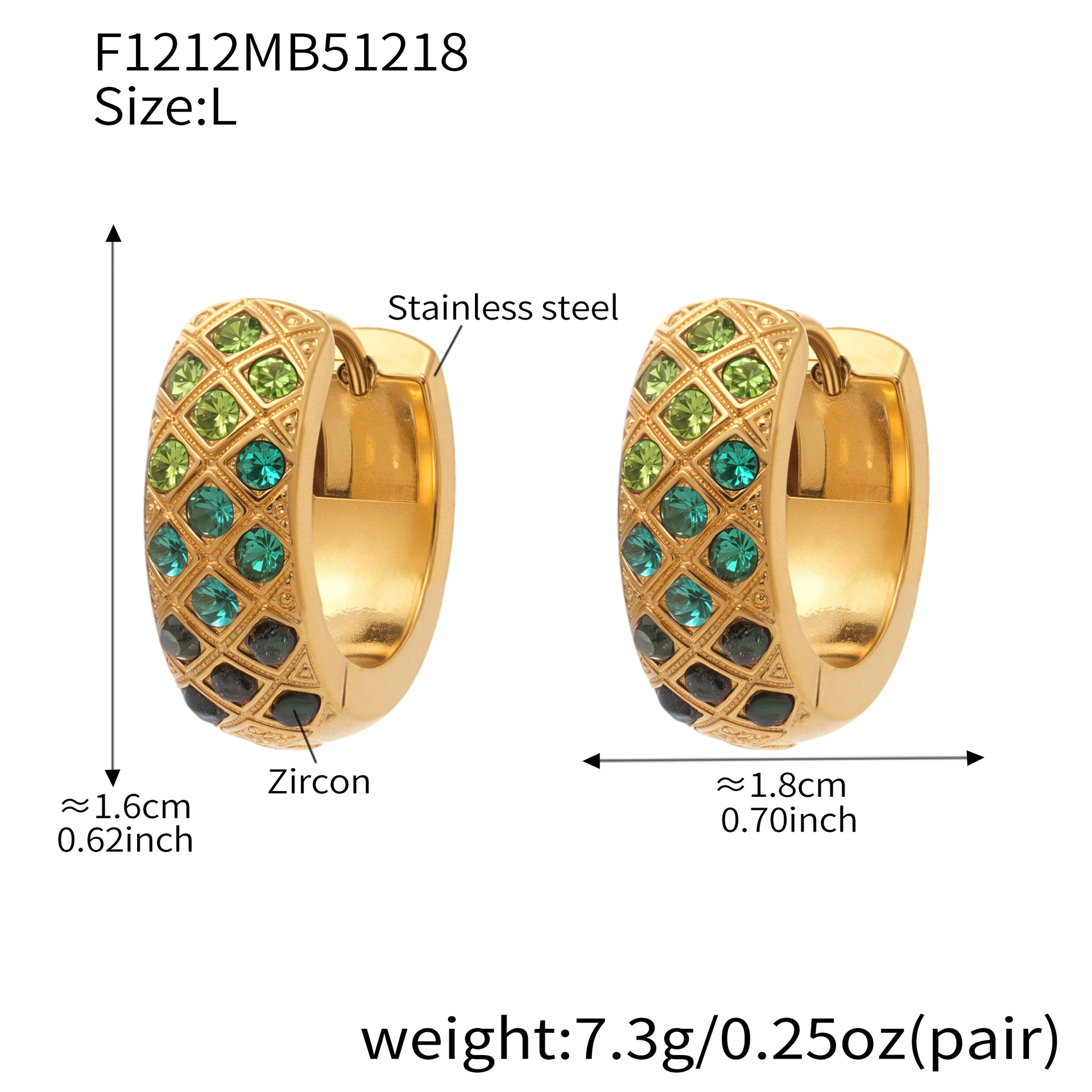 谜丽 新款不锈钢彩锆菱格纹耳圈镀18k真金时尚精致轻奢多尺寸耳扣