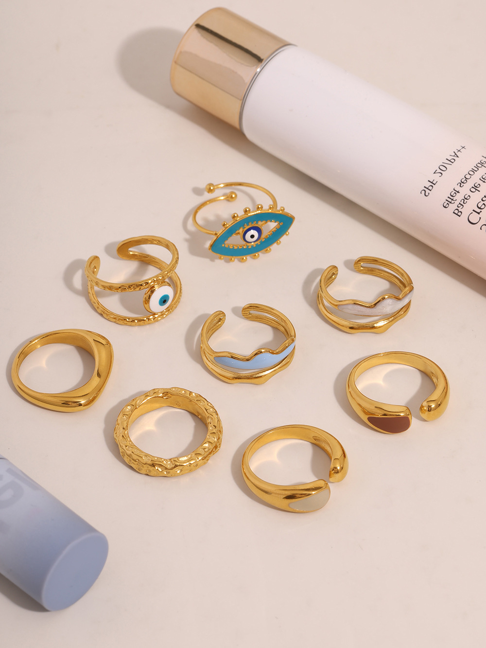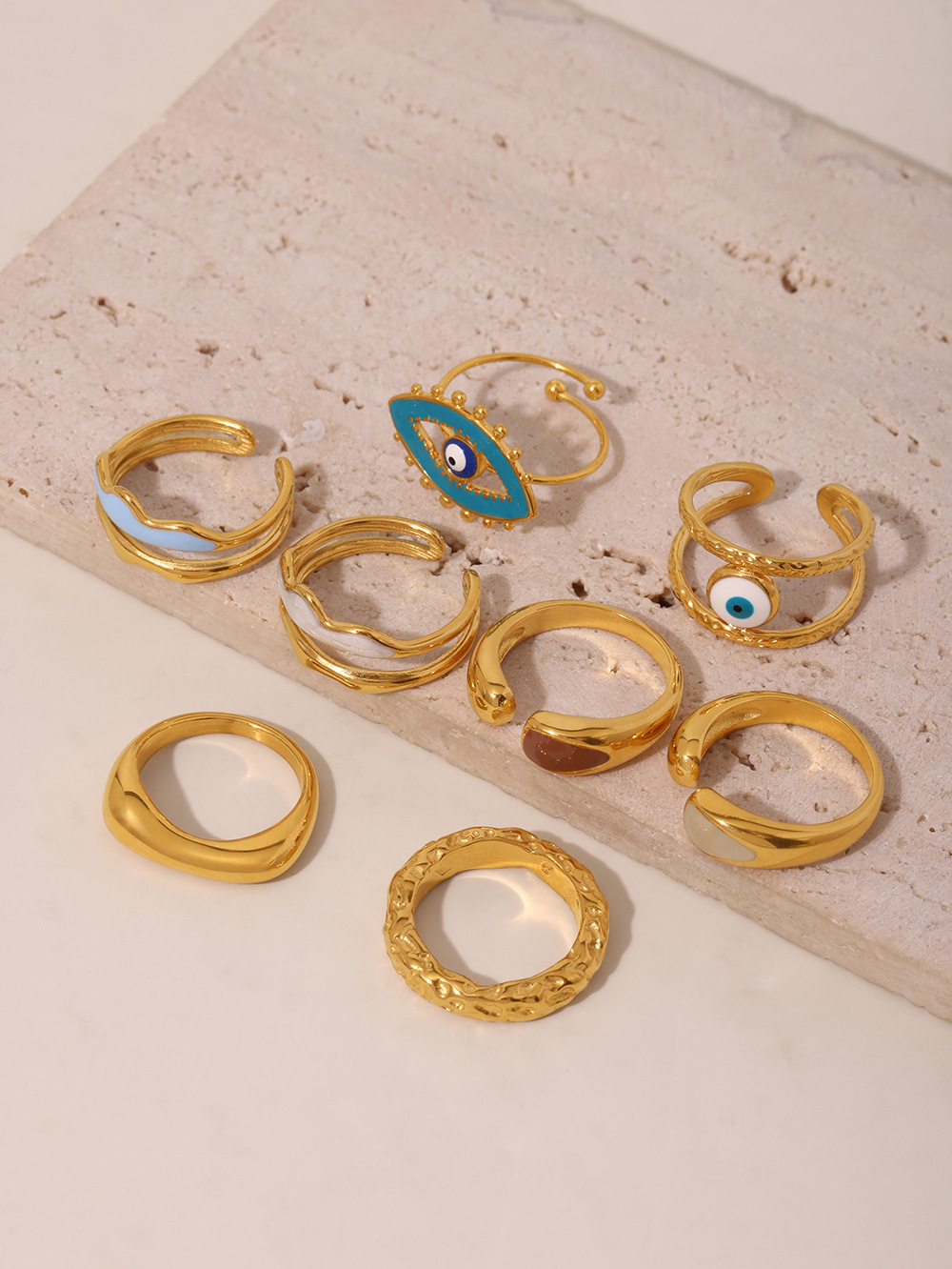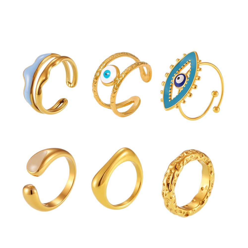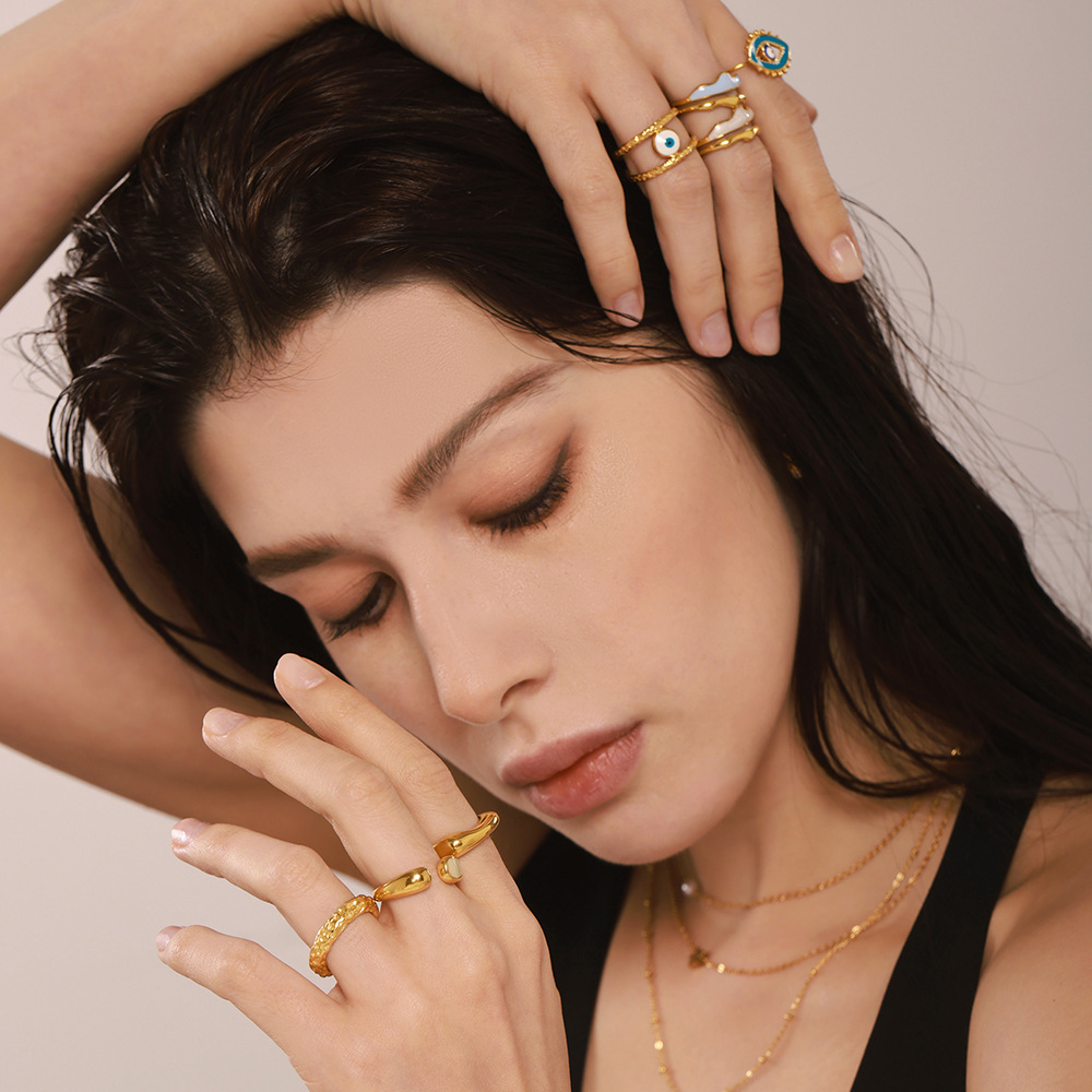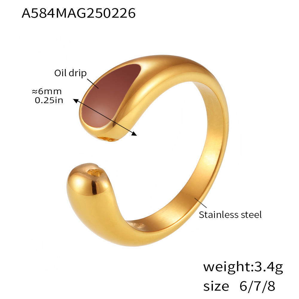 谜丽 环形珐琅彩釉不规则欧美指环小众设计感钛钢18K真金戒指首饰