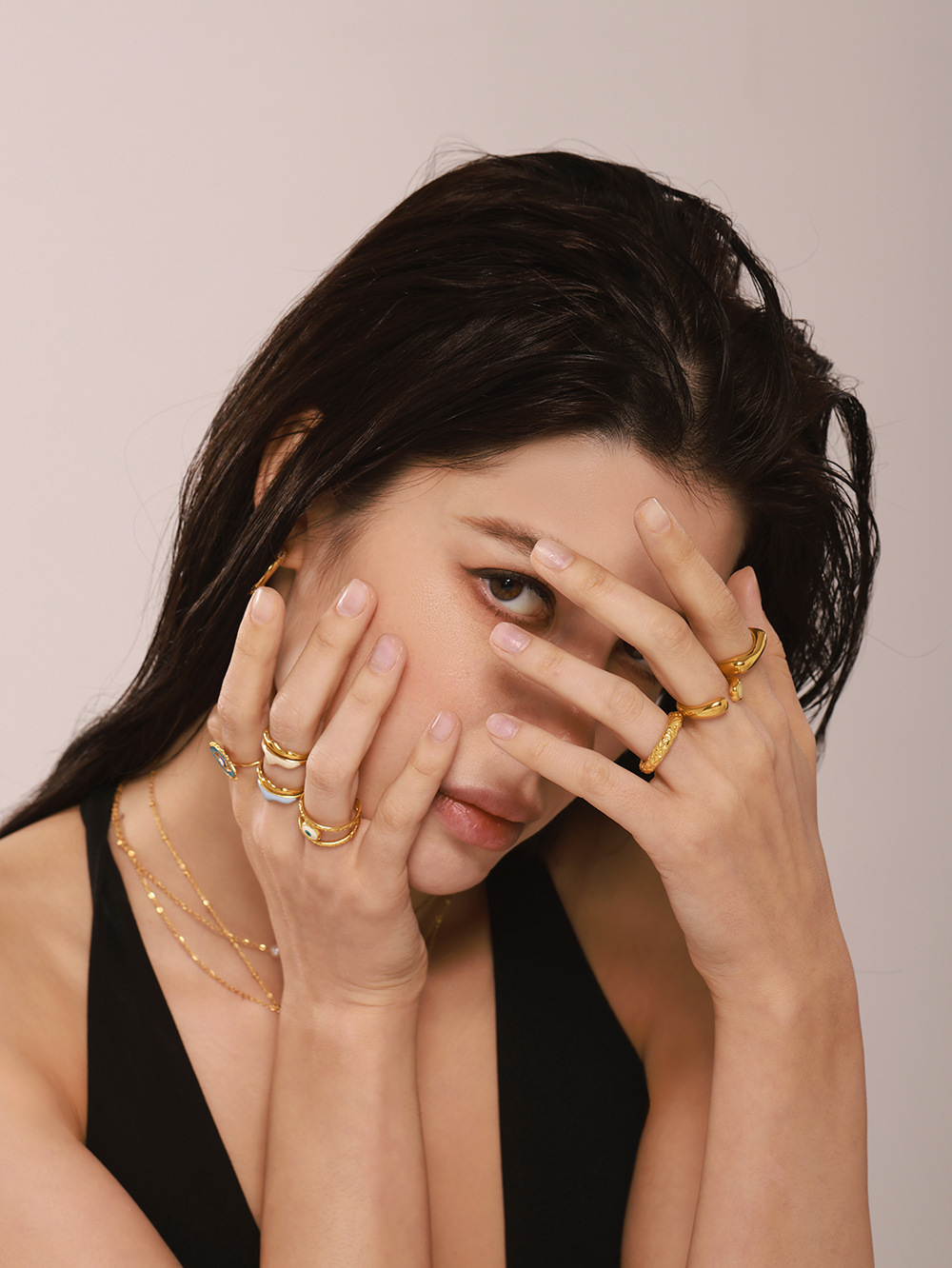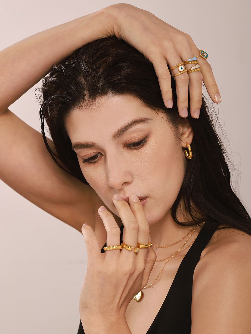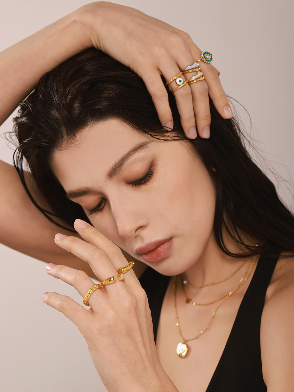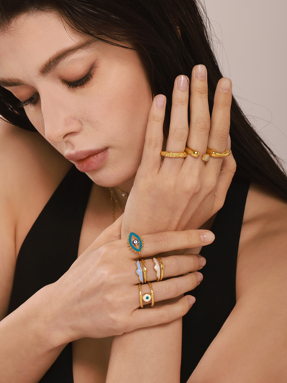 谜丽 环形珐琅彩釉不规则欧美指环小众设计感钛钢18K真金戒指首饰