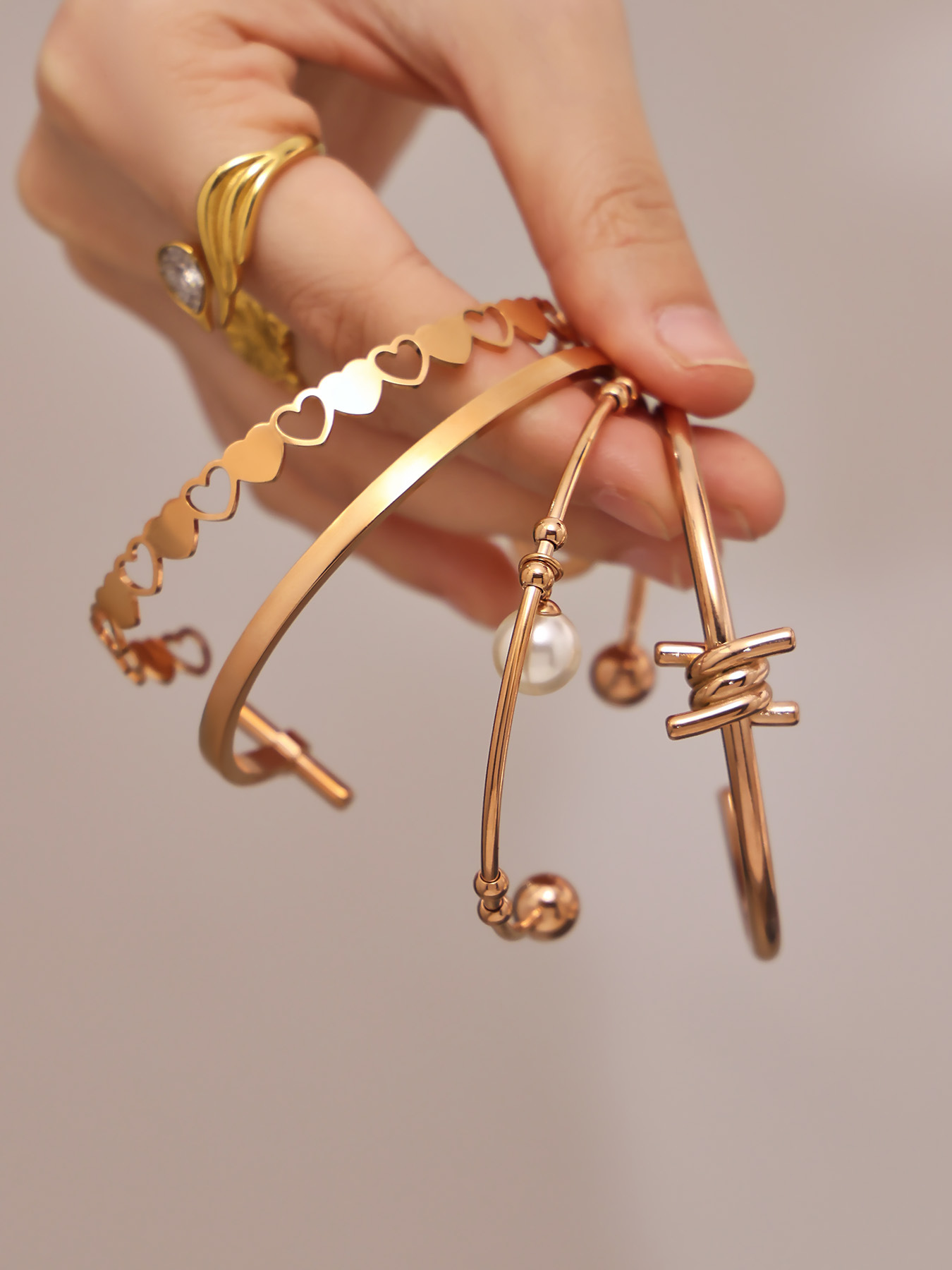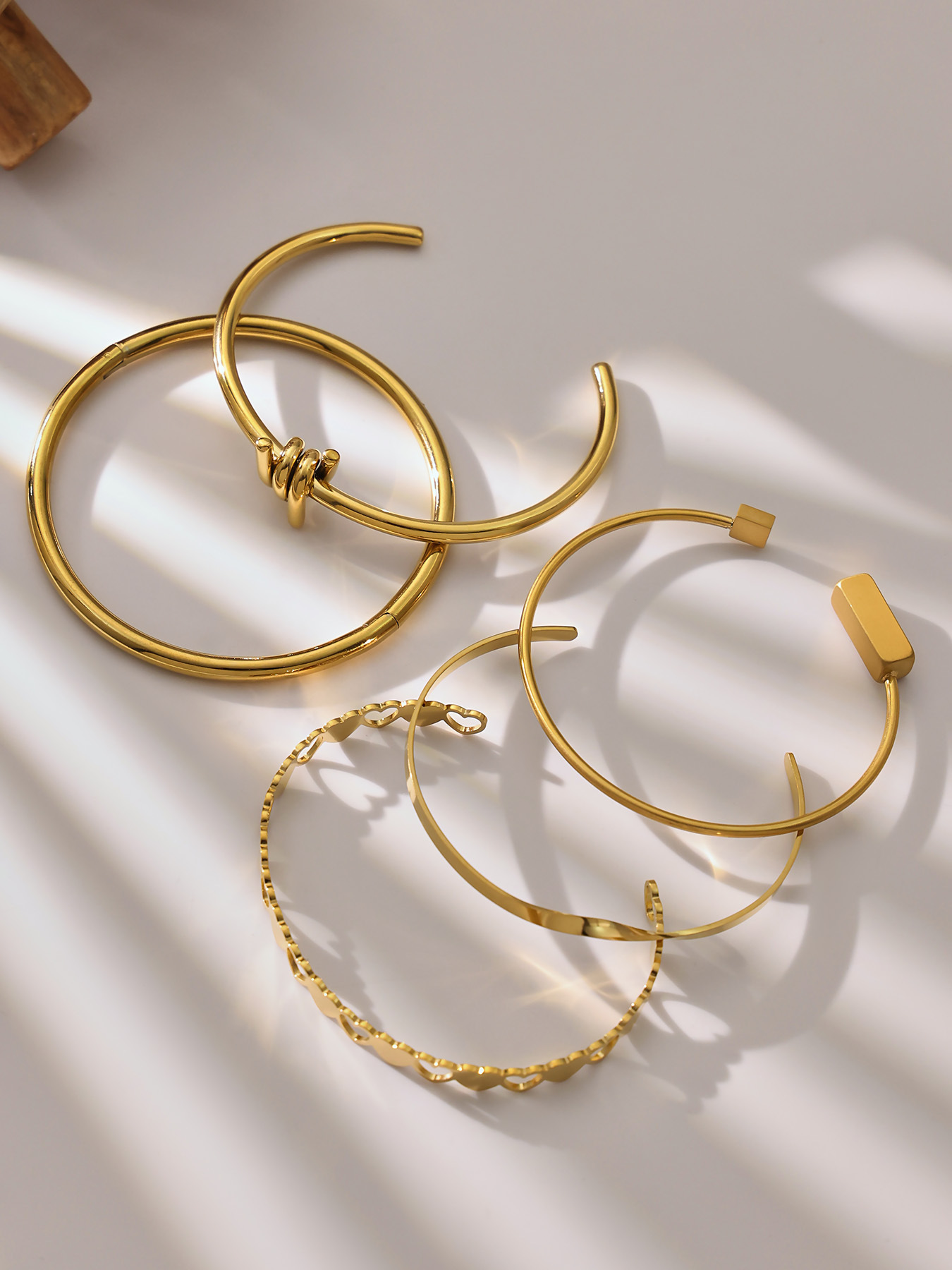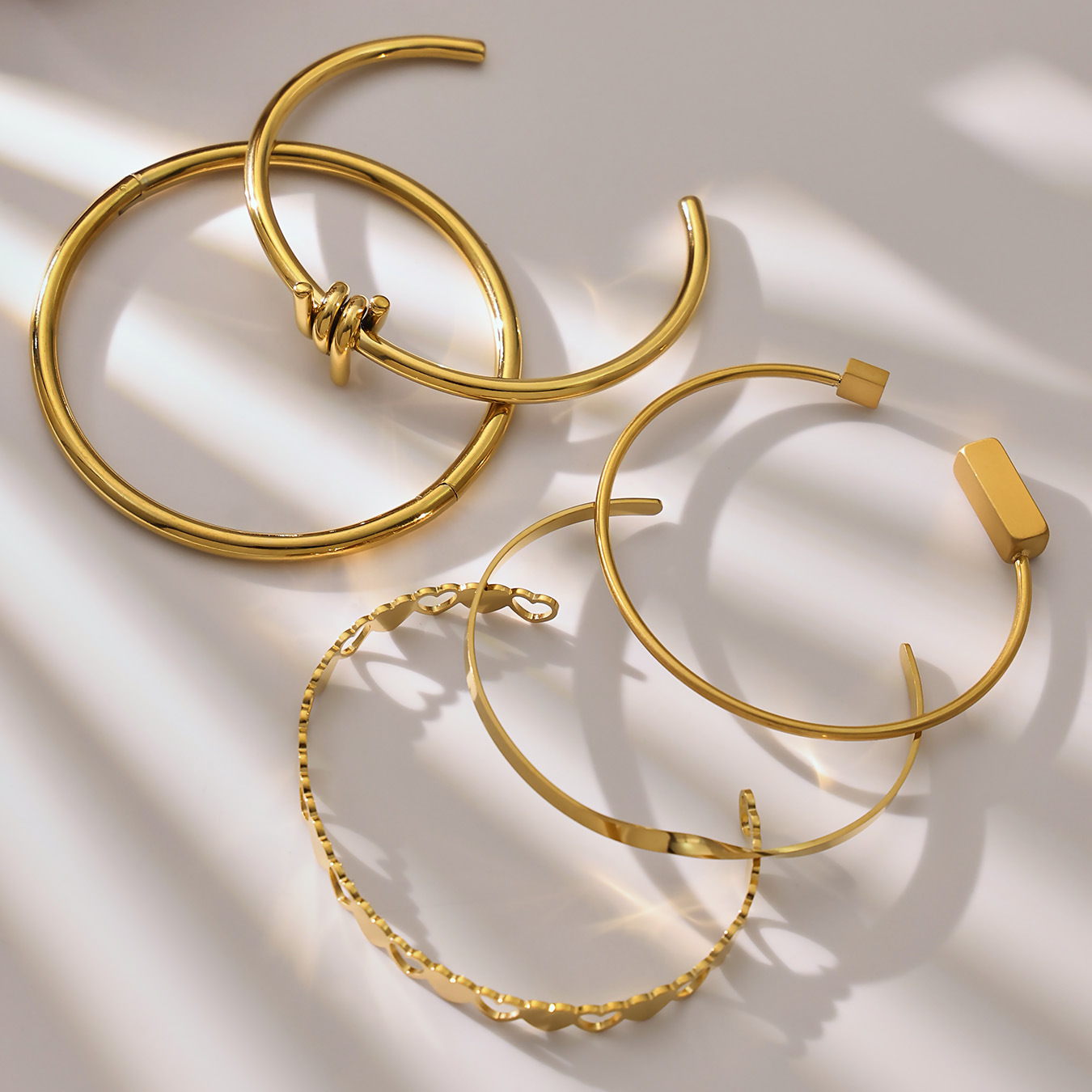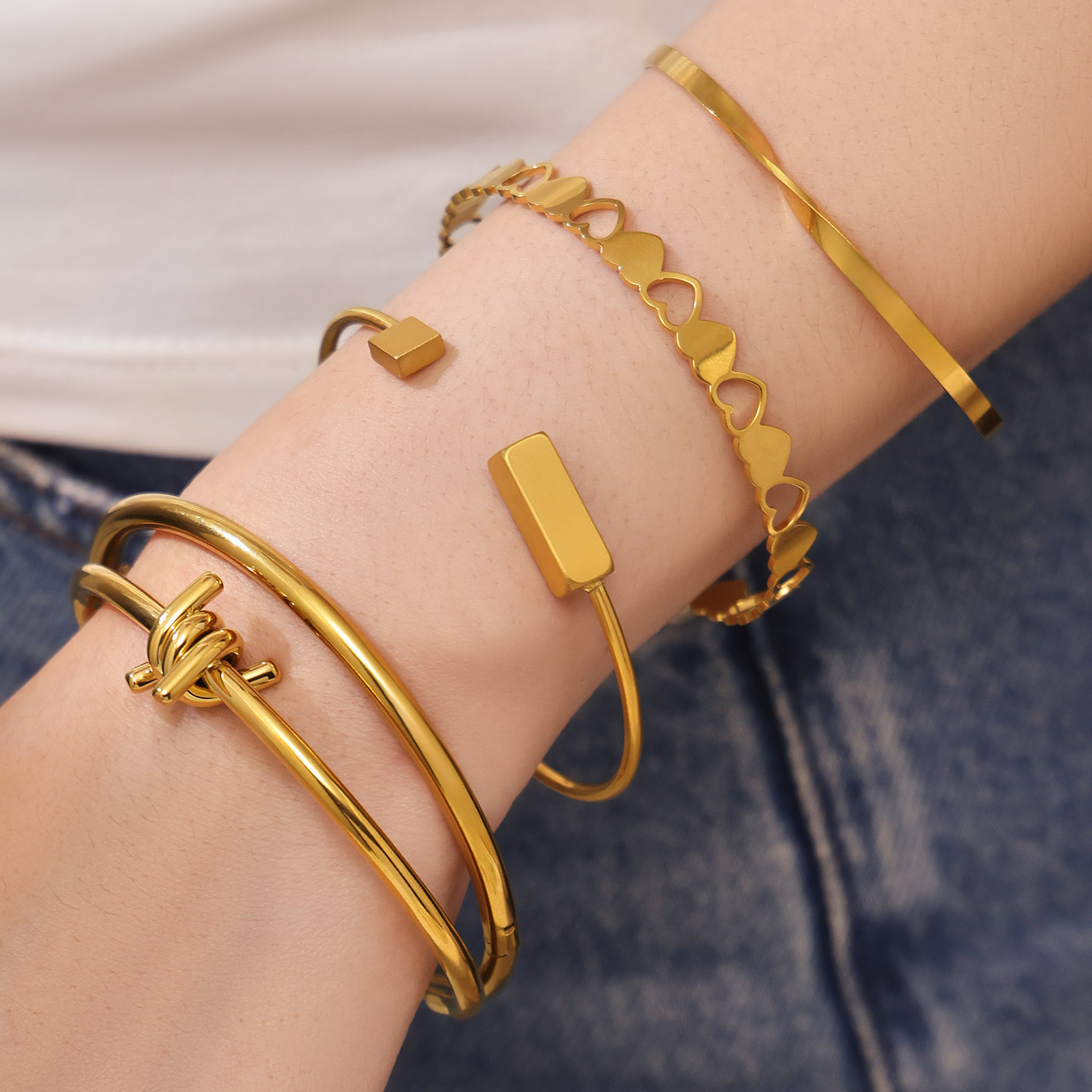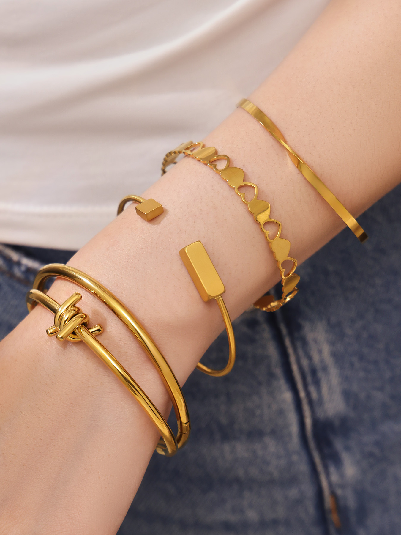 谜丽不锈钢心连心手镯女简约ins风镂空设计几何手环组合镀18k真金