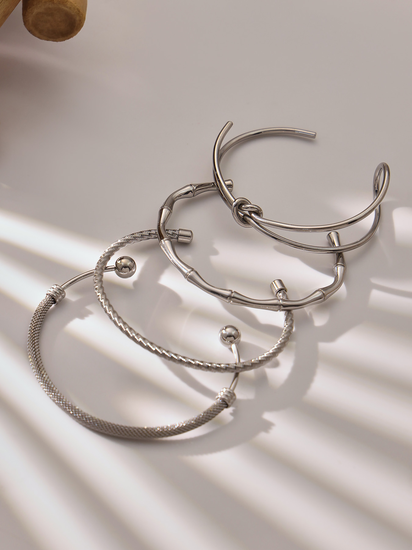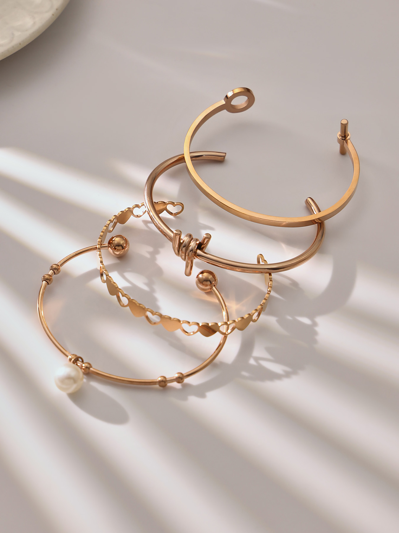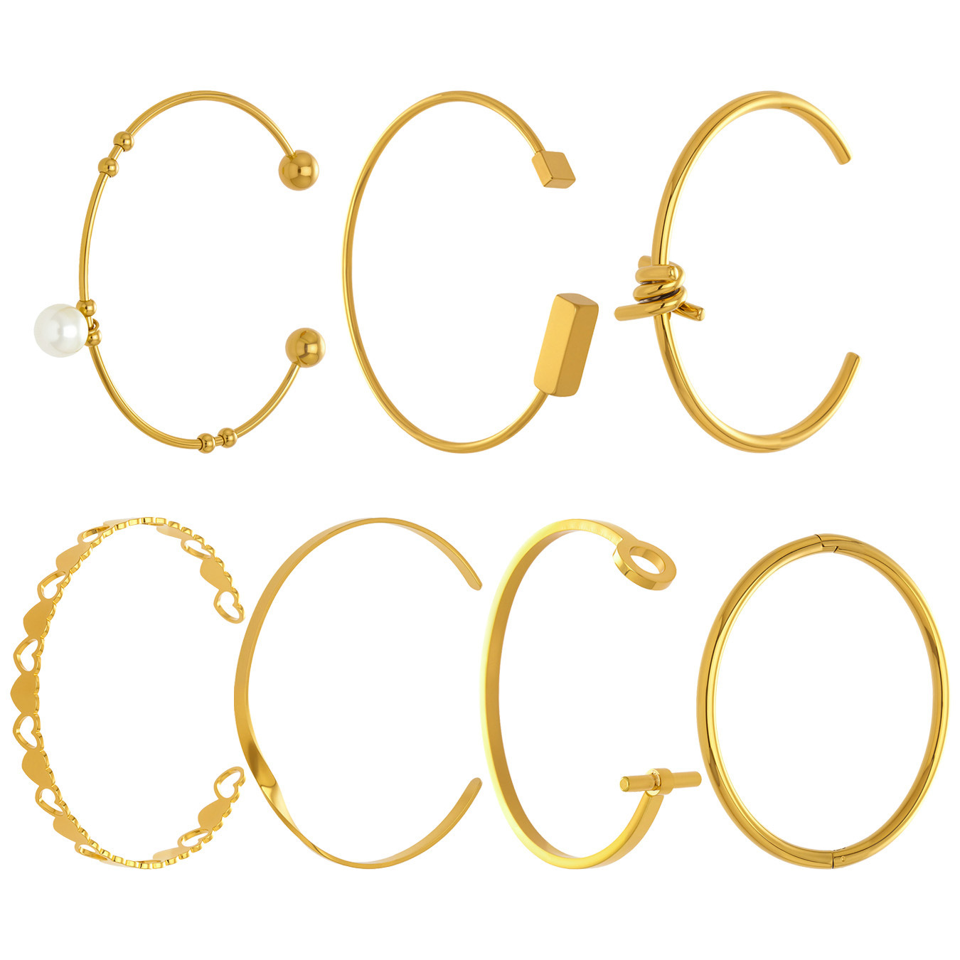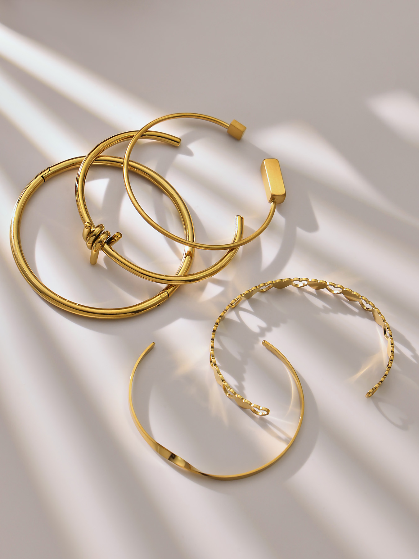 谜丽不锈钢心连心手镯女简约ins风镂空设计几何手环组合镀18k真金