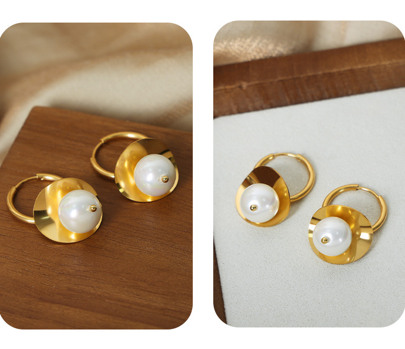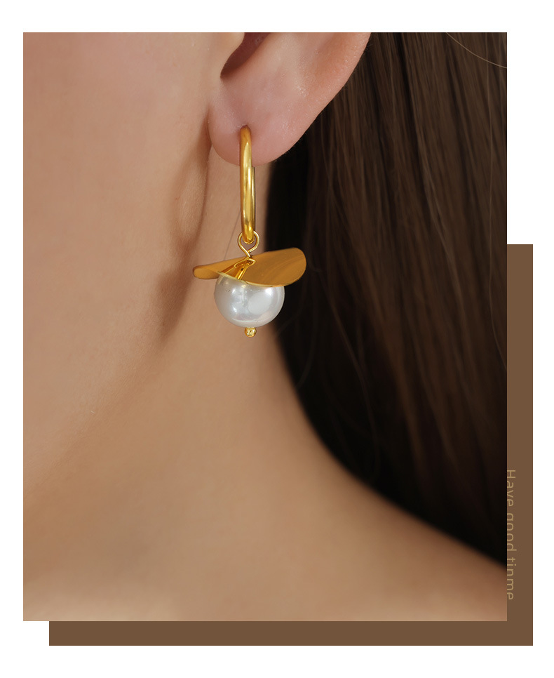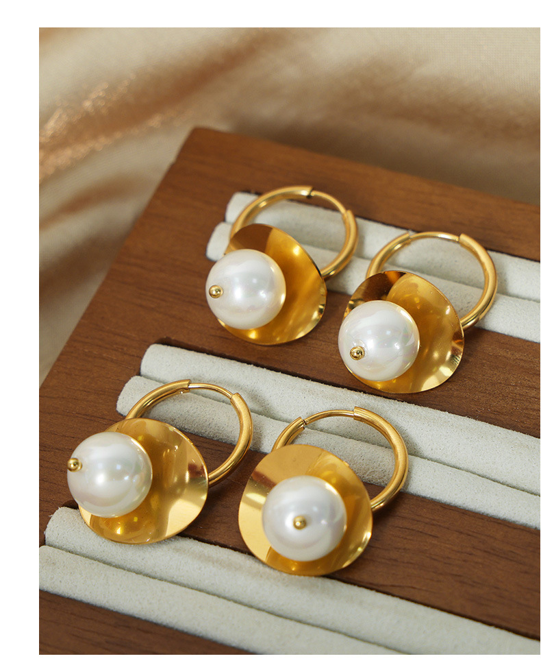 欧美新款跨境时尚复古轻奢简约钛钢镀金彩珠耳饰小众设计耳环饰品