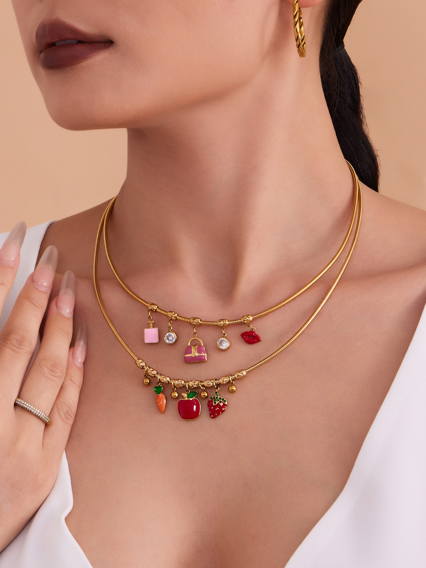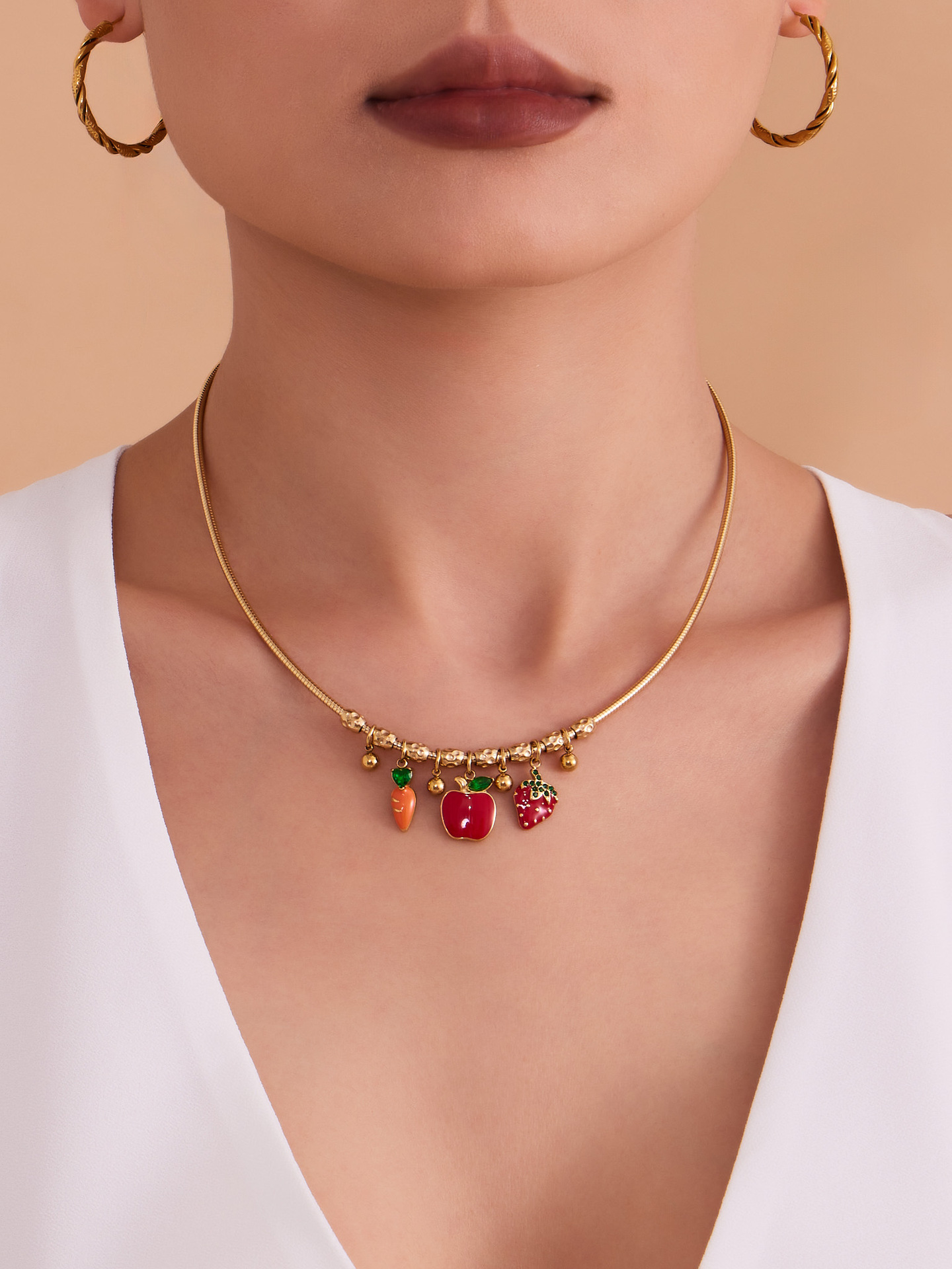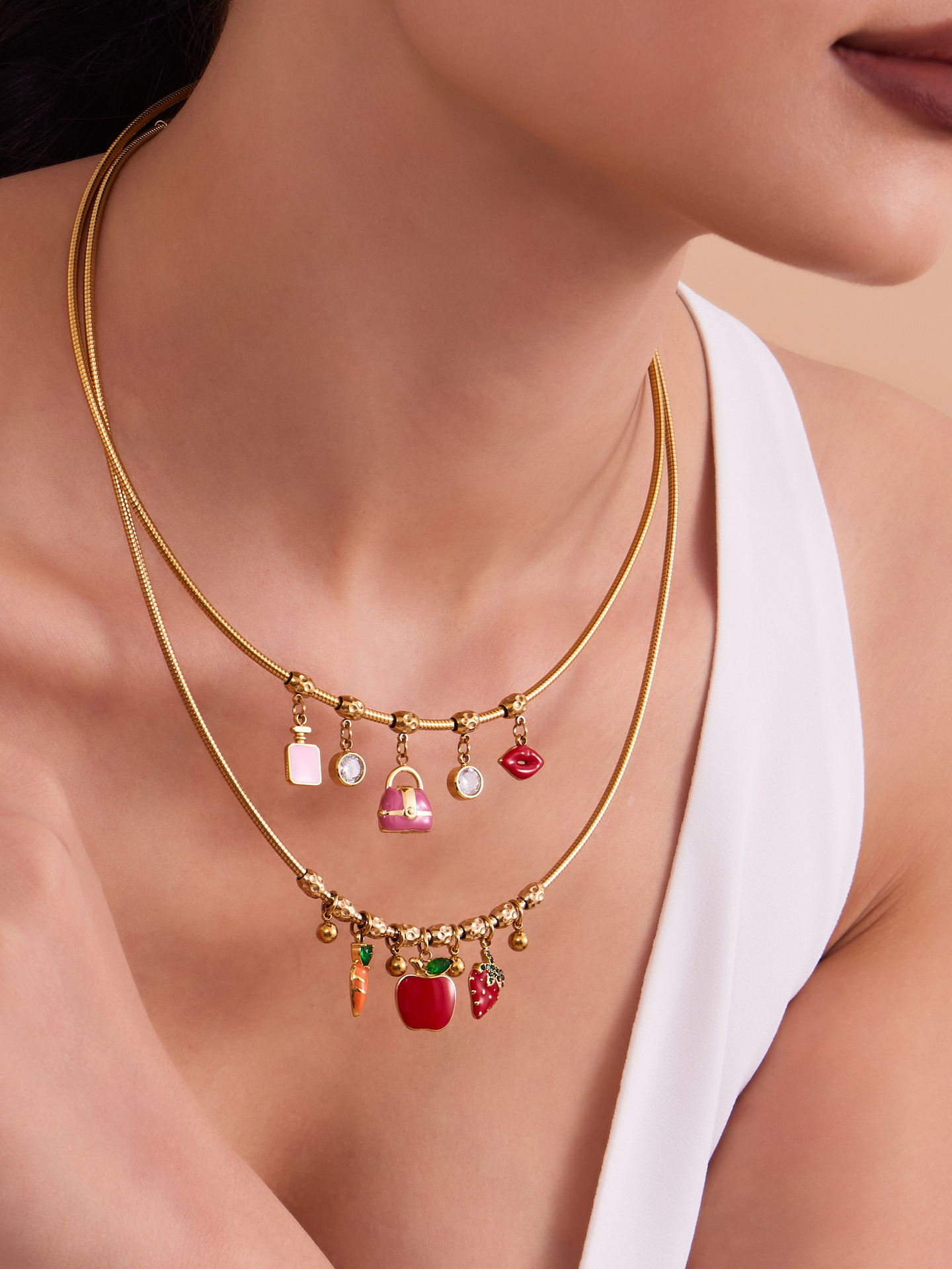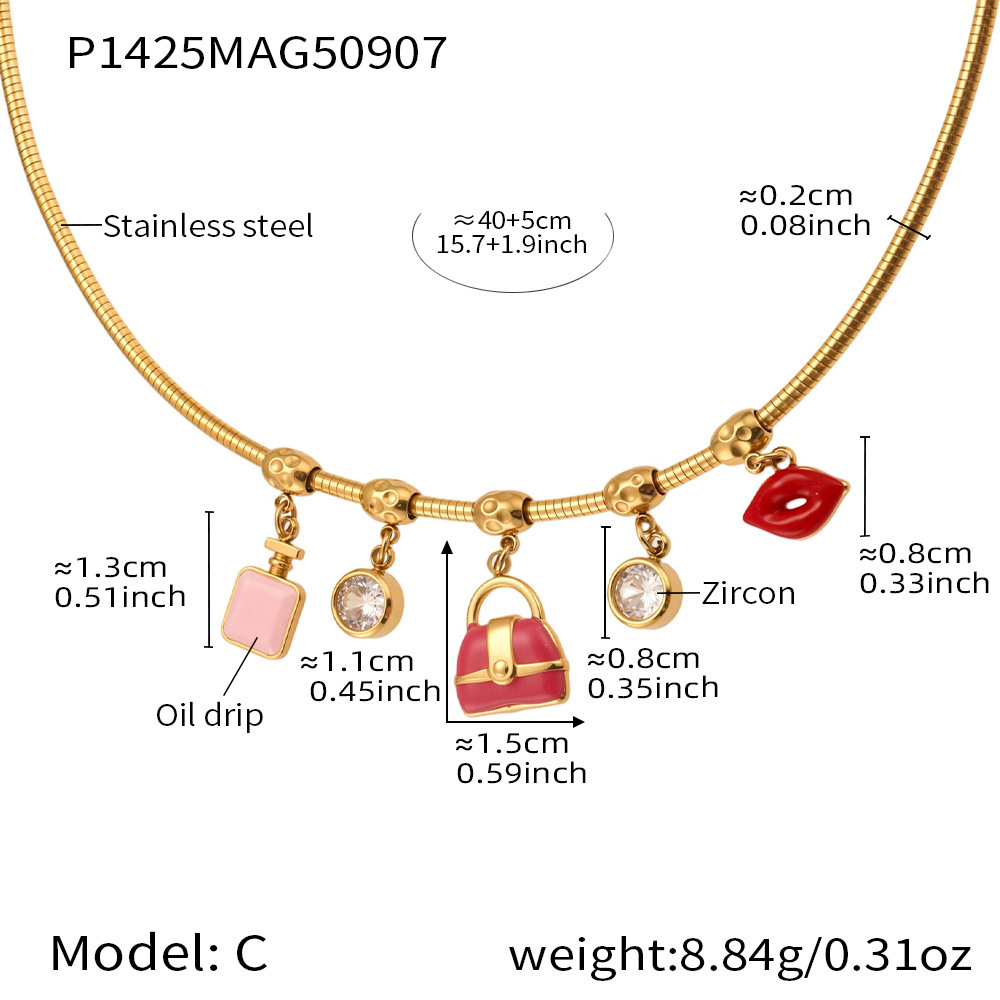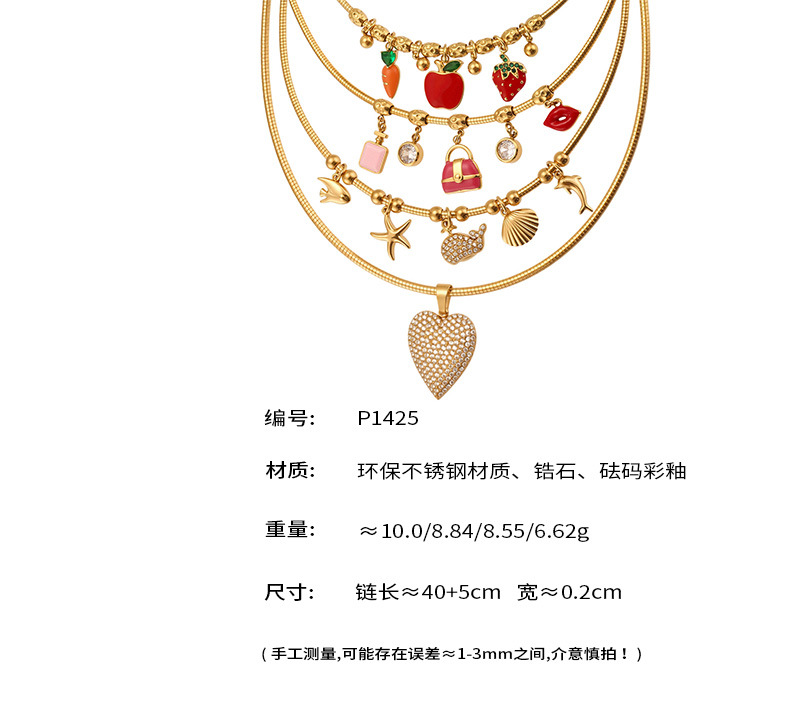 谜丽 砝码彩釉水果镶钻多吊坠不锈钢弹力项圈镀18k金跨境专供项链