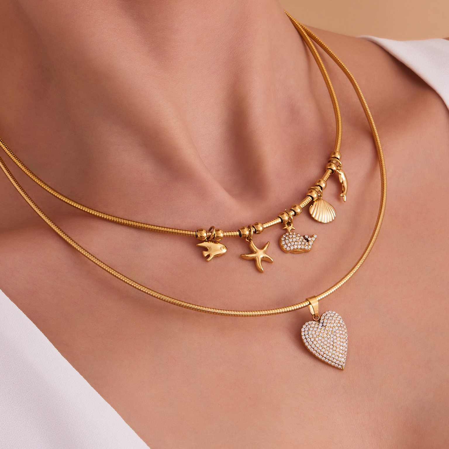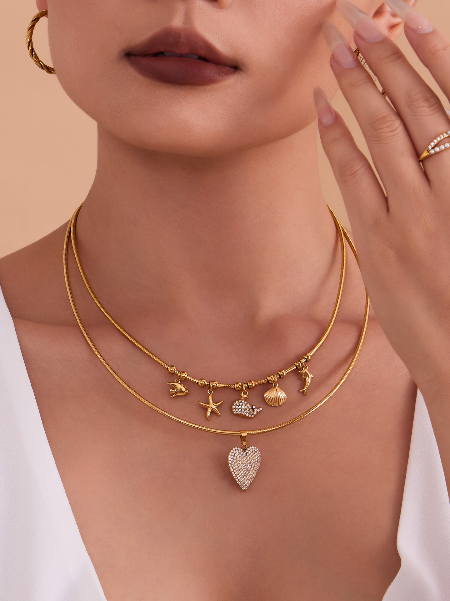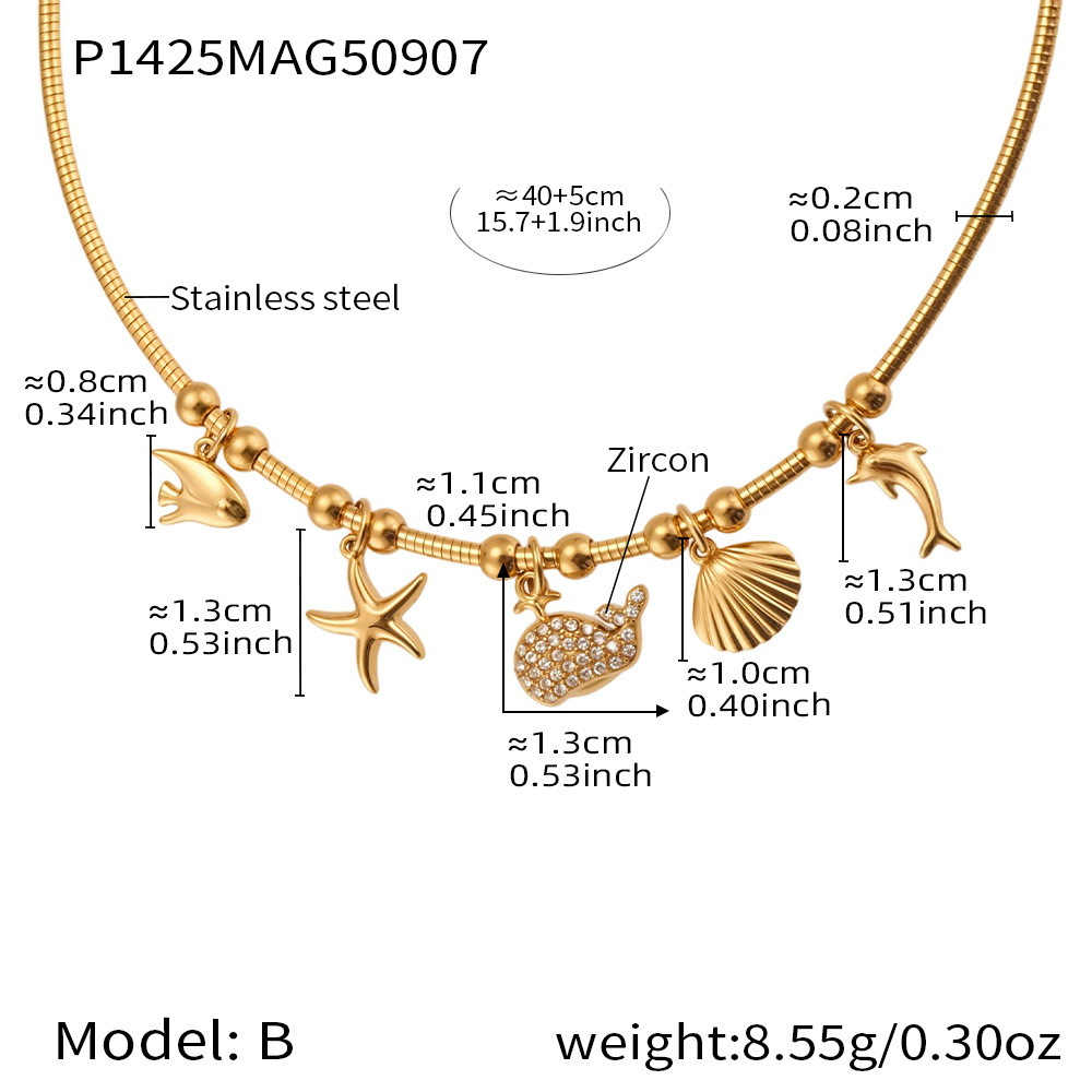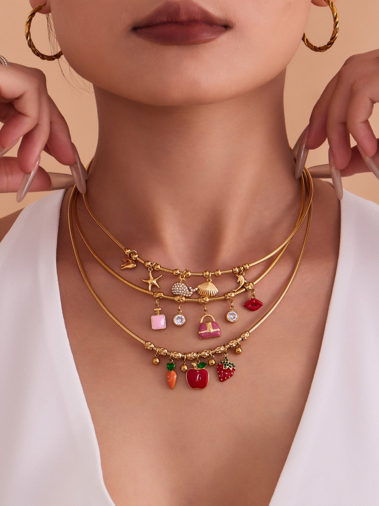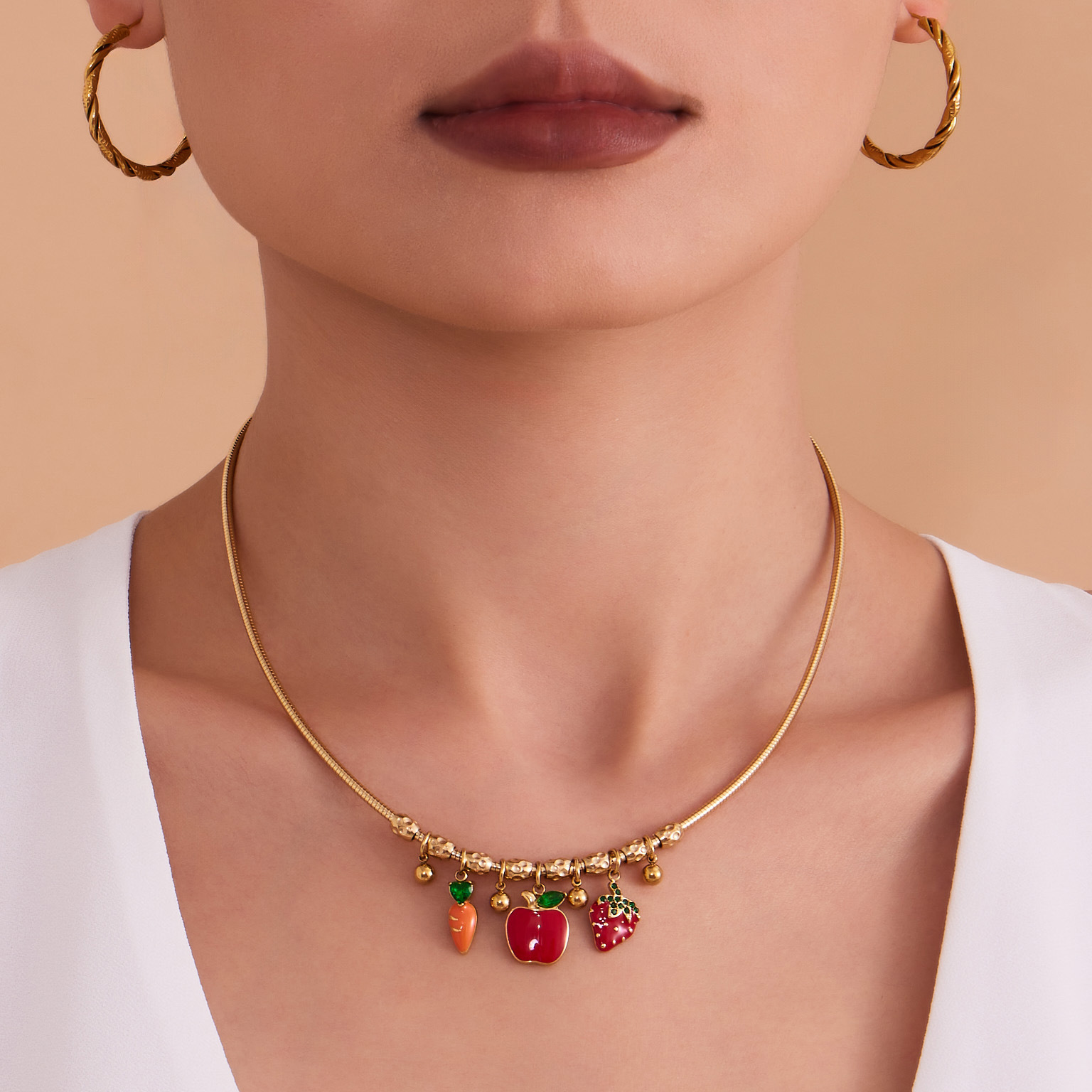 谜丽 砝码彩釉水果镶钻多吊坠不锈钢弹力项圈镀18k金跨境专供项链