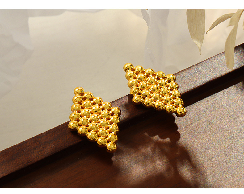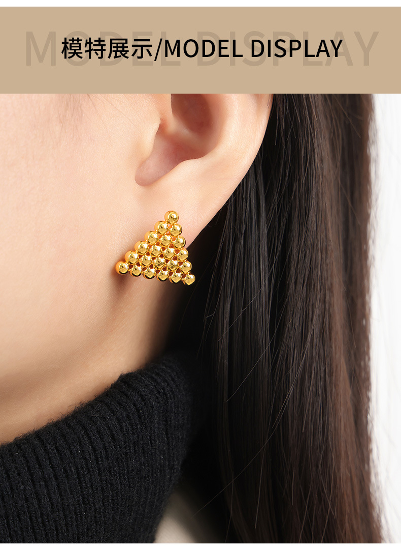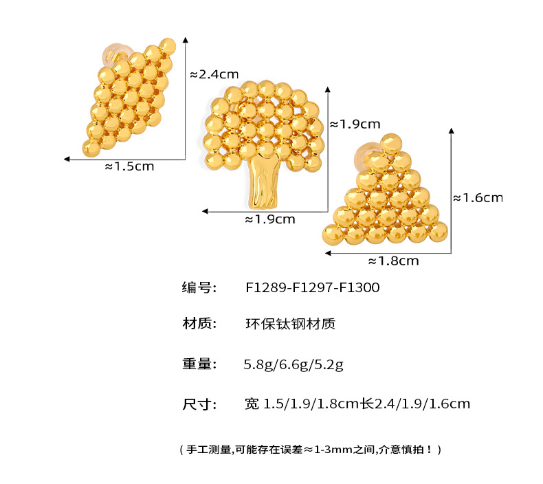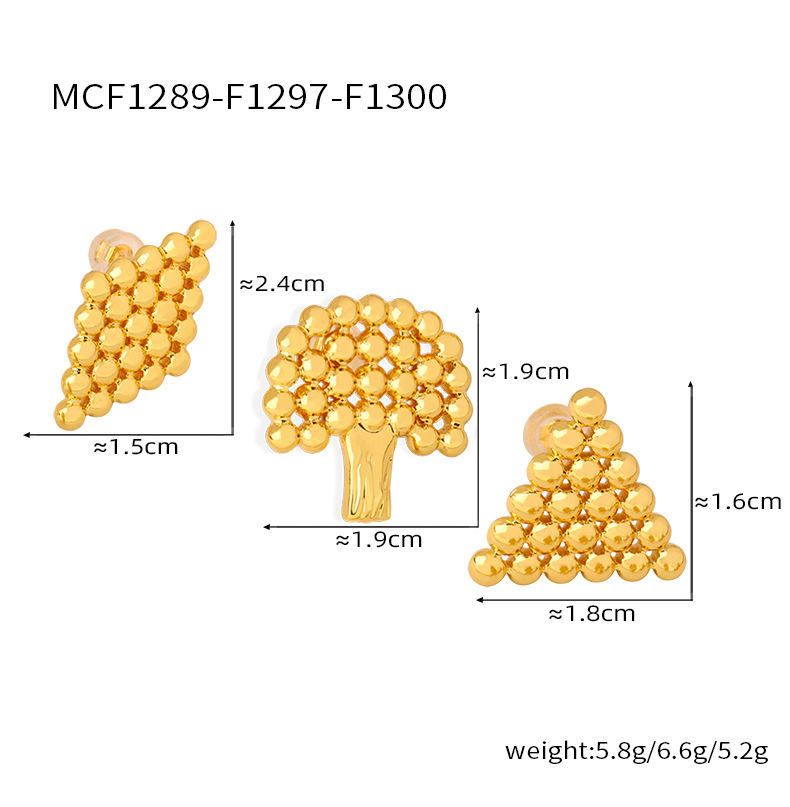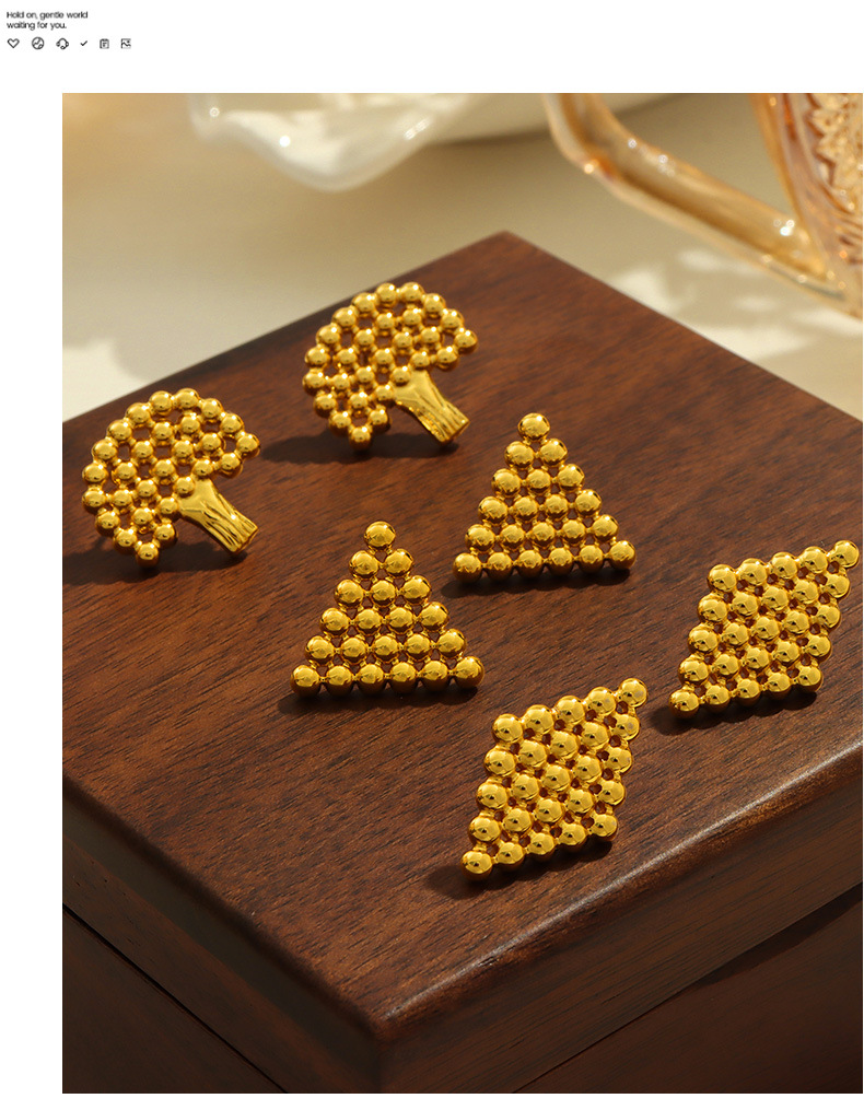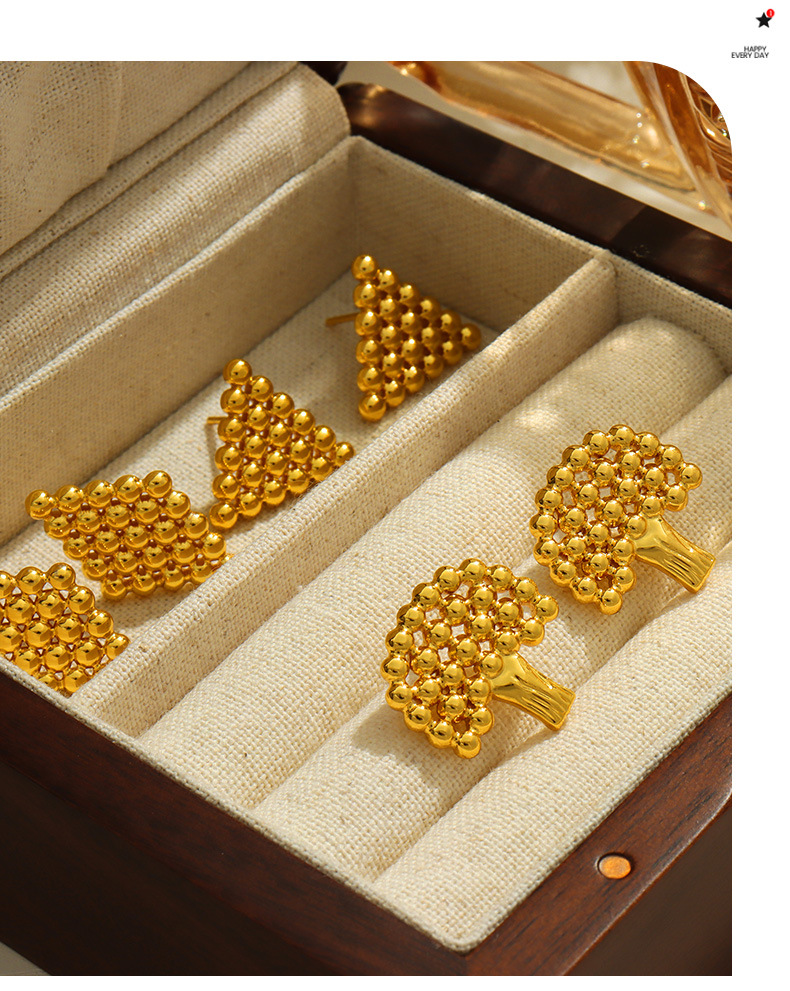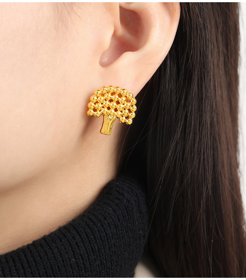 新款小众设计个性时尚钛钢镀金树木几何形钢珠拼接镂空饰品批发女
