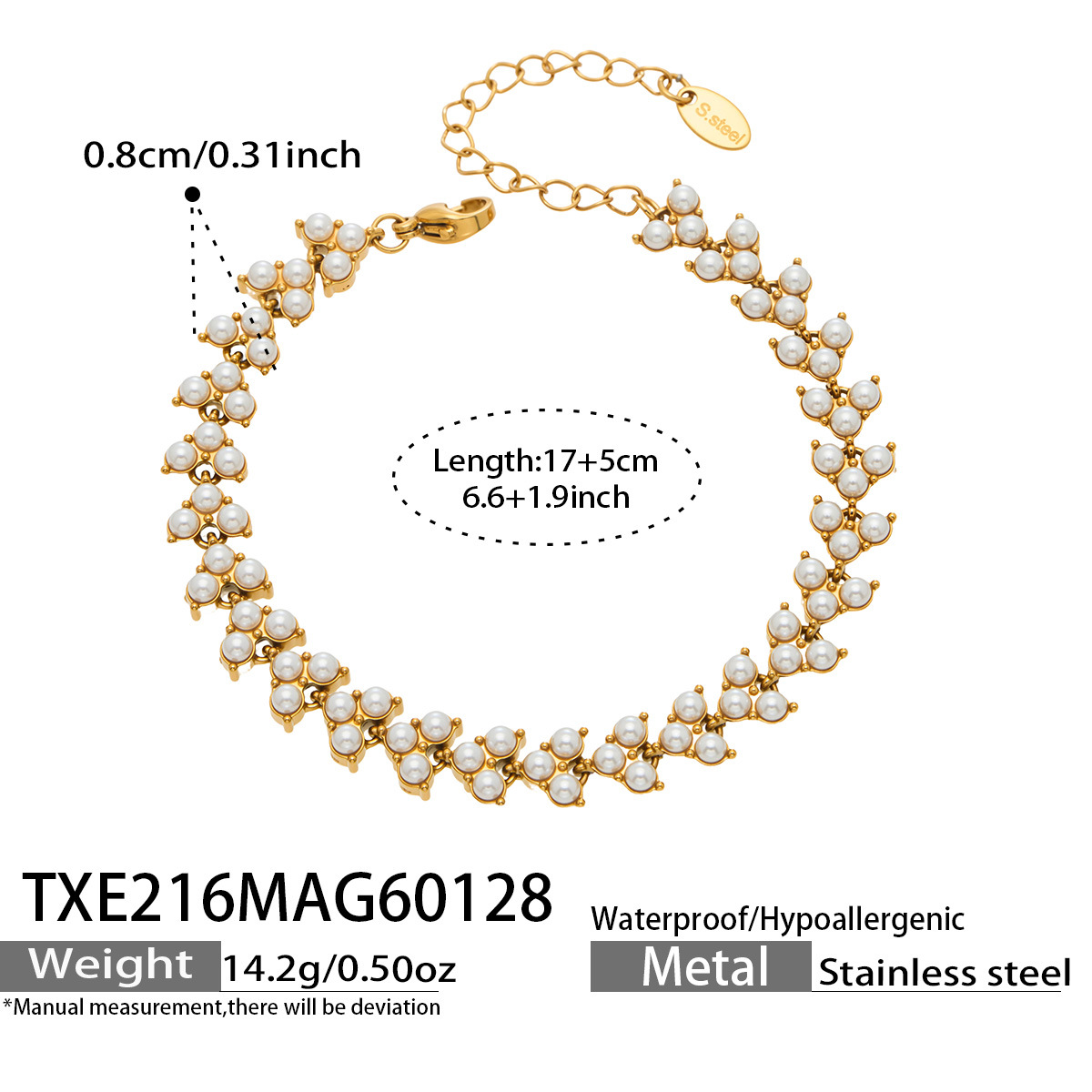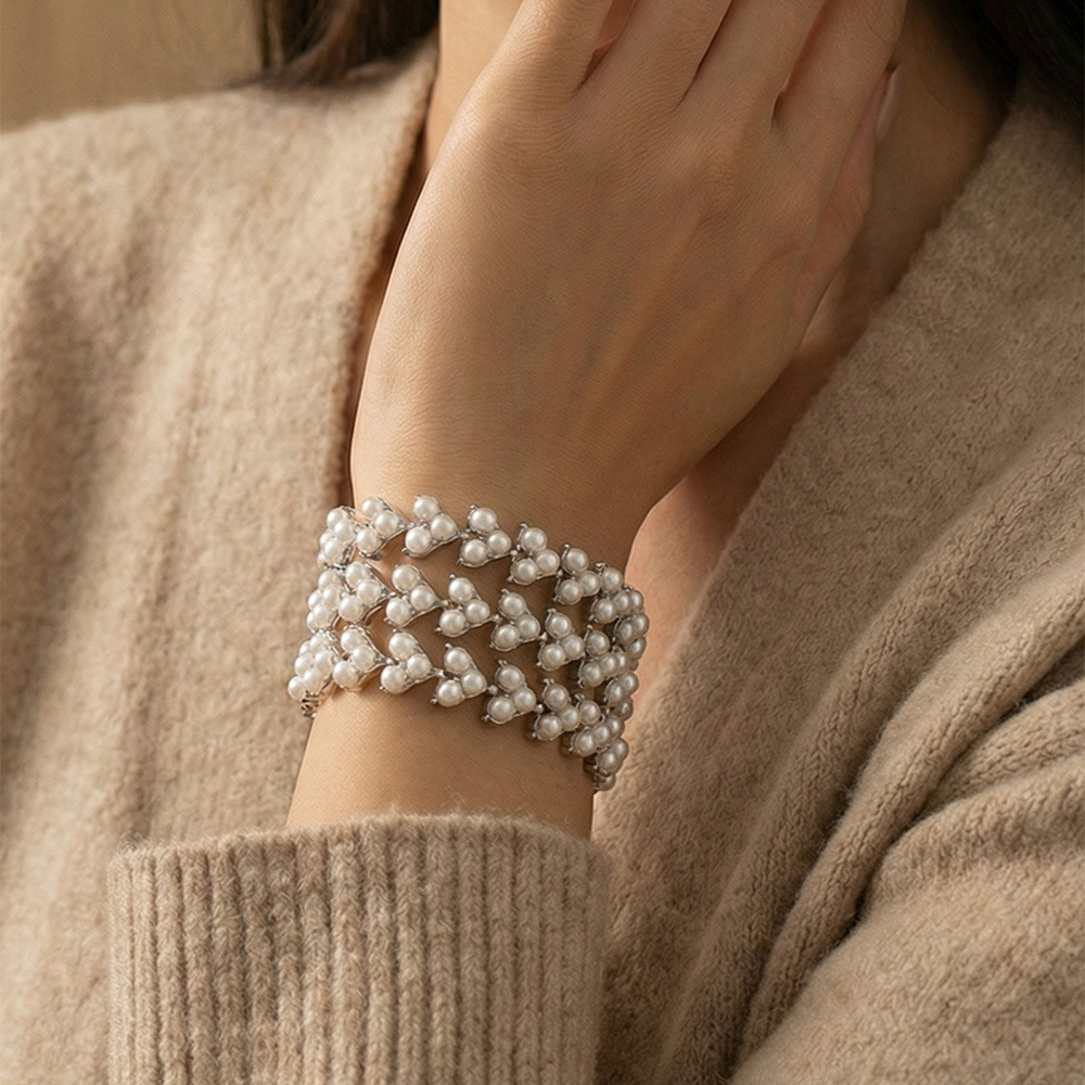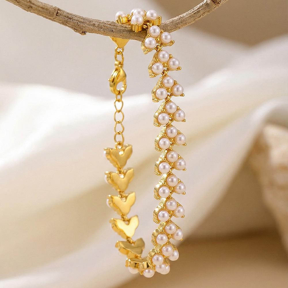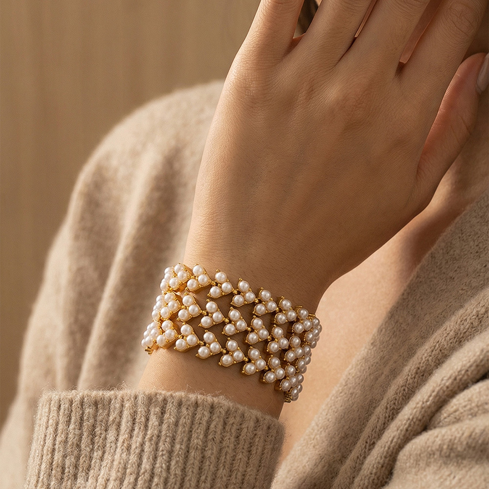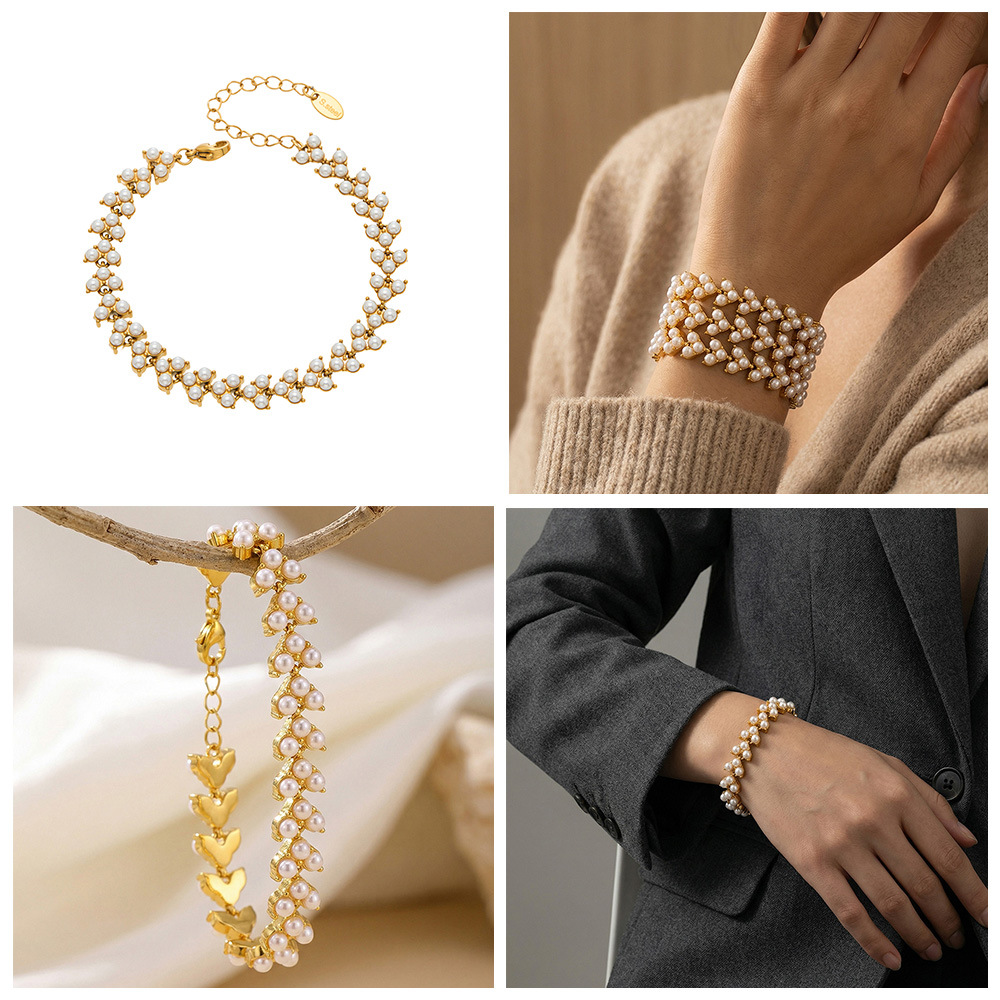 谜丽工厂直销高品质贝珠手链 欧美时尚精致麦穗设计感不锈钢手饰
