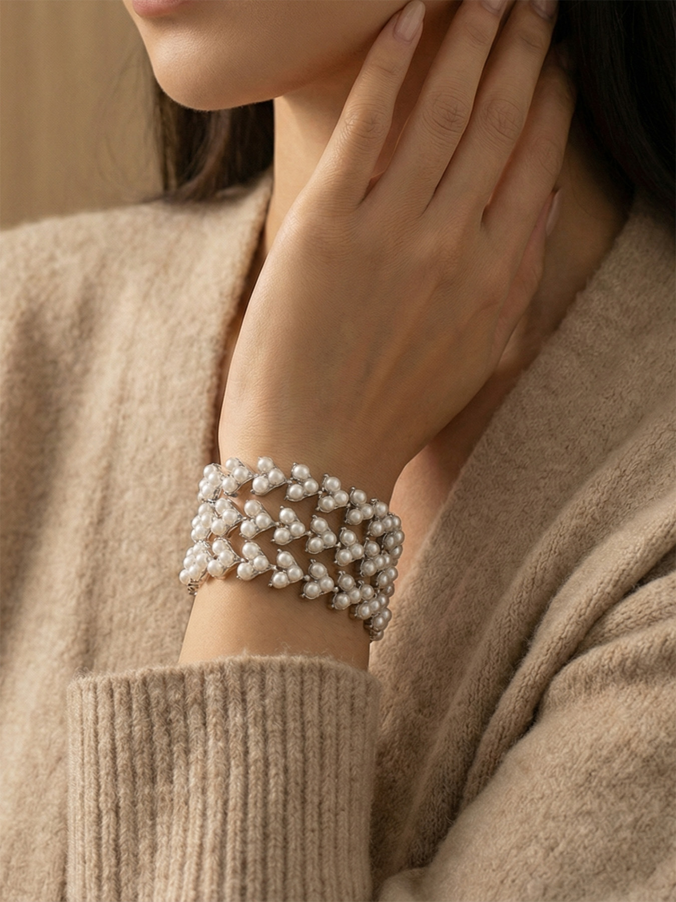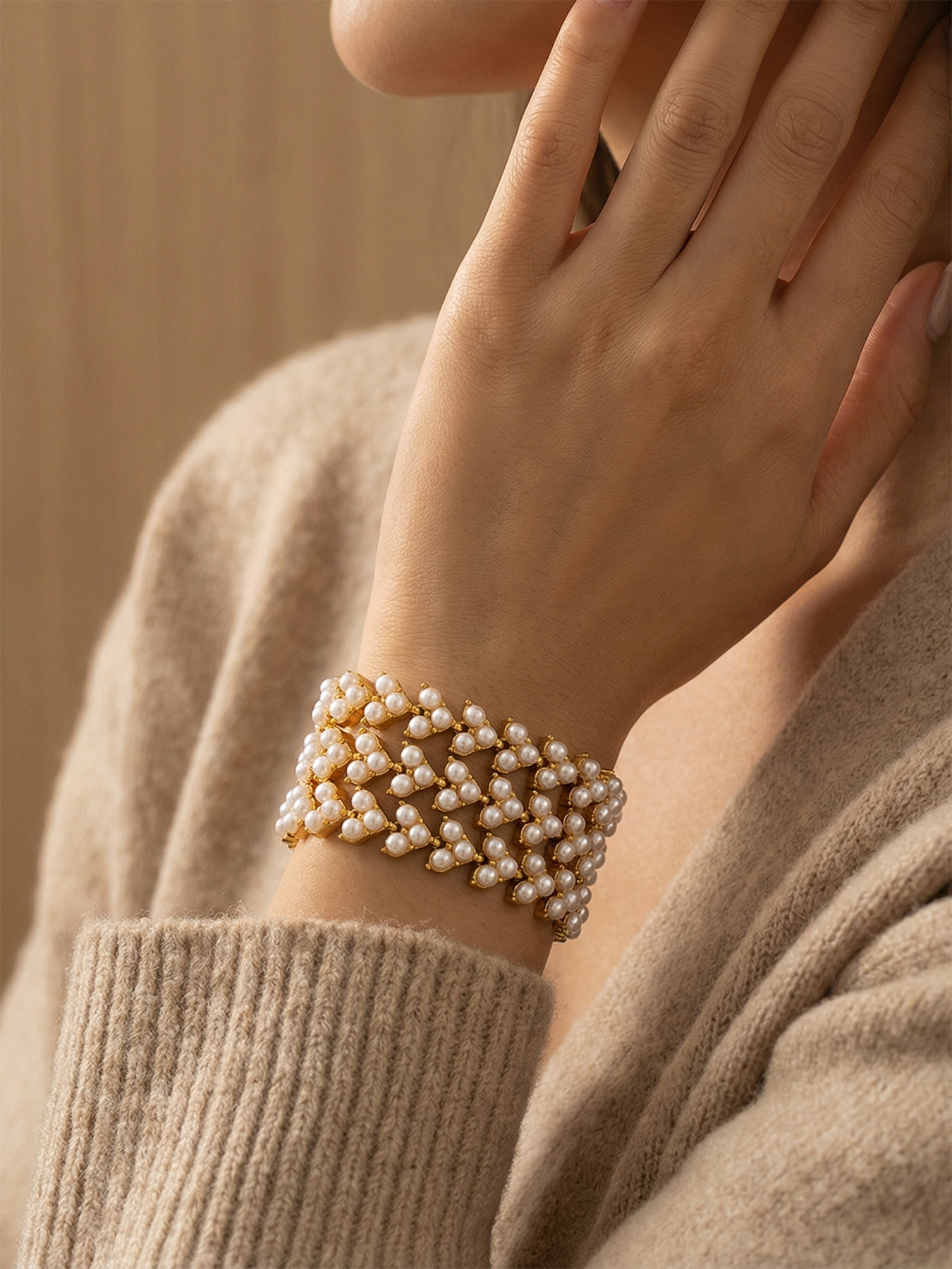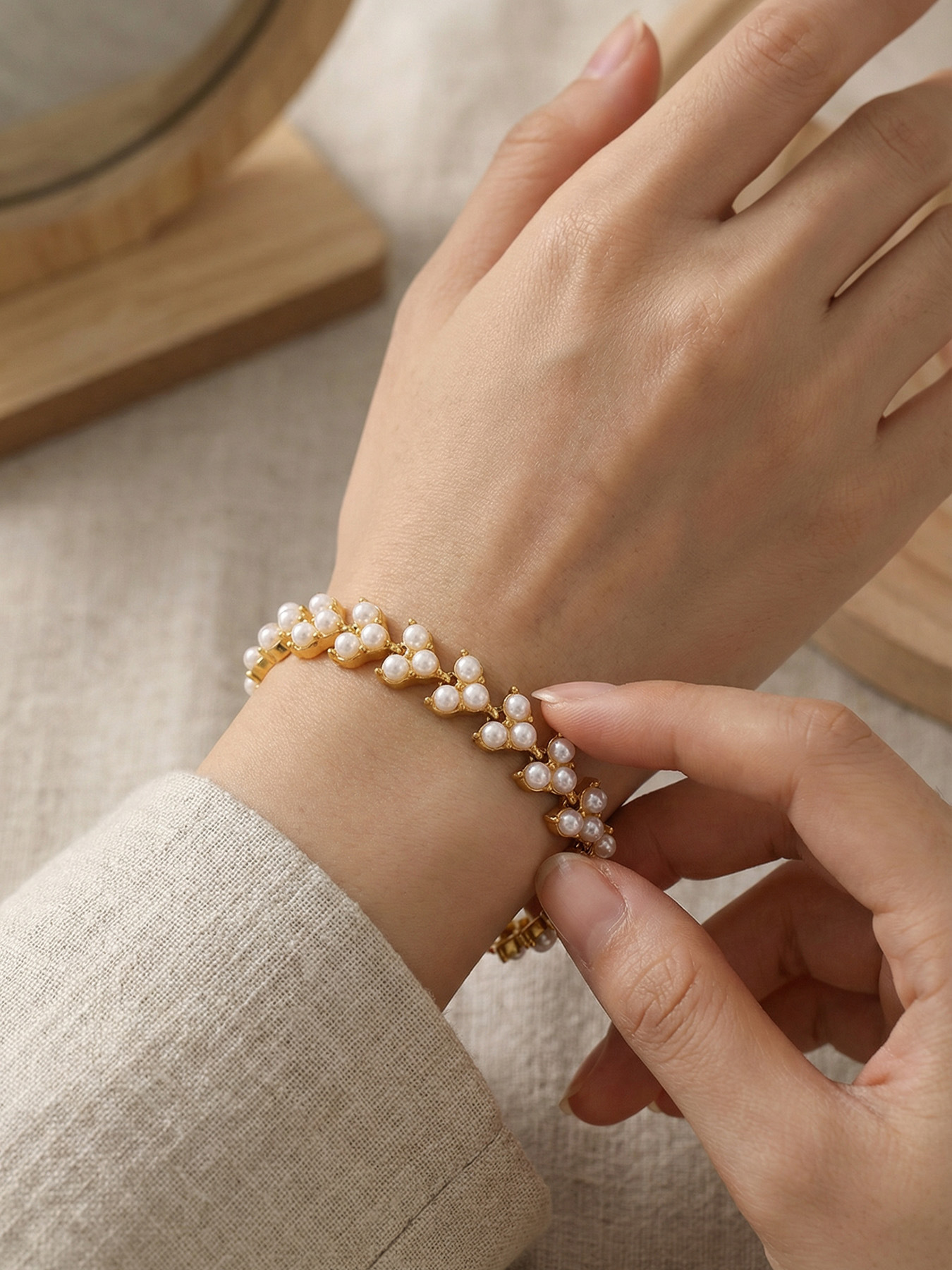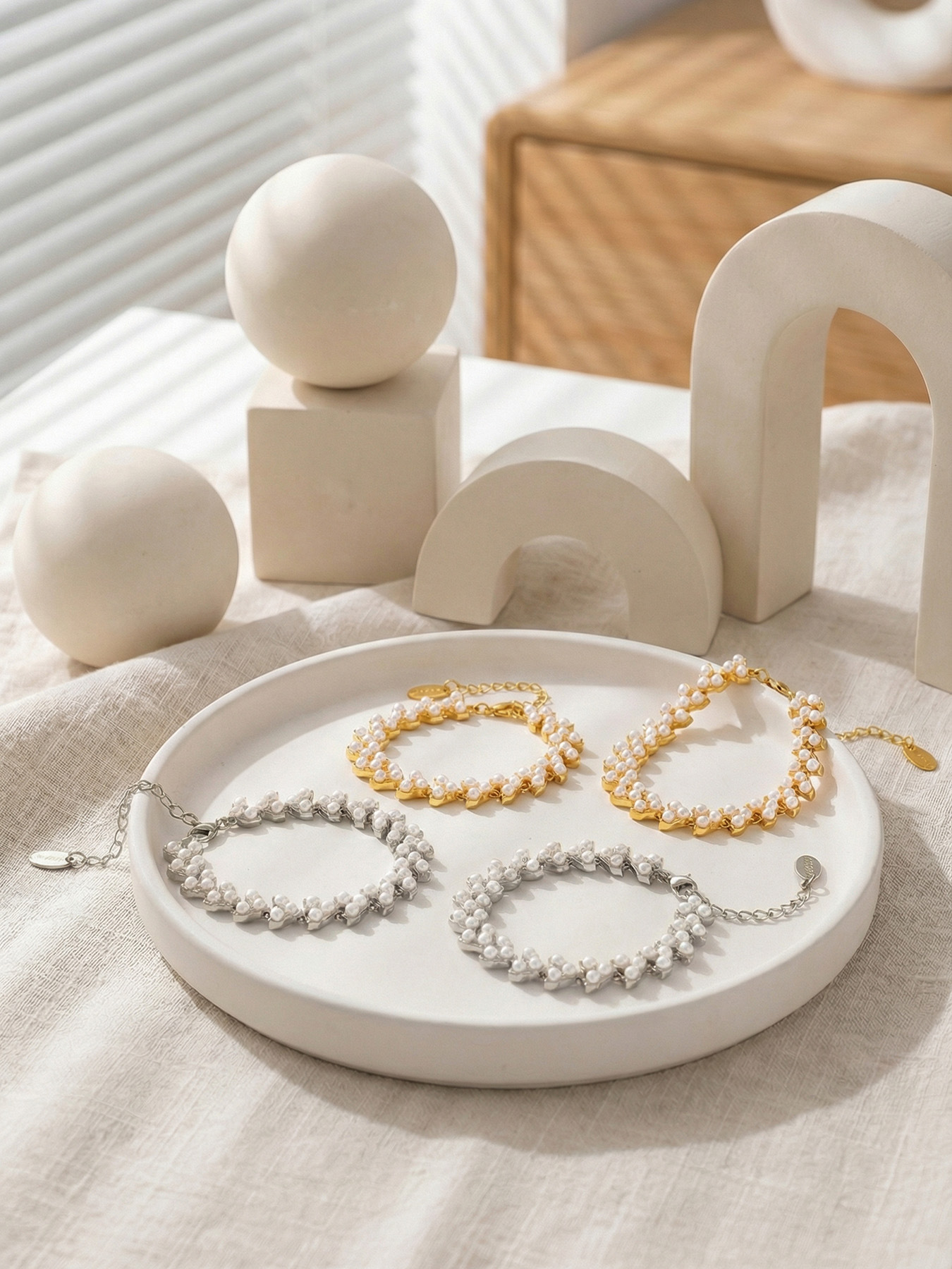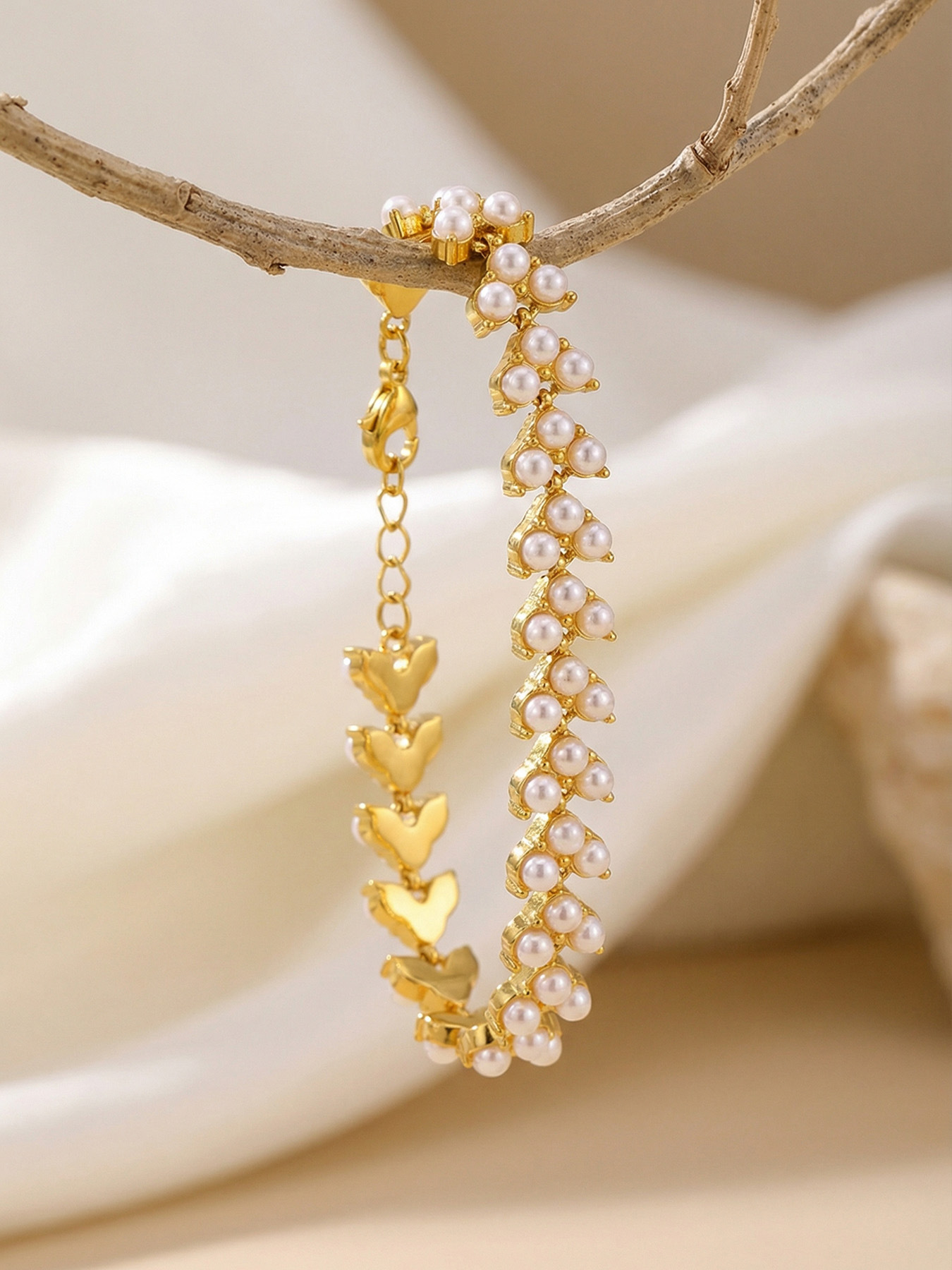 谜丽工厂直销高品质贝珠手链 欧美时尚精致麦穗设计感不锈钢手饰