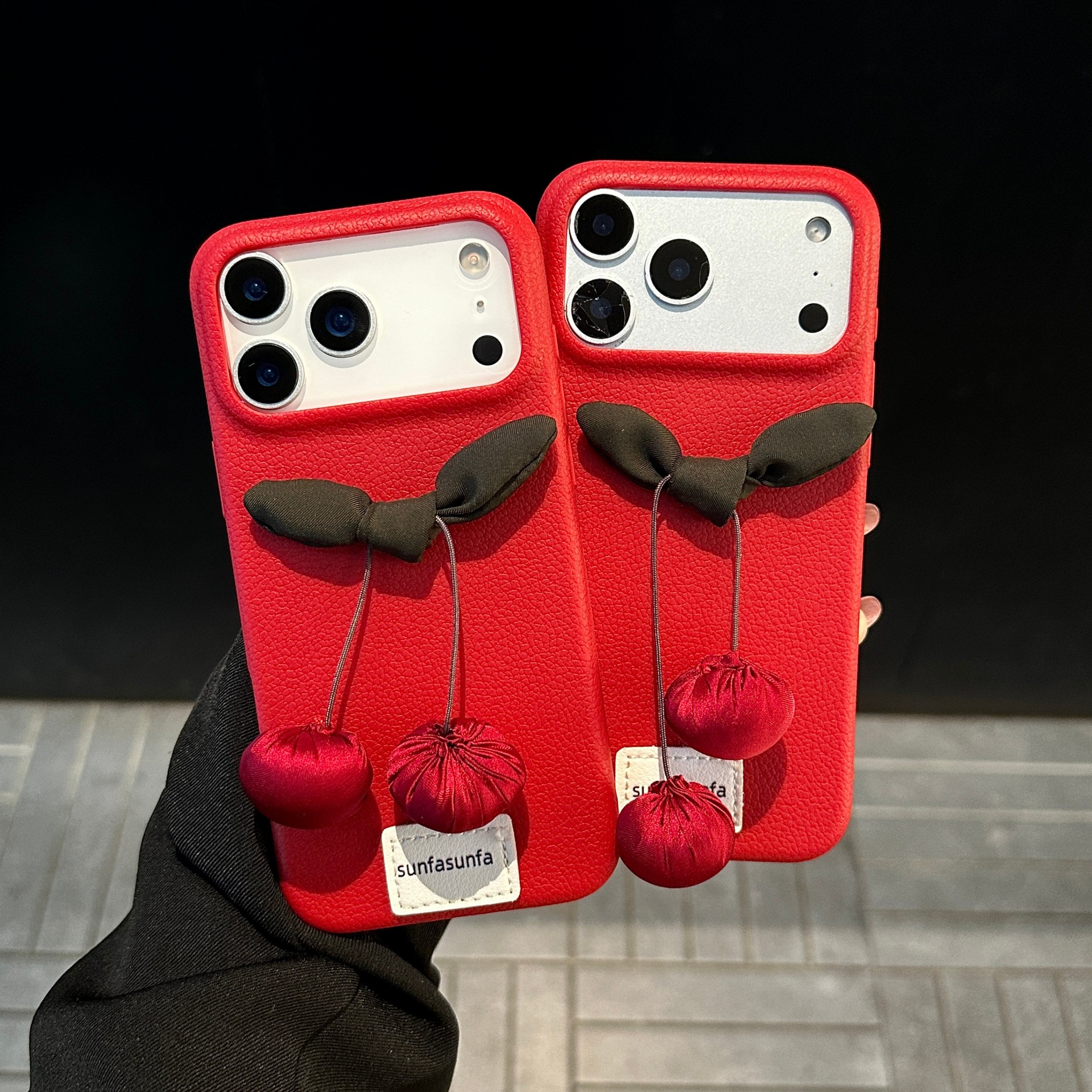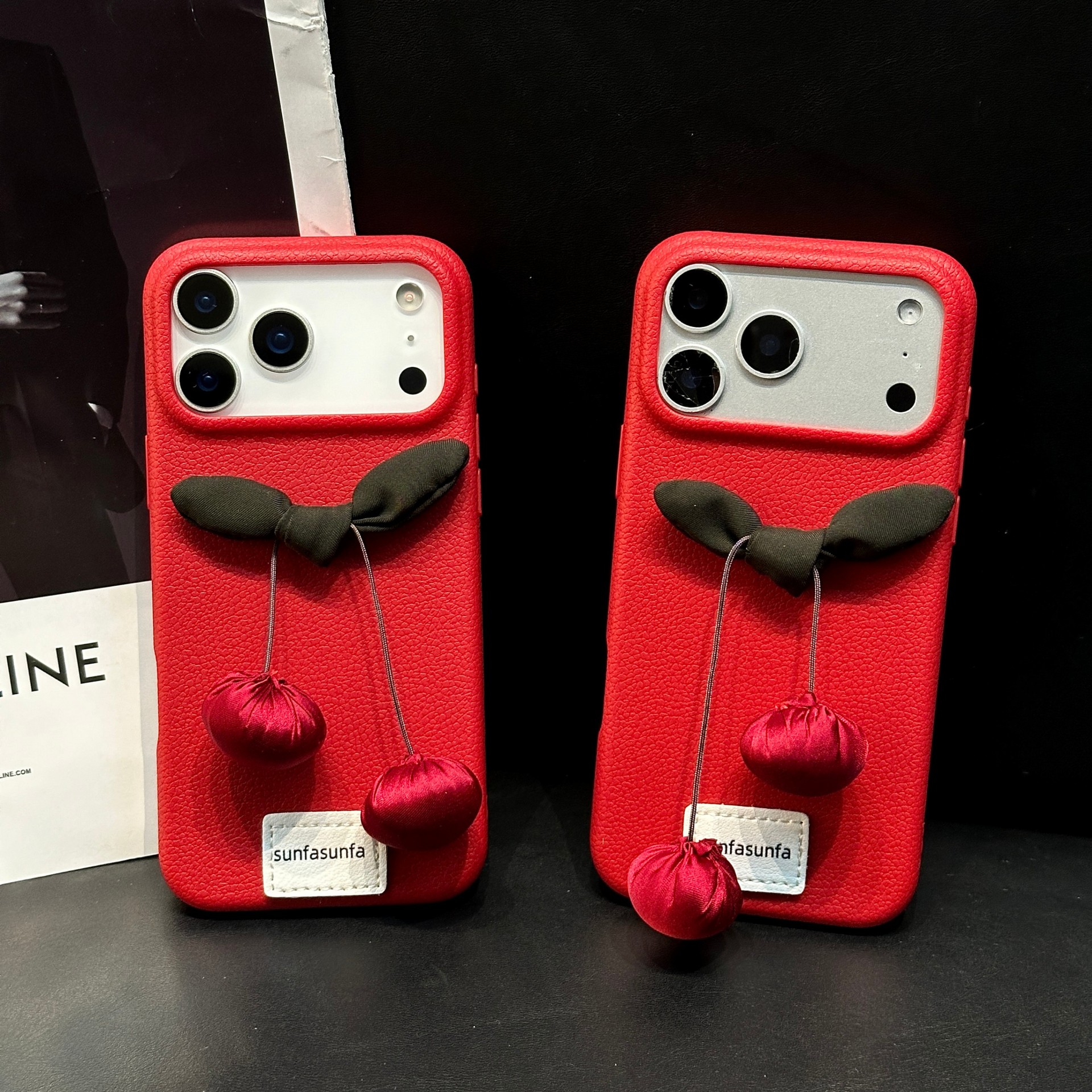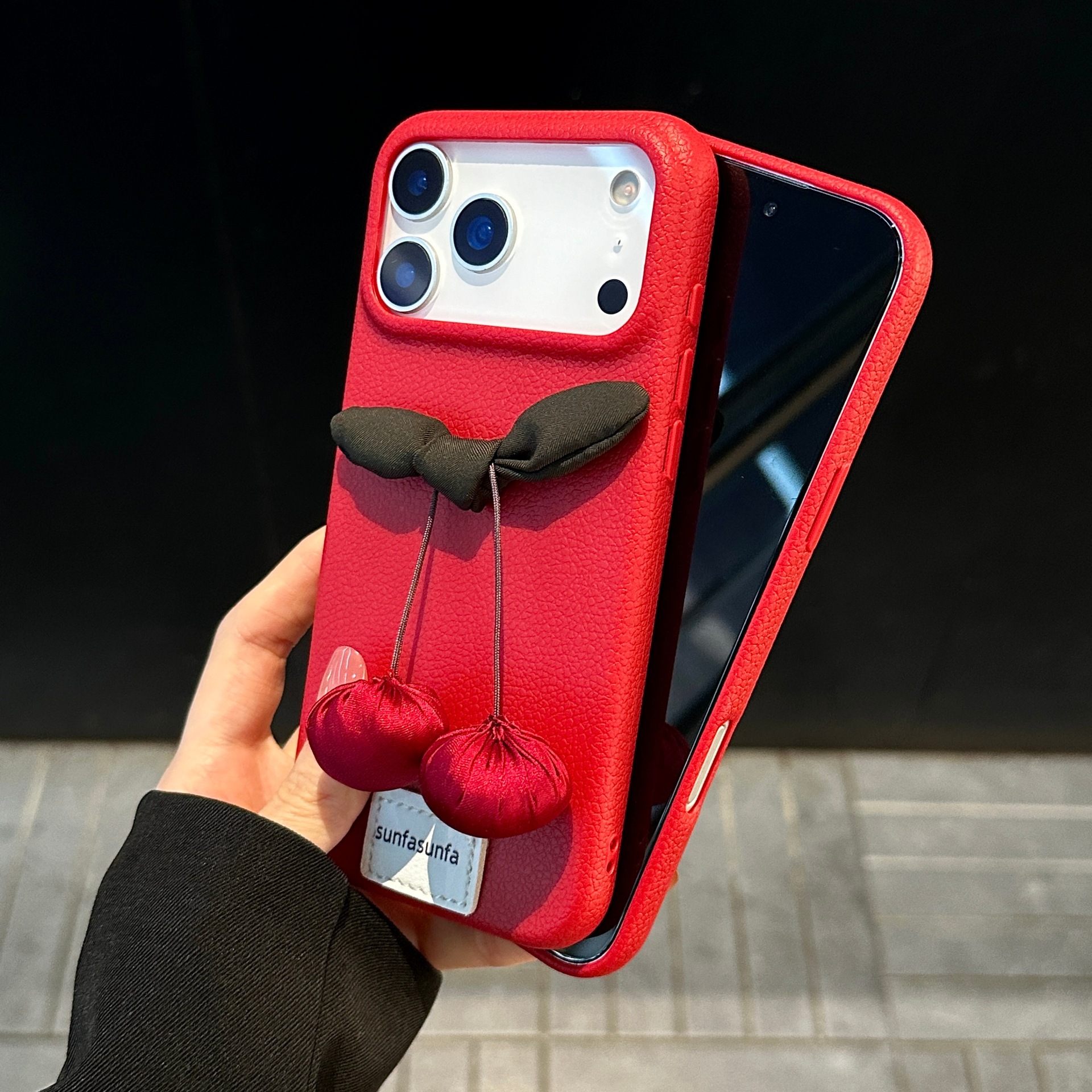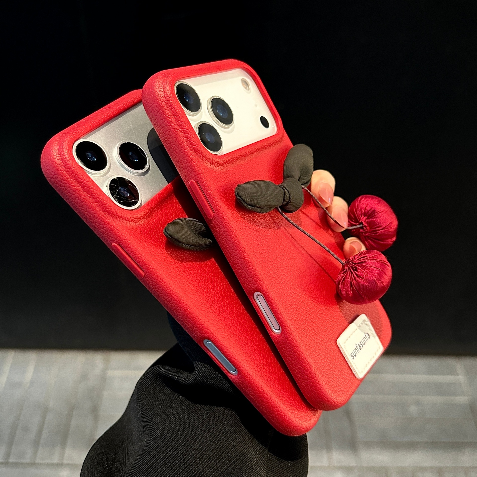 仿皮纹樱桃2026年新款过年喜庆手机壳适用于iPhone17pro/air