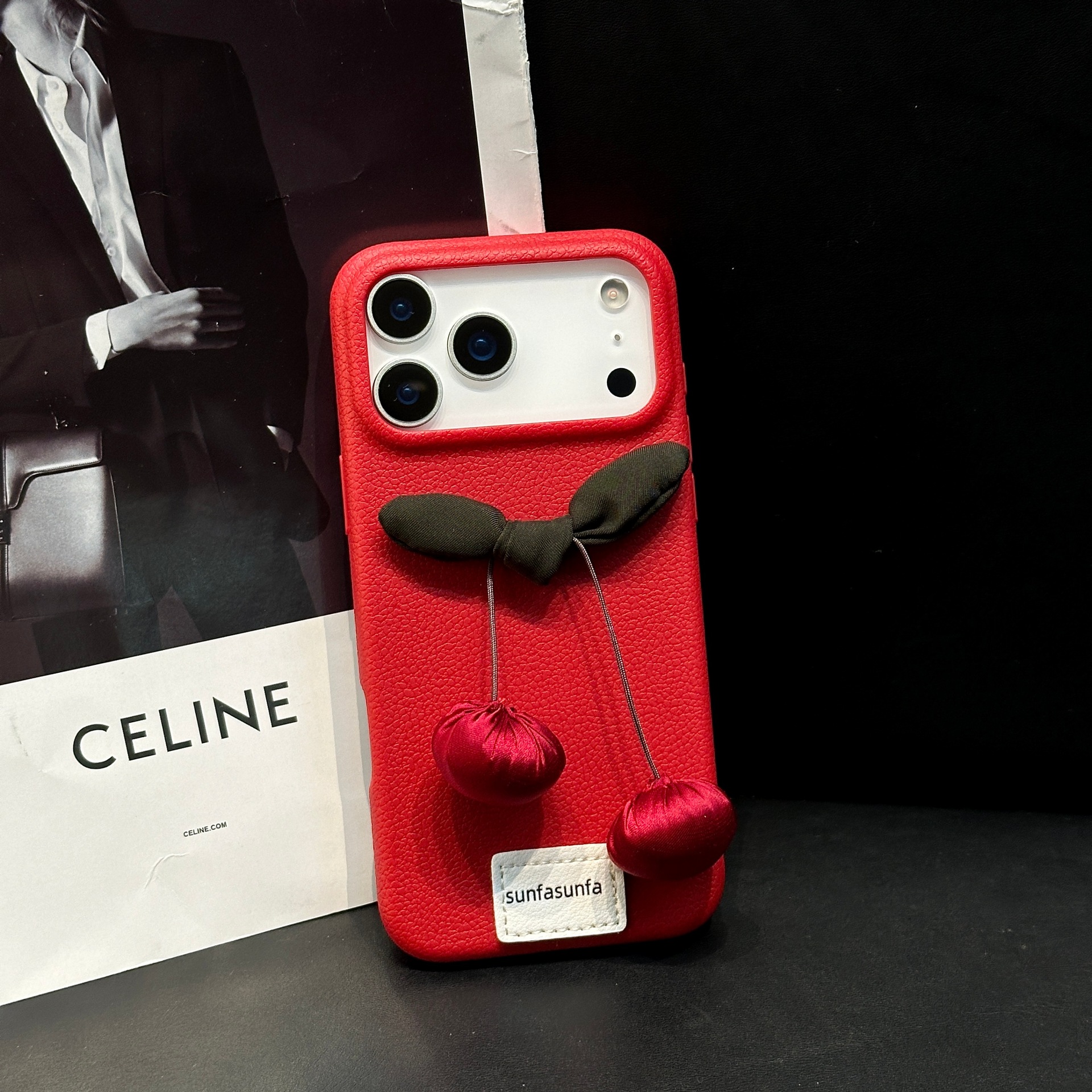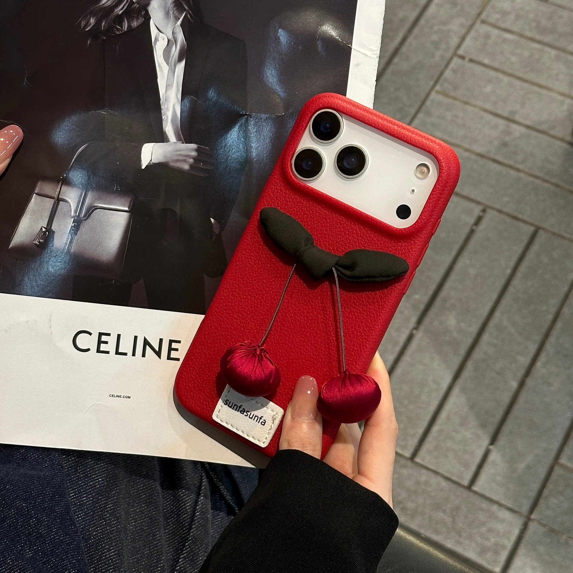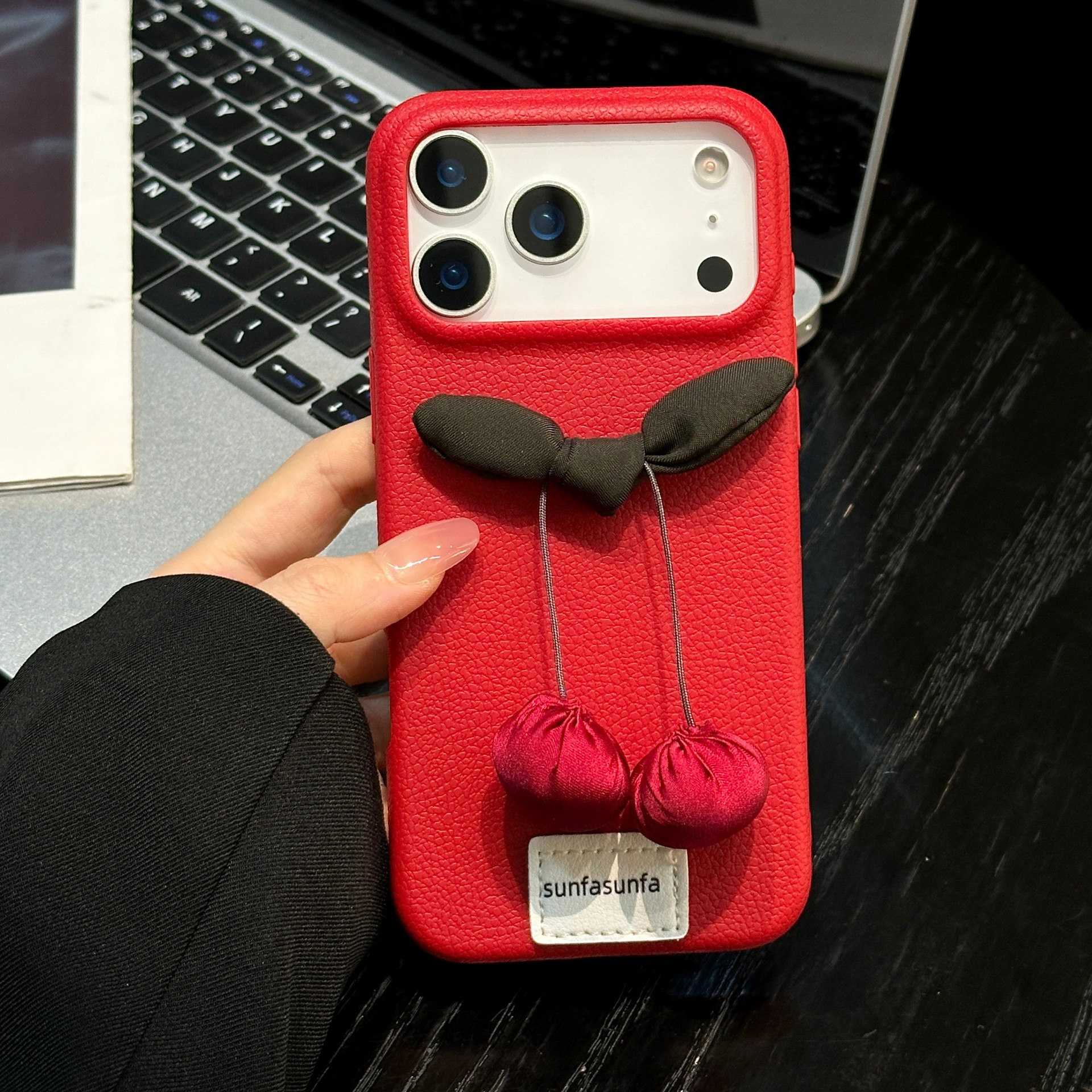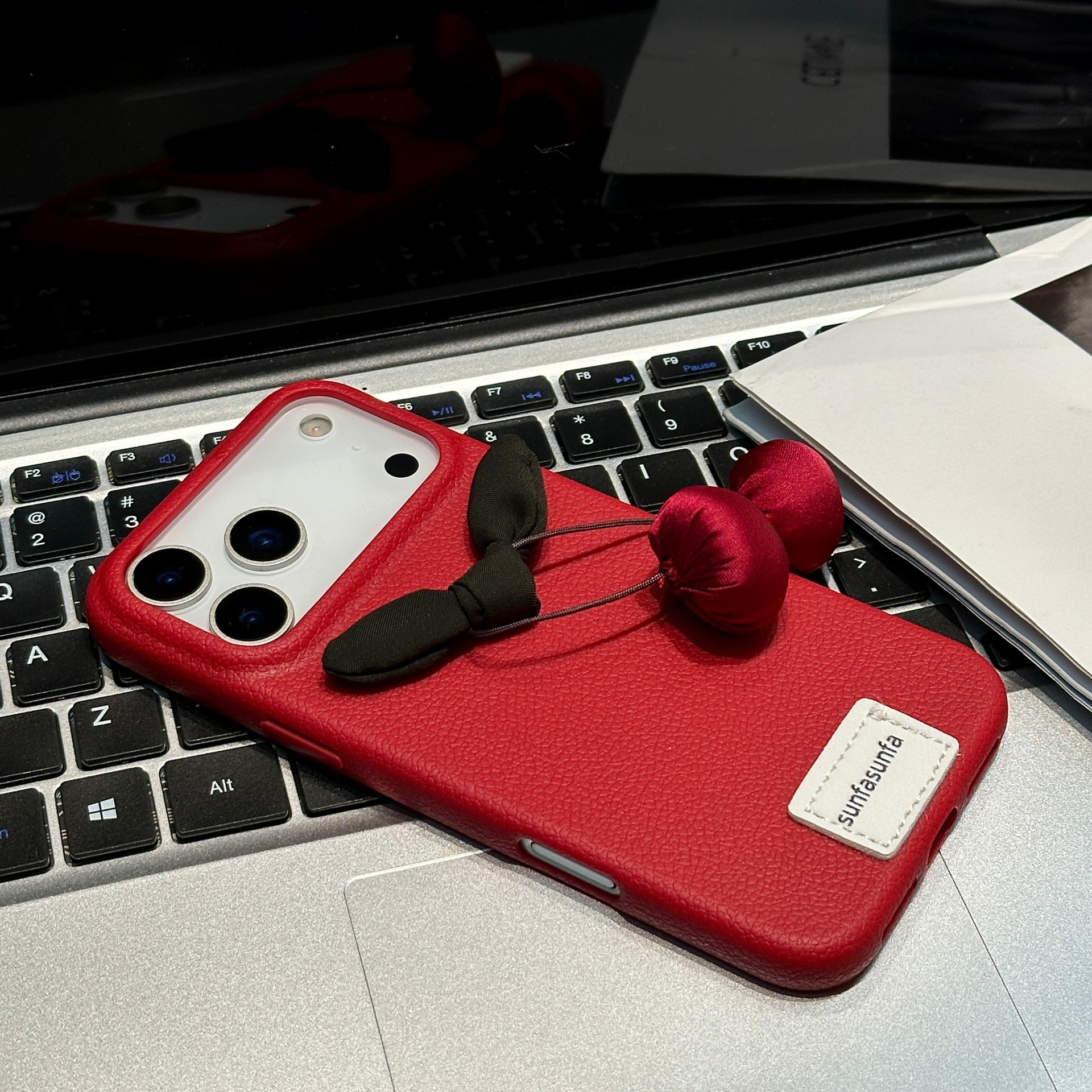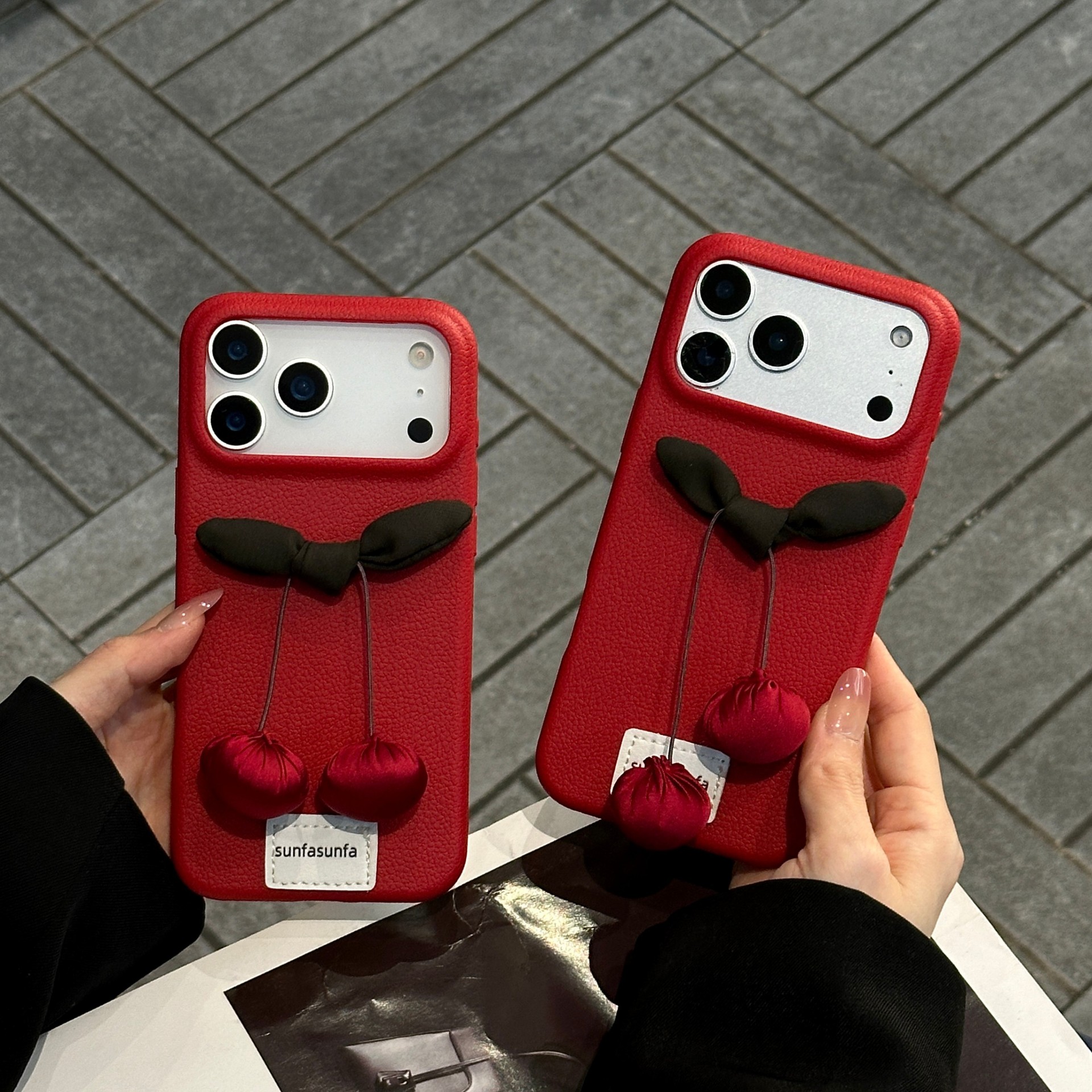 仿皮纹樱桃2026年新款过年喜庆手机壳适用于iPhone17pro/air