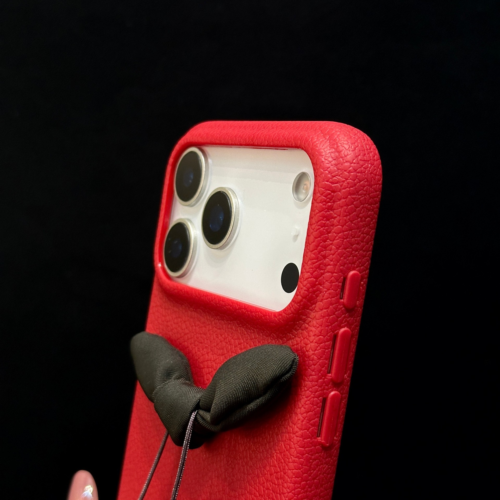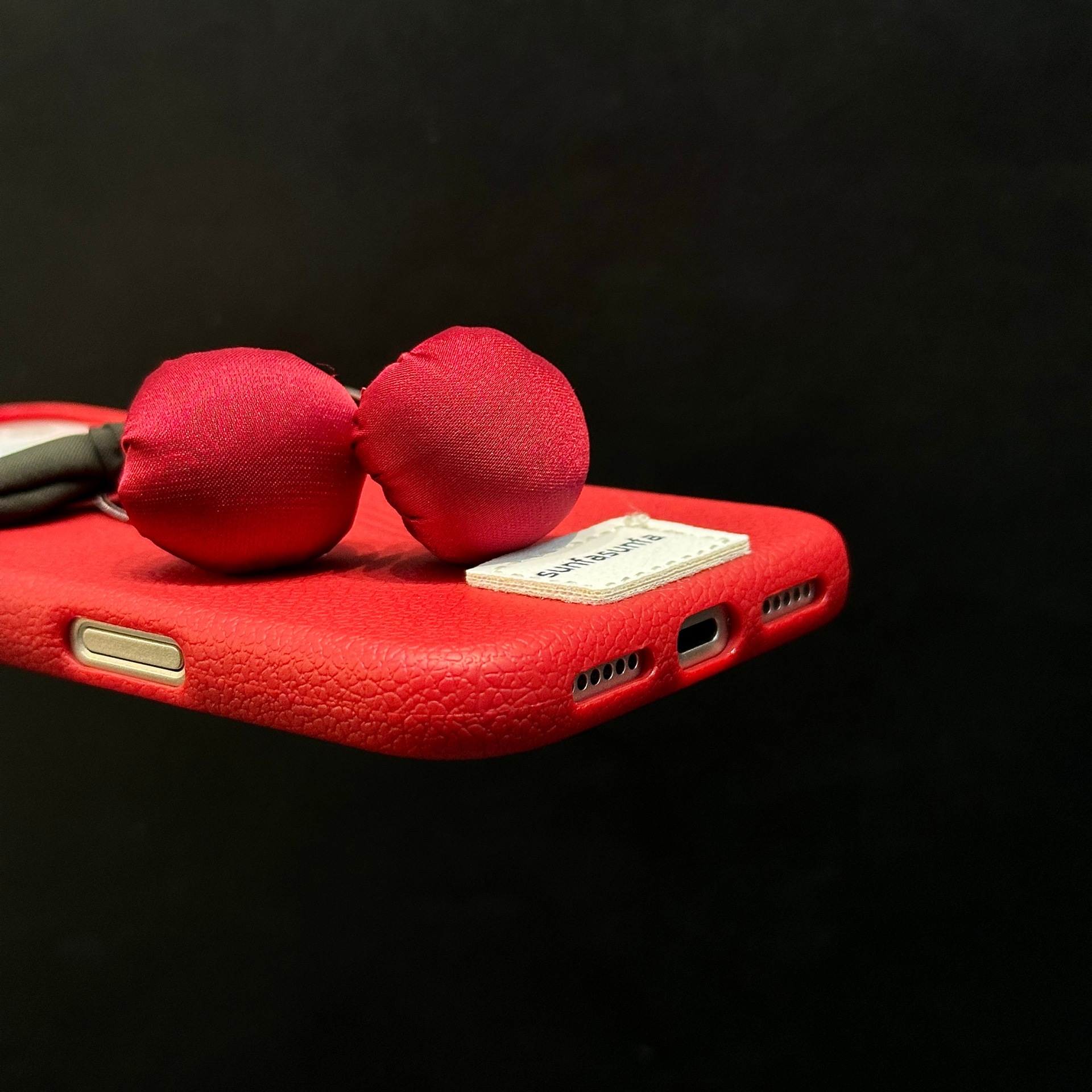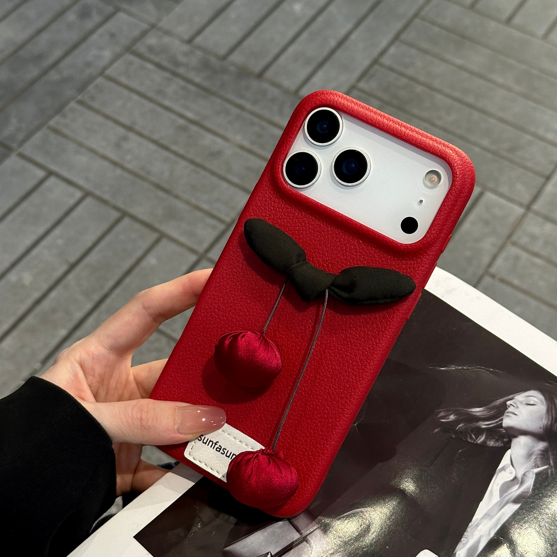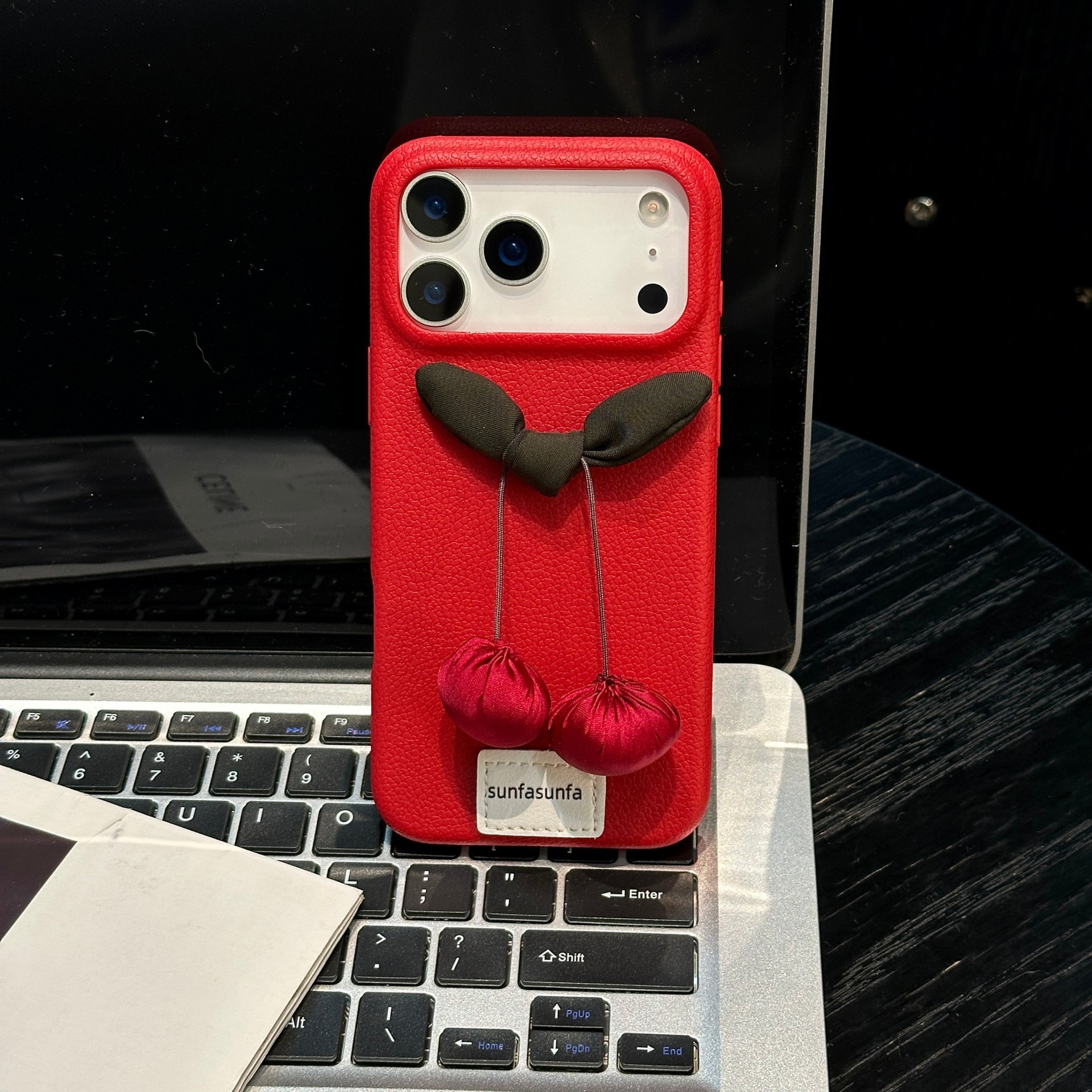 仿皮纹樱桃2026年新款过年喜庆手机壳适用于iPhone17pro/air