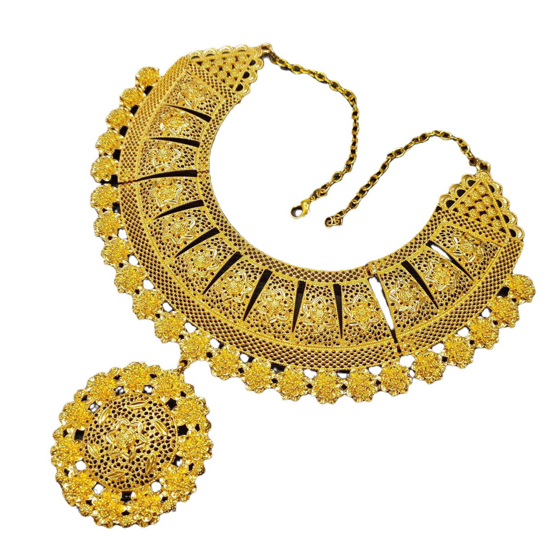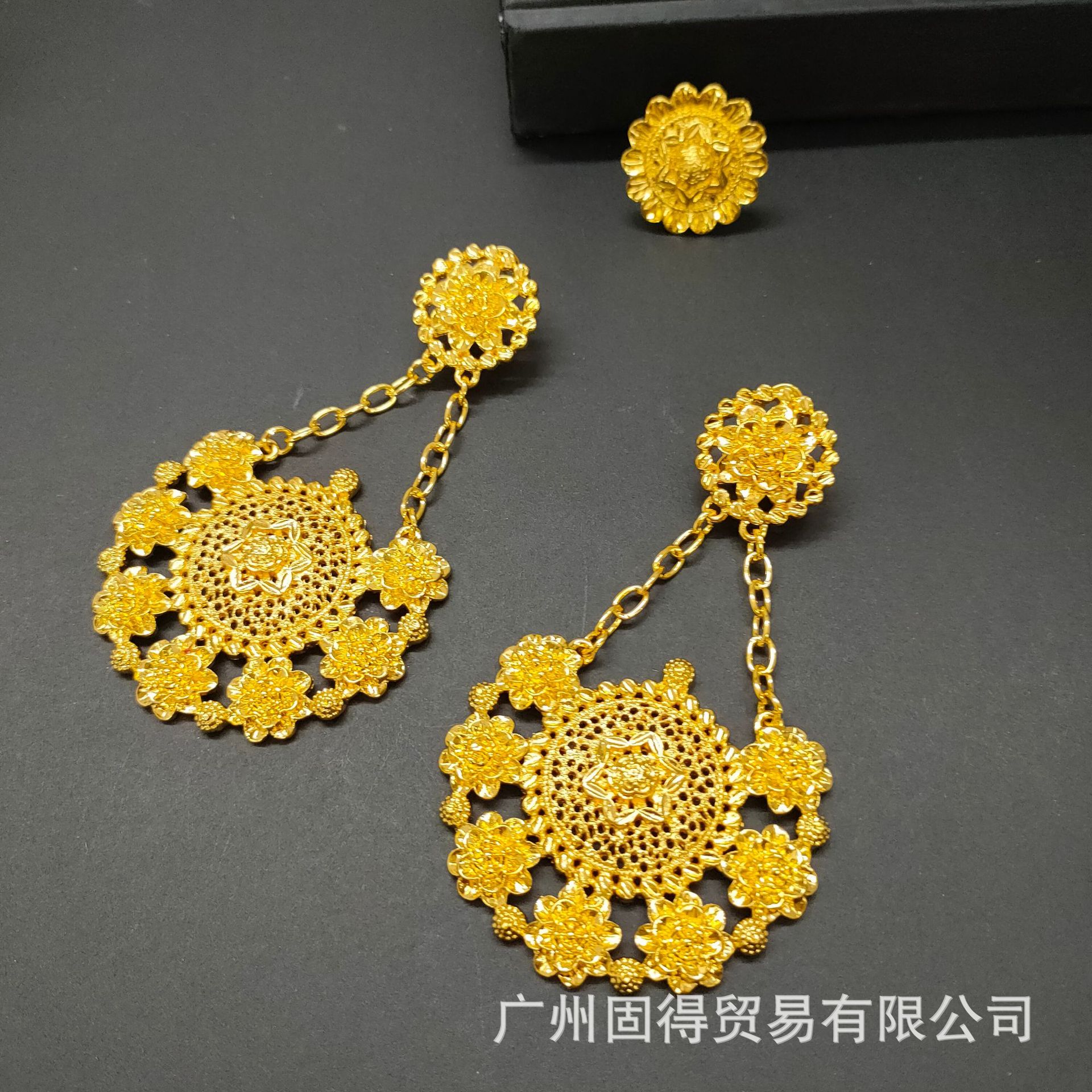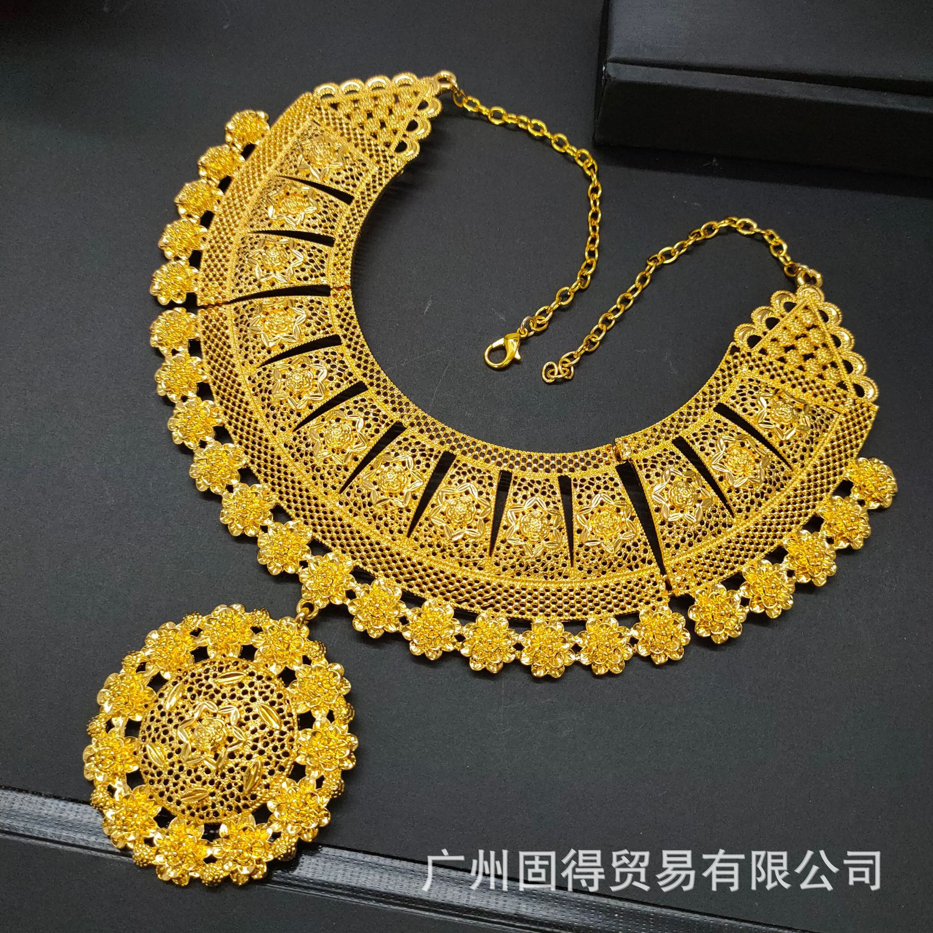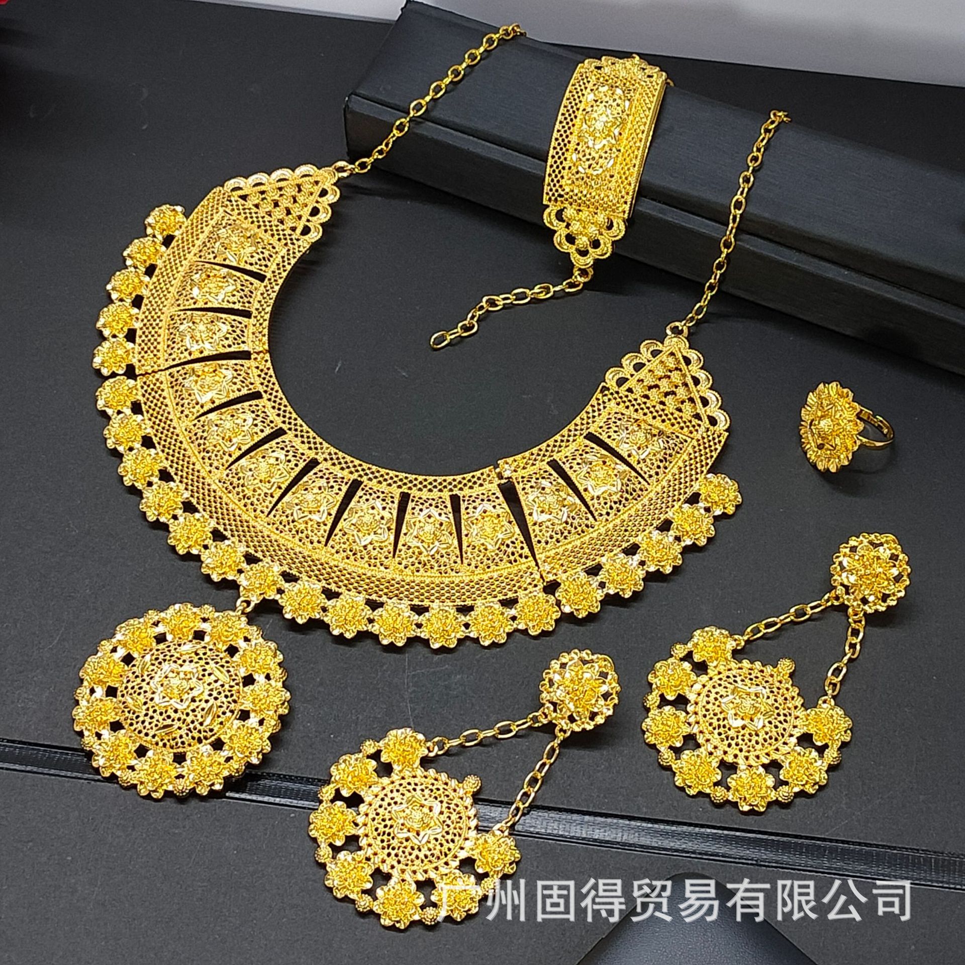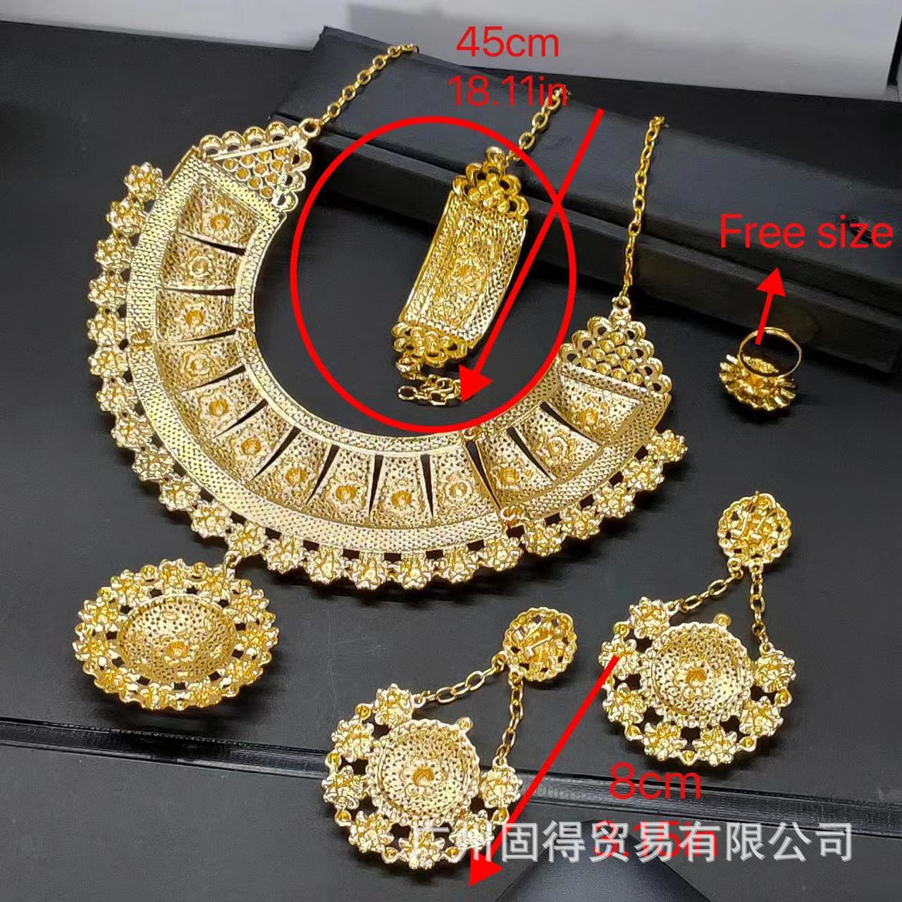 24k镀金夸张大版合金首饰套装项链耳环手链戒指女结婚首饰四件套