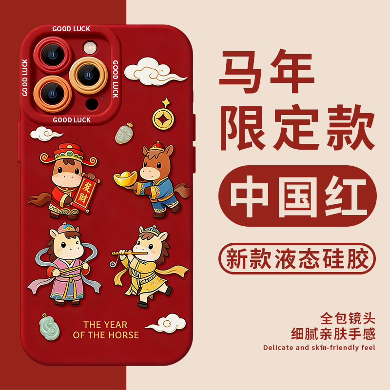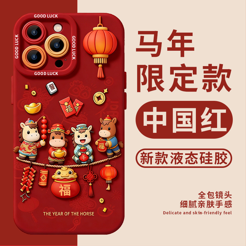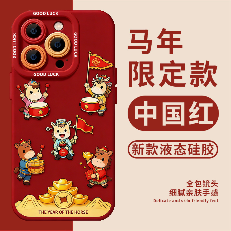 马年适用苹果17promax手机壳16新款16pro硅胶air带挂绳15全包2026
