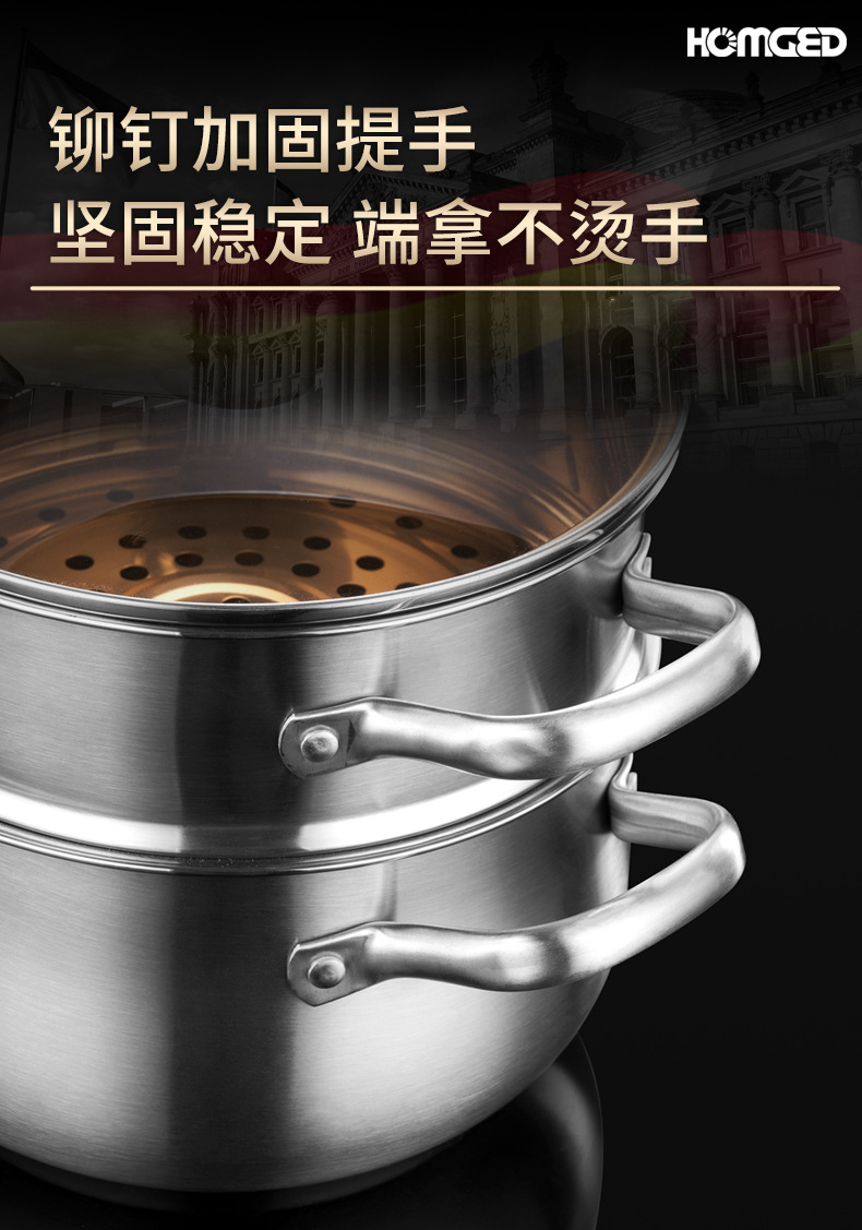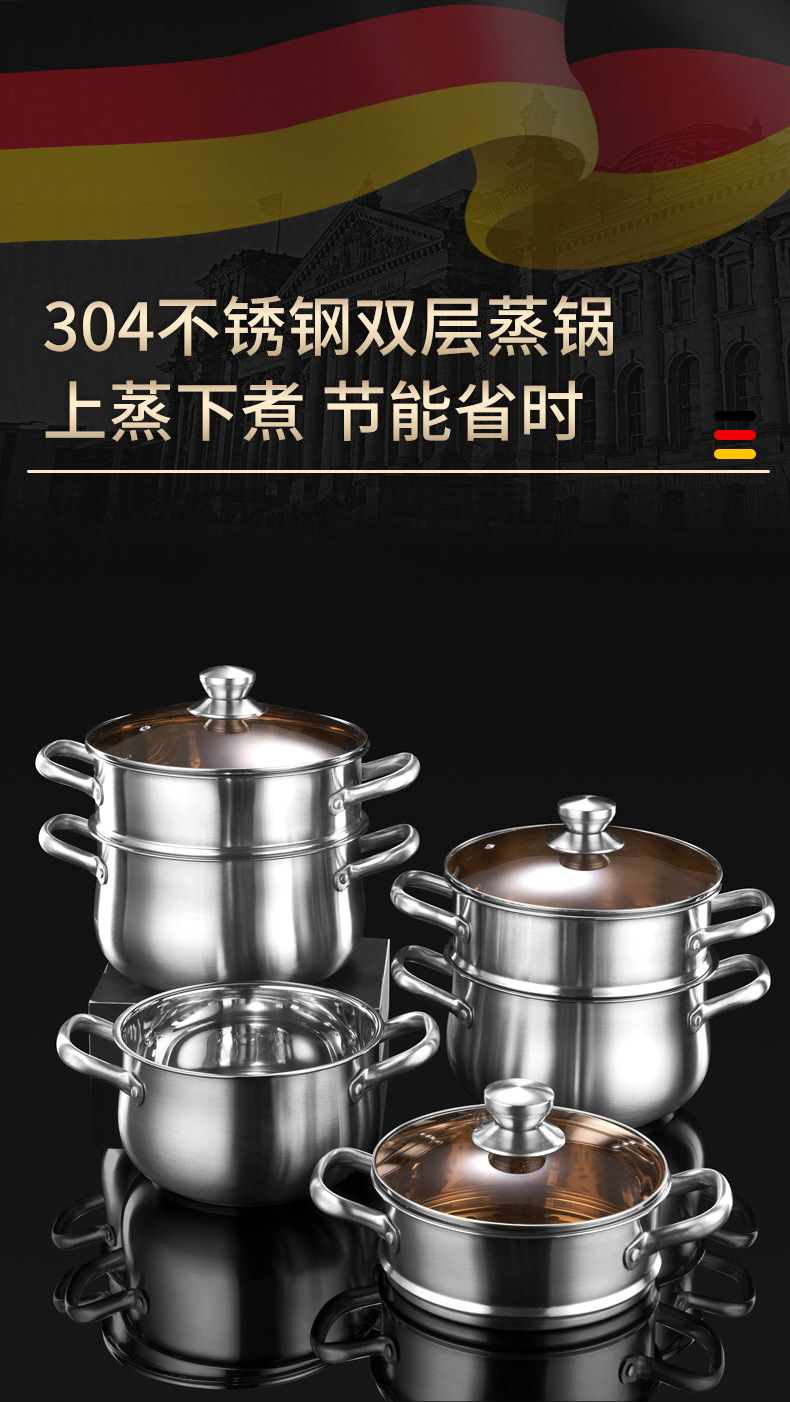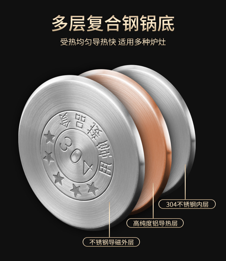 鸿俊达304不锈钢汤锅加厚复底锅无涂层蒸锅电磁炉通用锅具耐高温