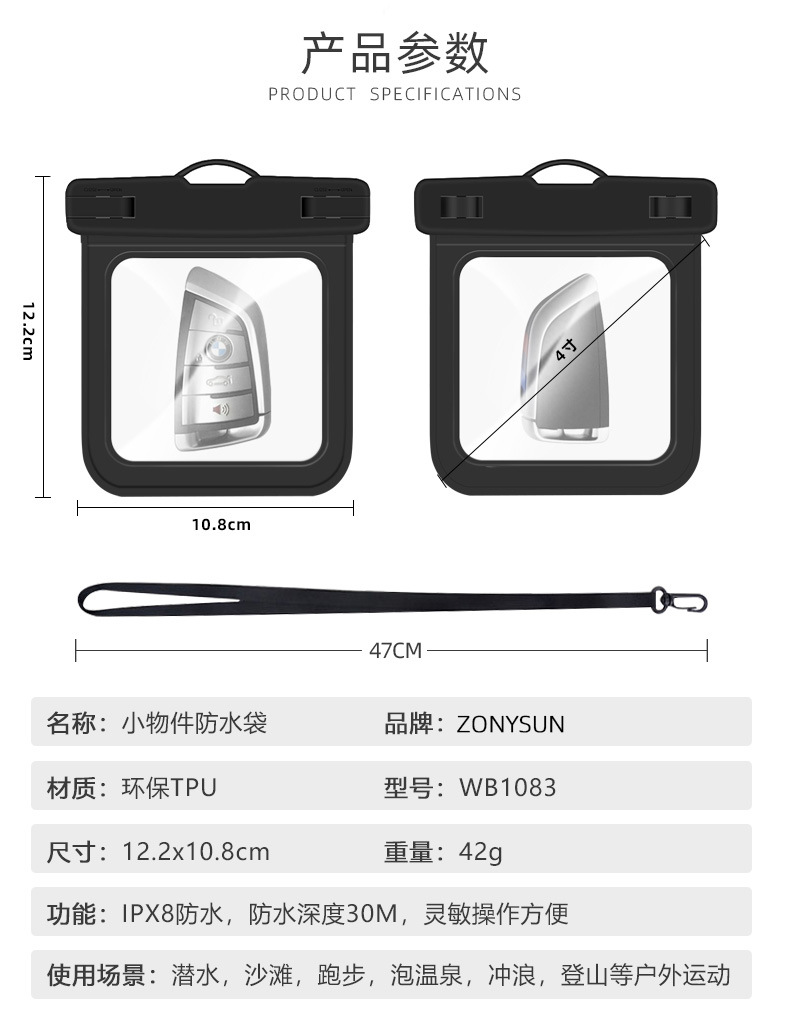 跨境爆款车钥匙防水袋防水钥匙钱包信用卡袋小物件防水袋批发