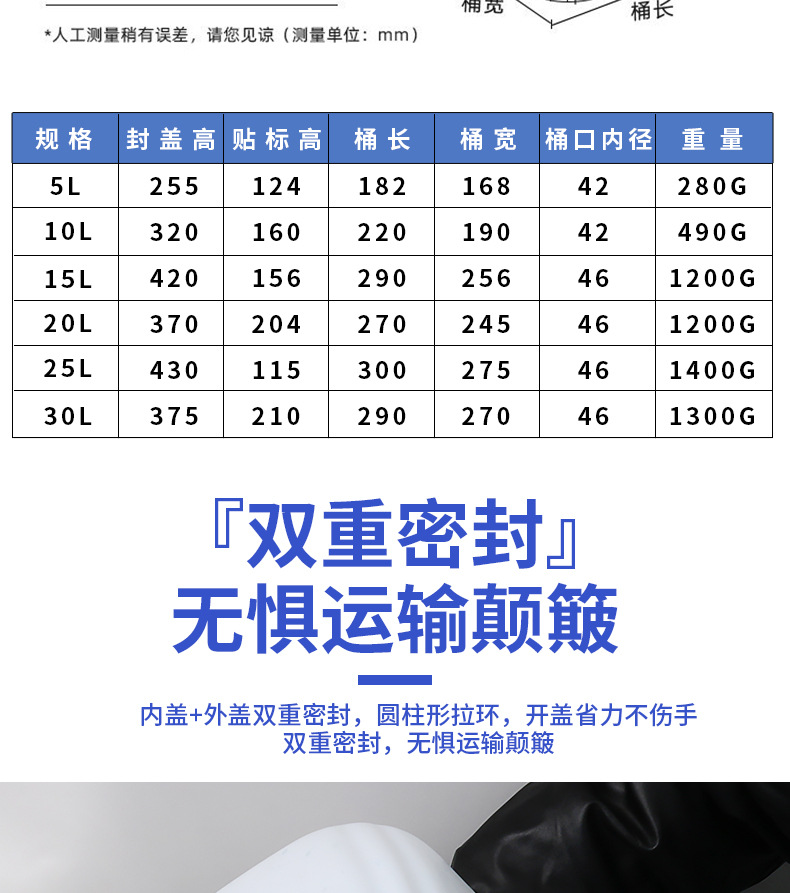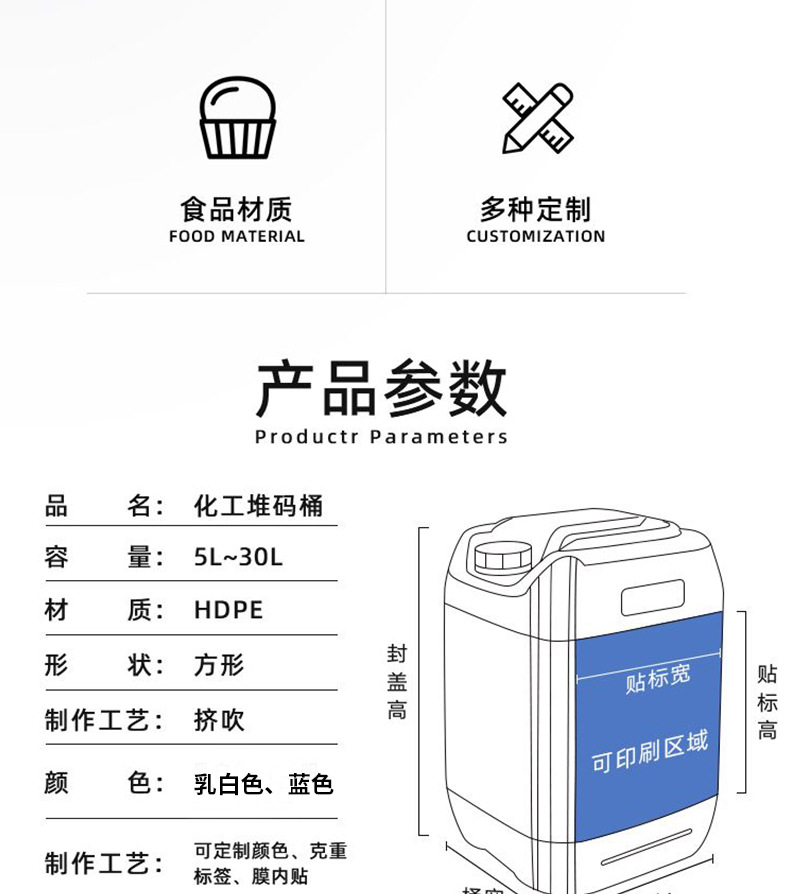 食品级堆码桶加厚化工桶25升30升10升方形塑料油桶废液化工包装桶