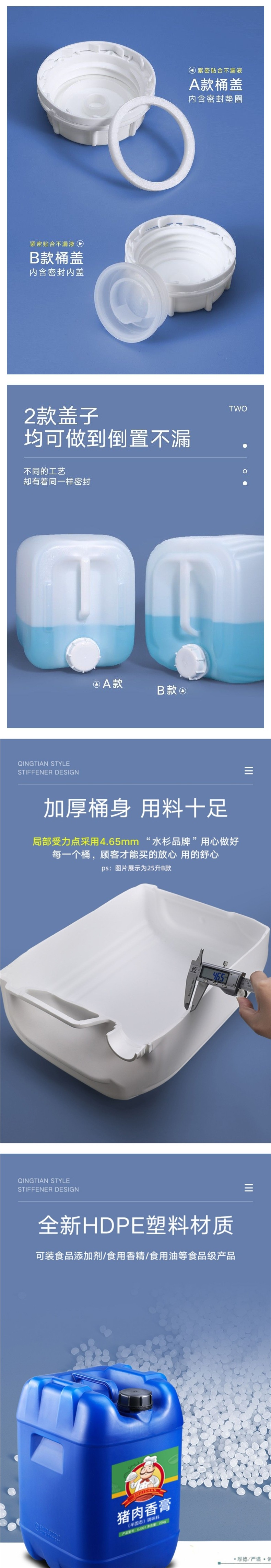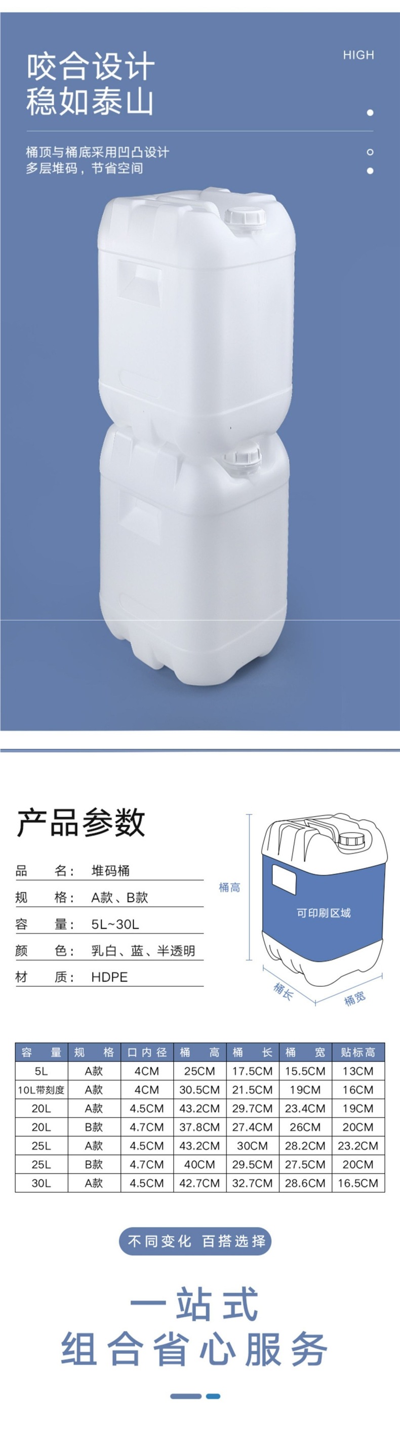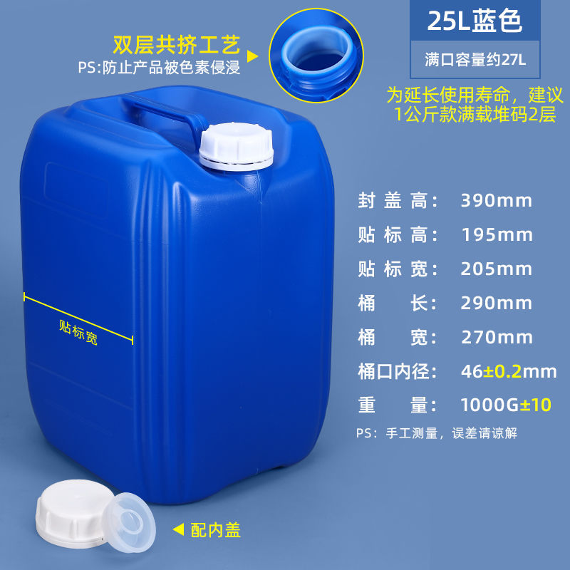 加厚耐酸碱塑料桶化工桶堆码方形密封25升KG储水大桶带盖