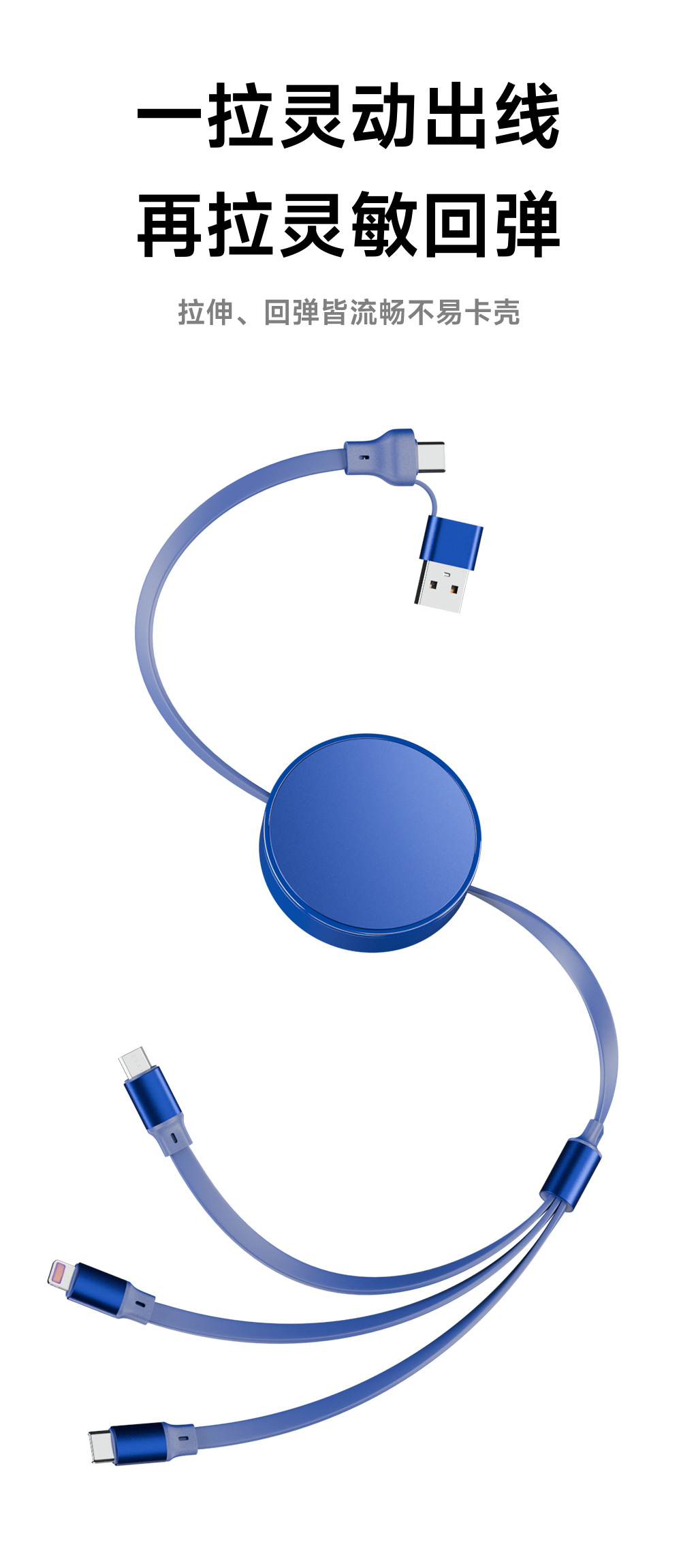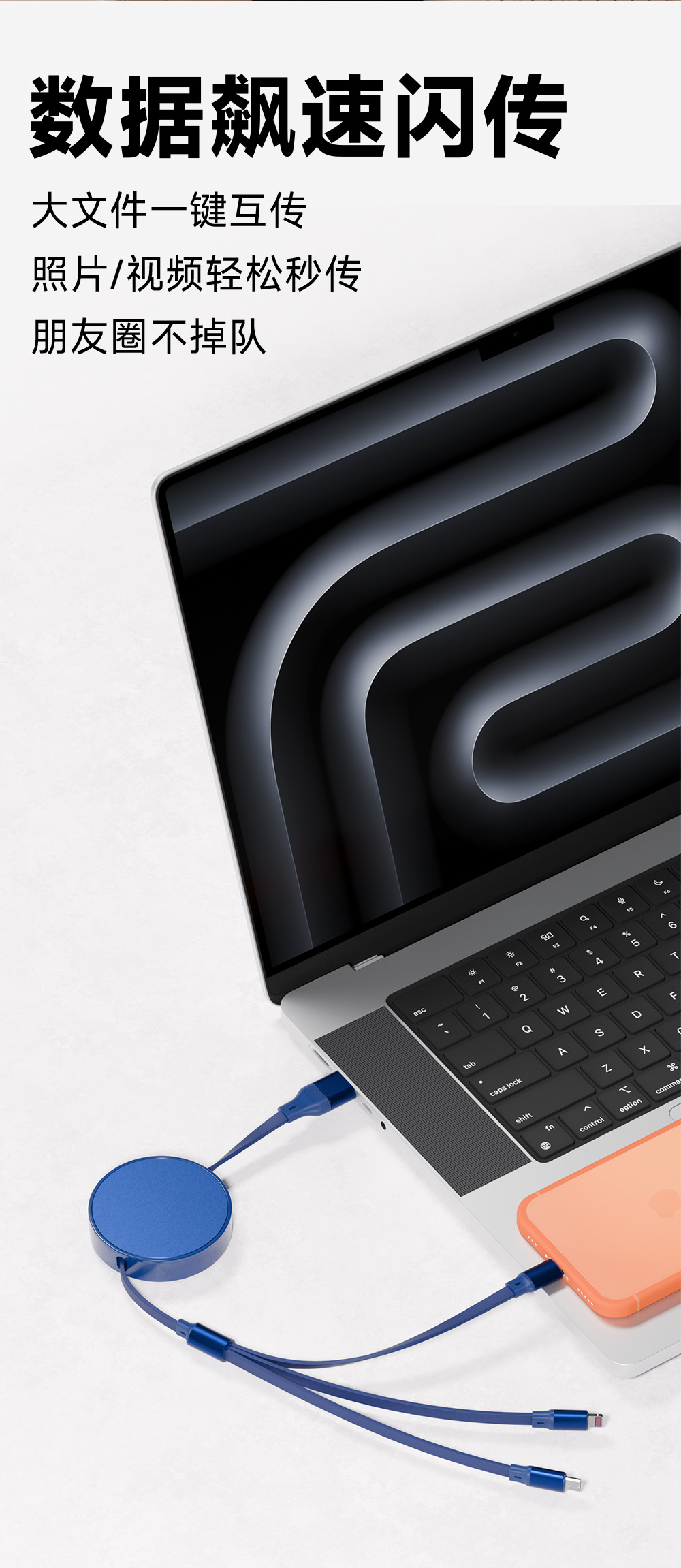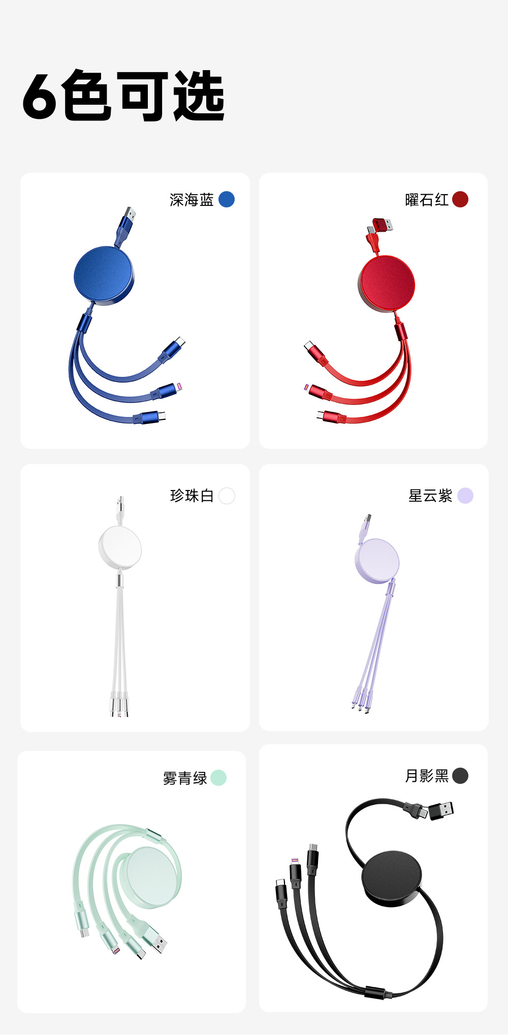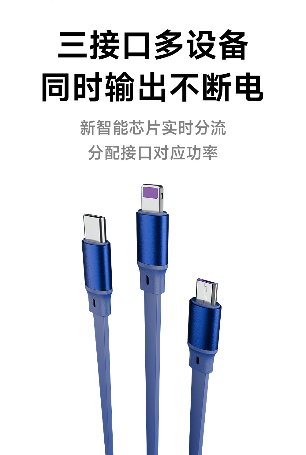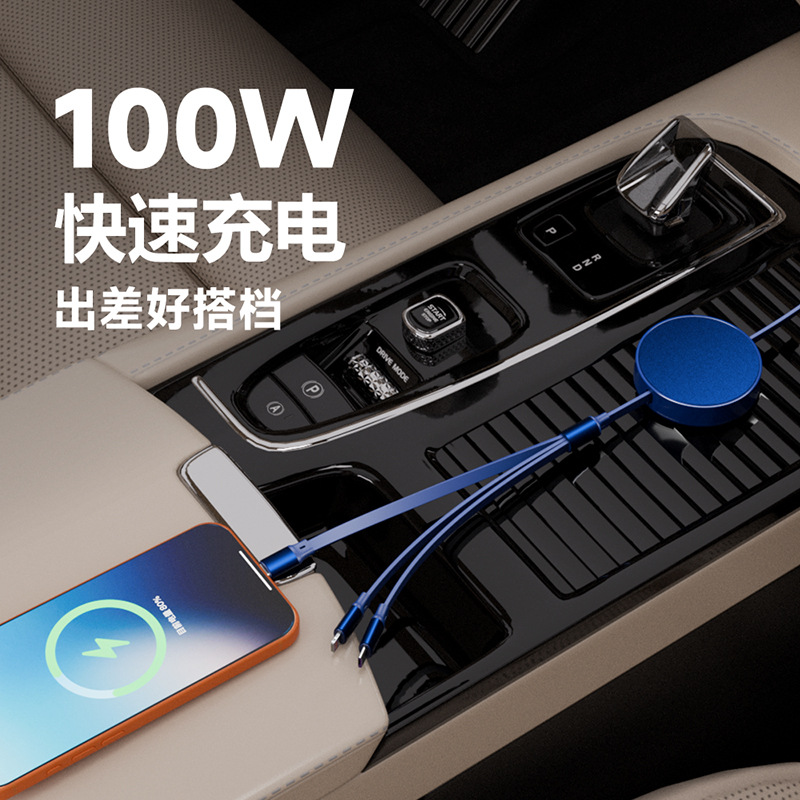 100W快充二拖三数据线USB转type-c多功能充电线三合一数据线定制