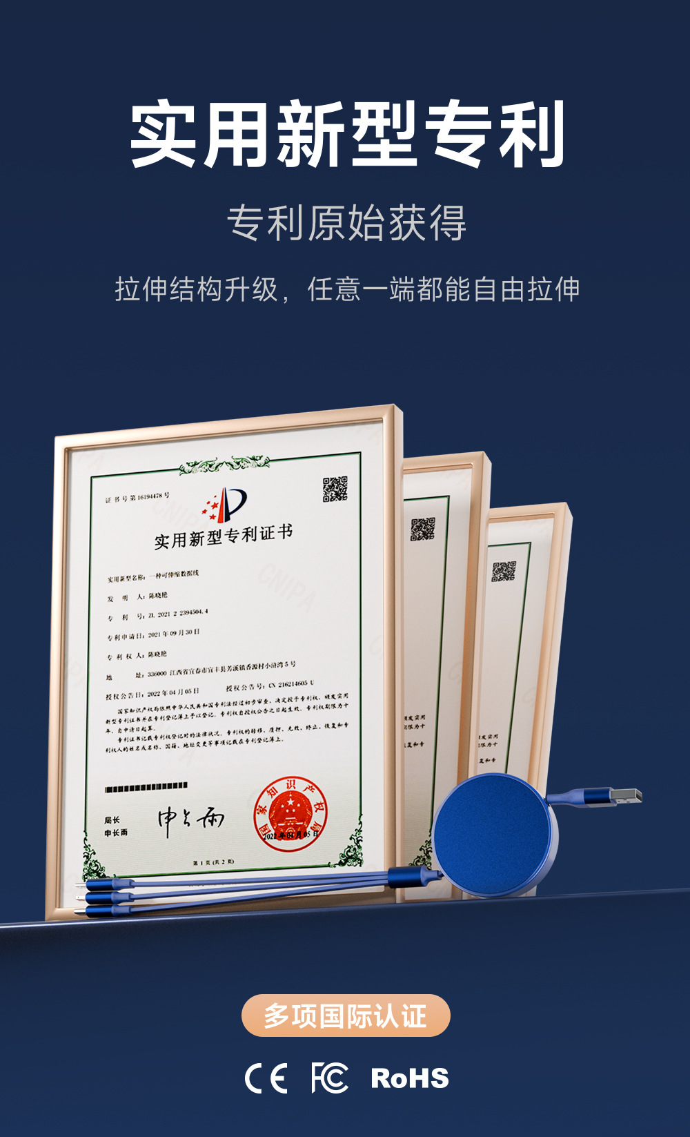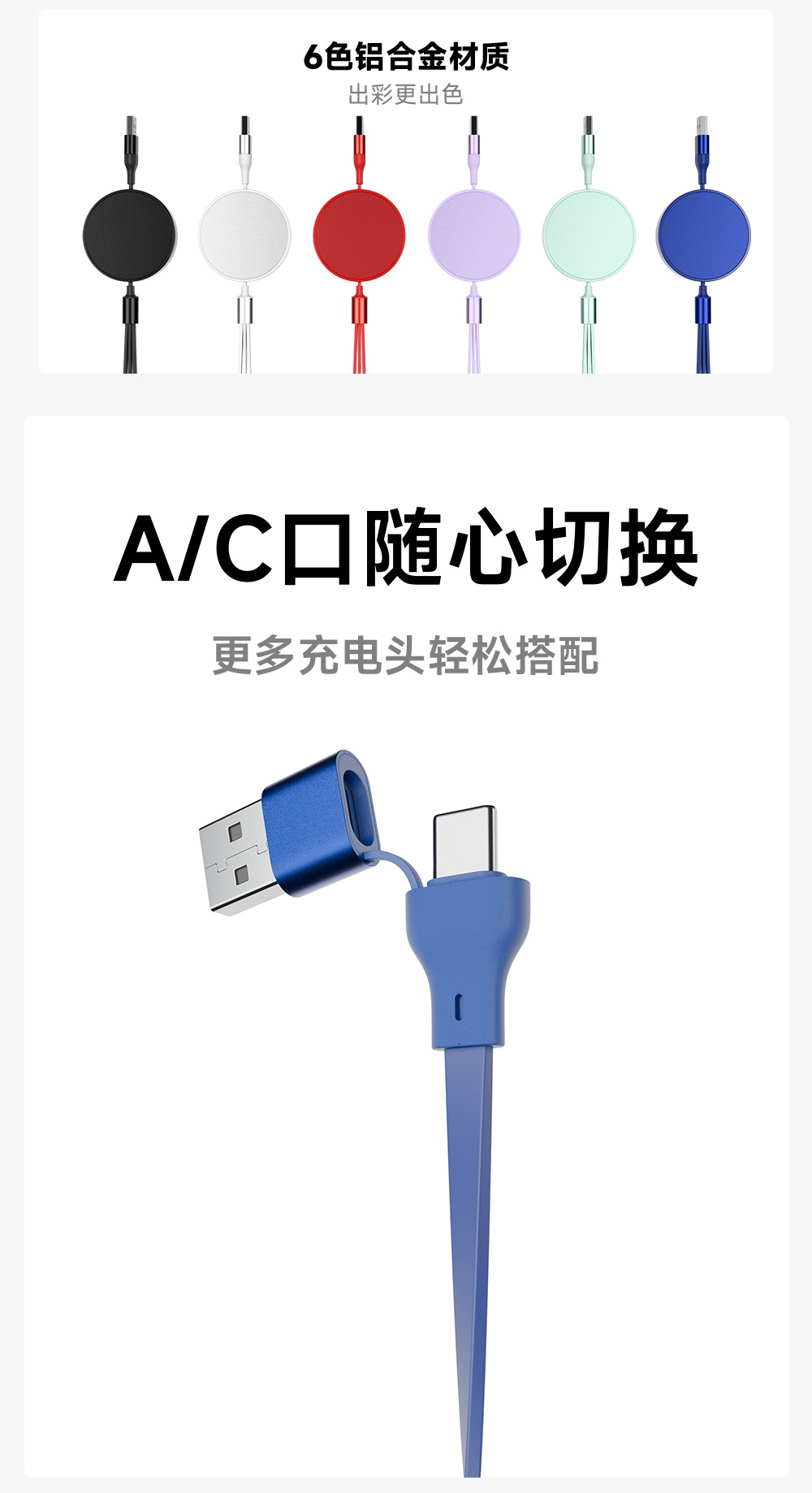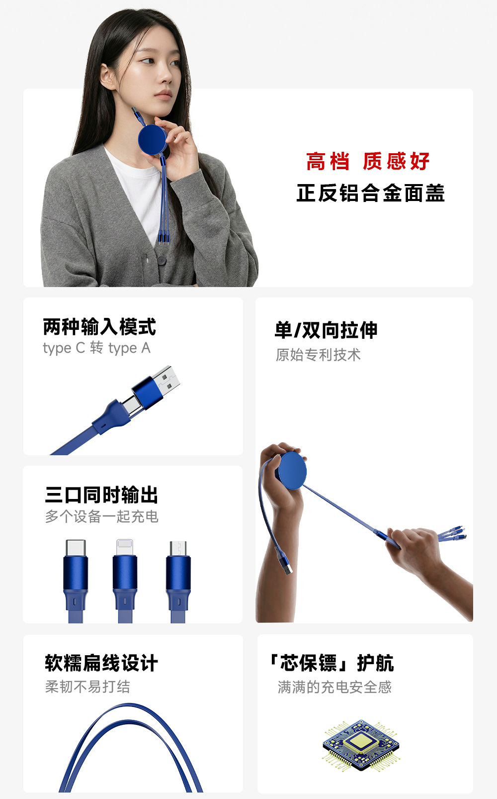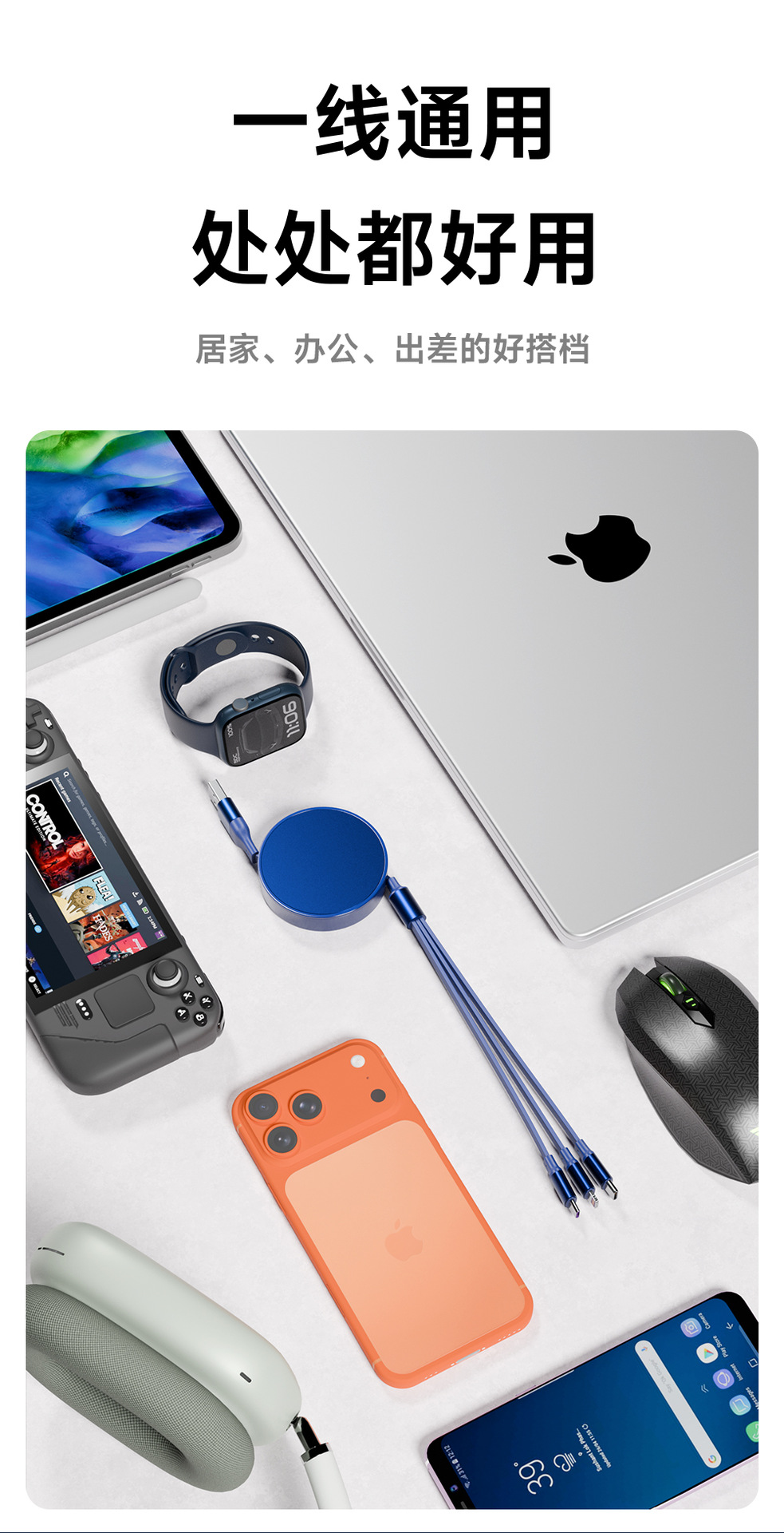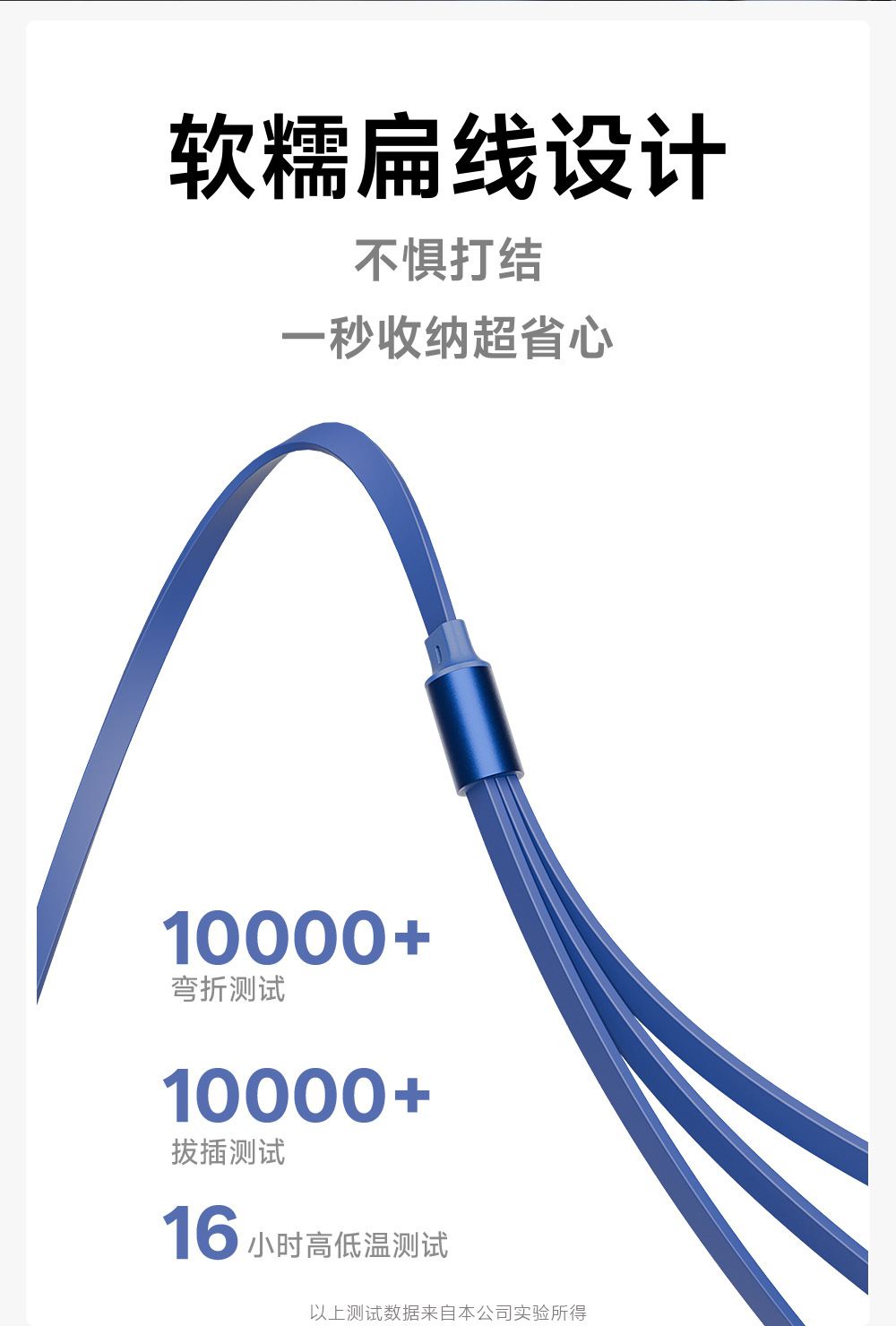 100W快充二拖三数据线USB转type-c多功能充电线三合一数据线定制