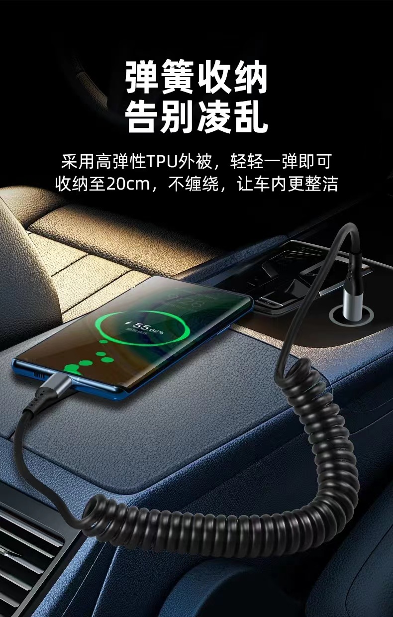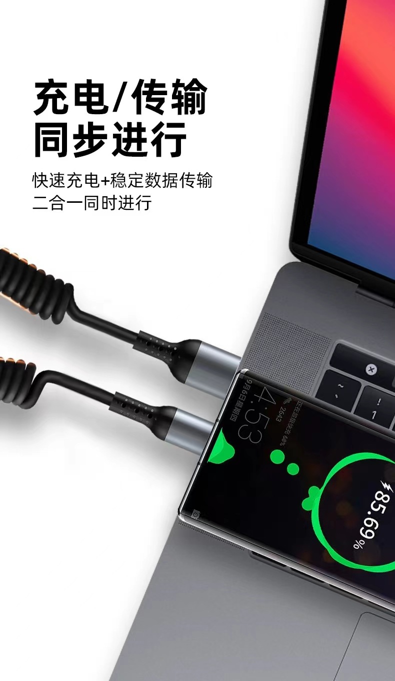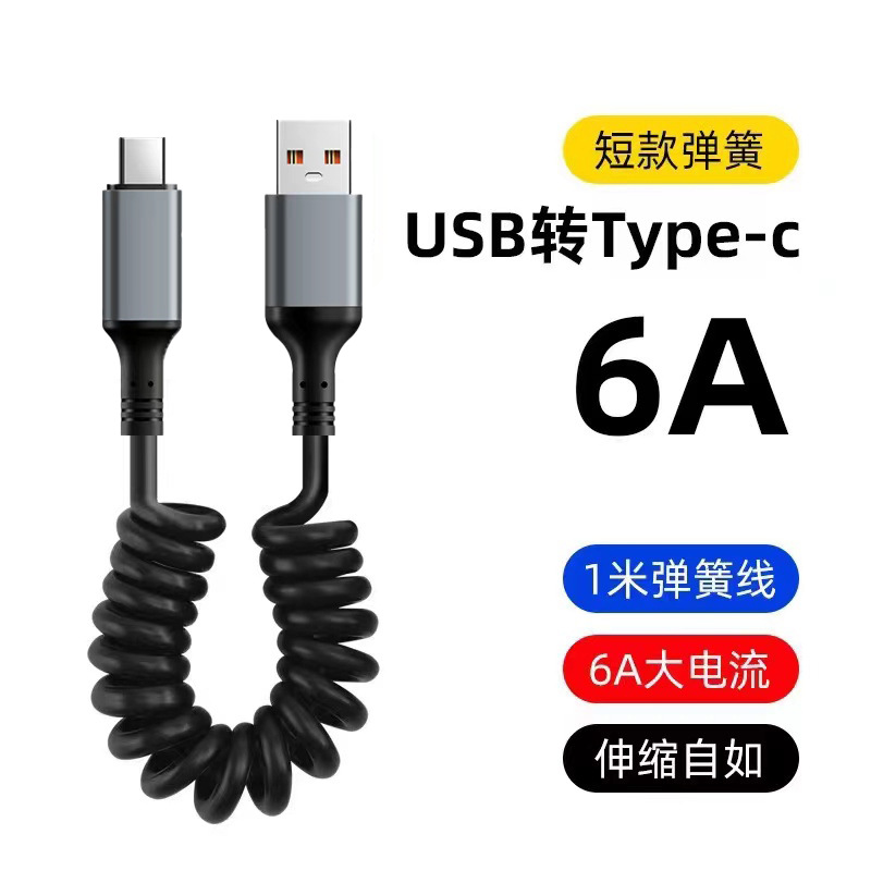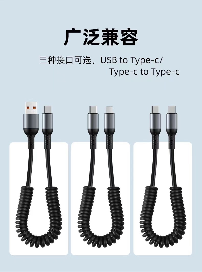 6a弹簧120w超级快充数据线适用苹果华为荣耀双Type-c闪充电线车载