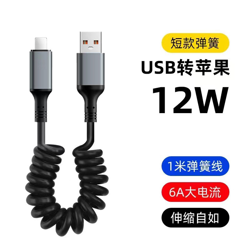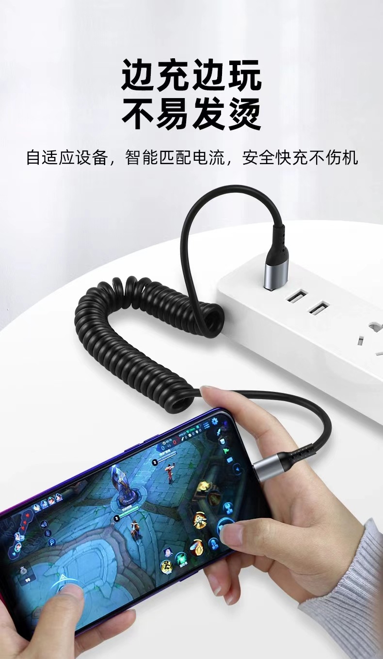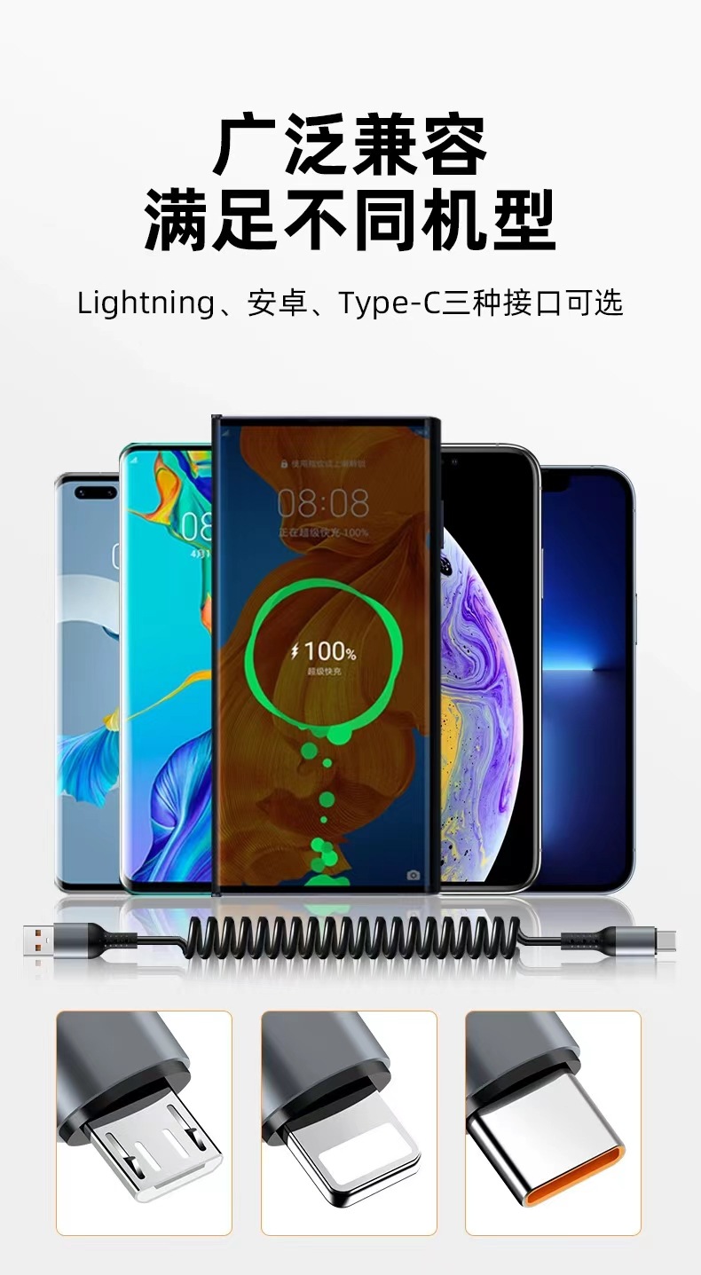 6a弹簧120w超级快充数据线适用苹果华为荣耀双Type-c闪充电线车载