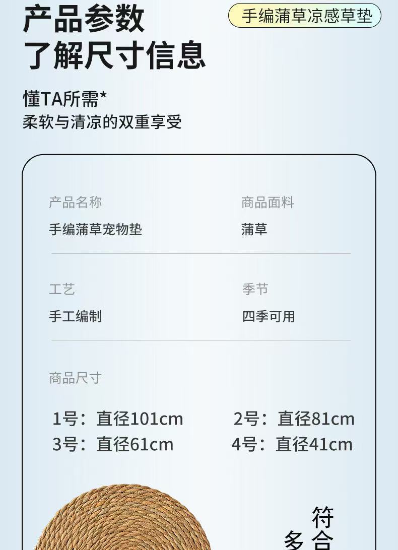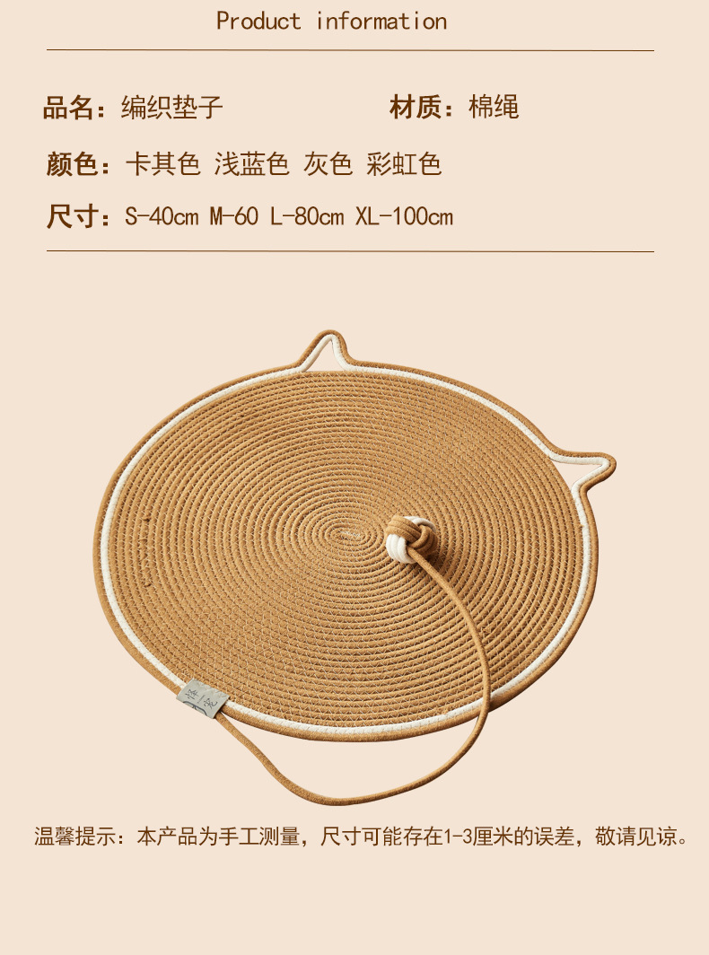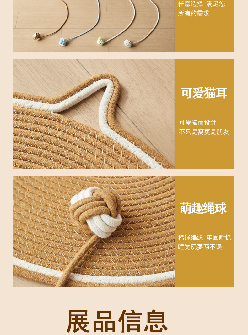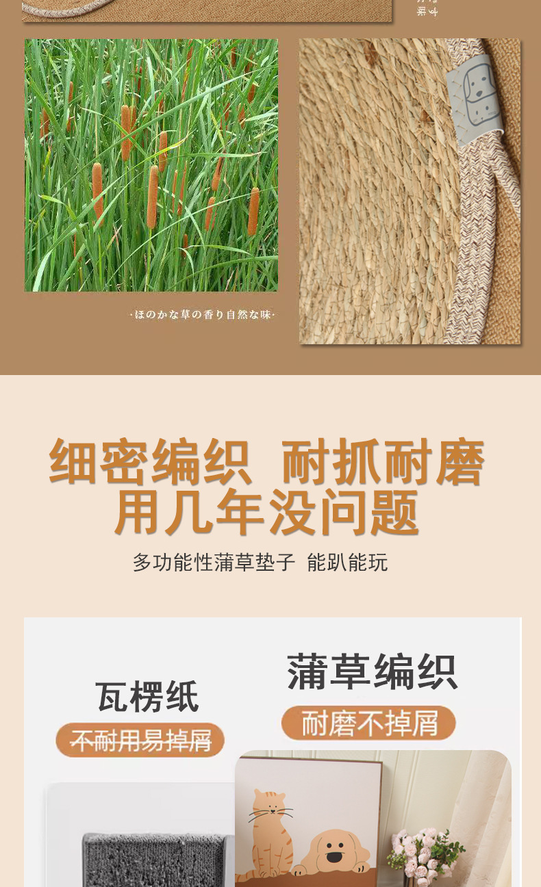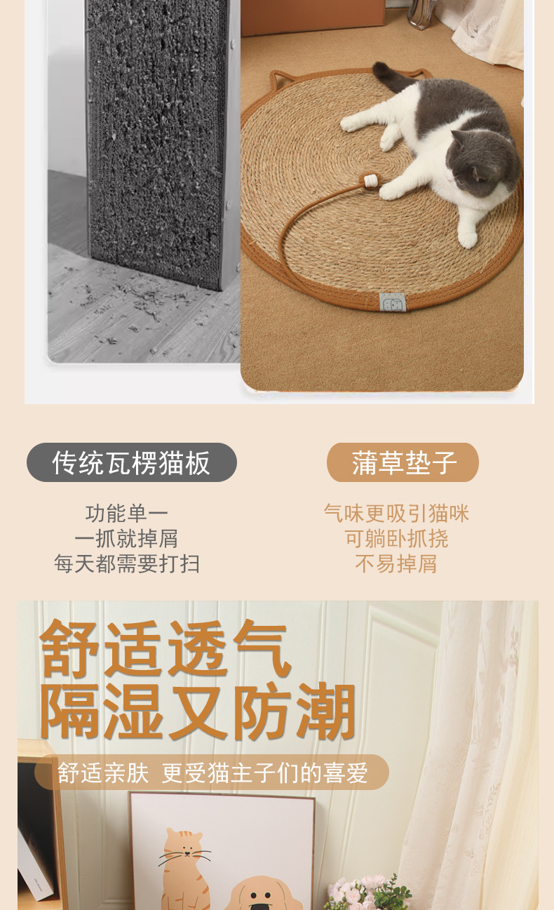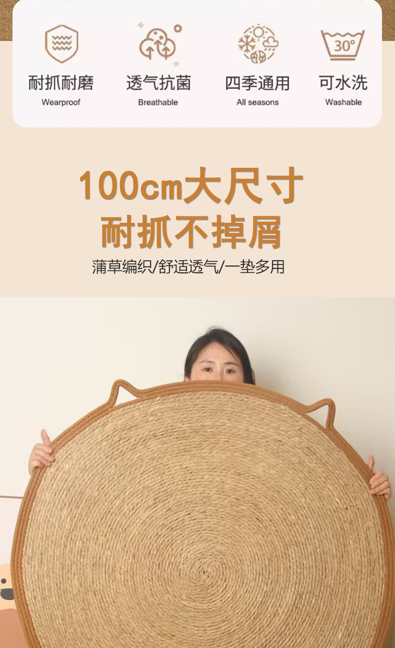 宠物窝四季通用猫咪窝日系猫抓垫棉绳蒲草编织夏天猫抓板一垫多用