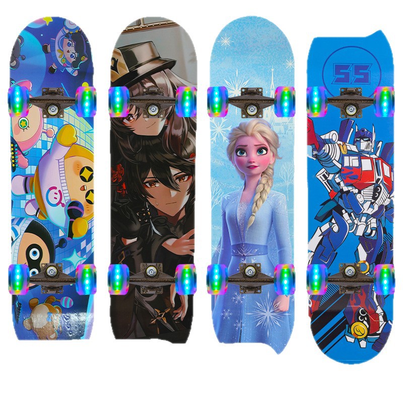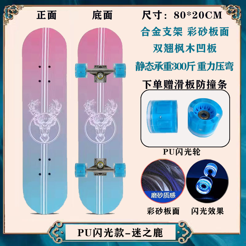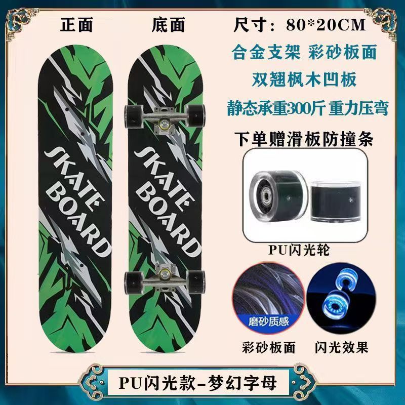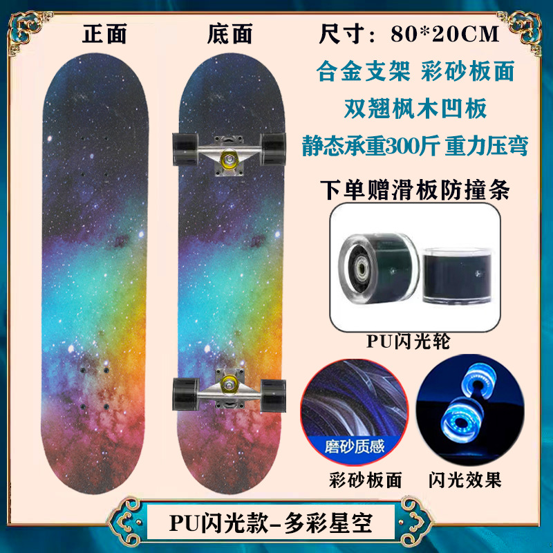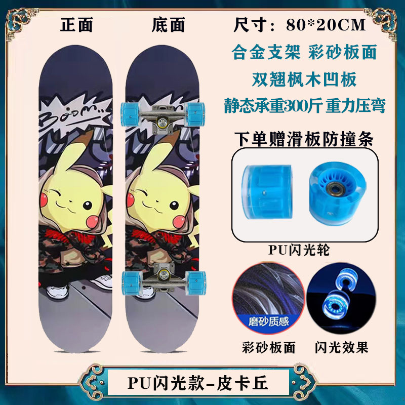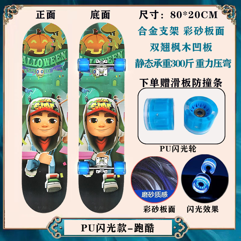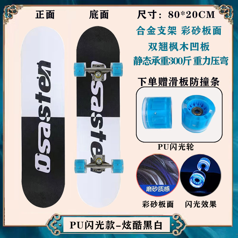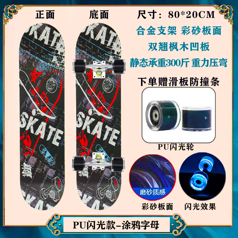 工厂现货儿童滑板车6一12岁初学者青少年刷街四轮闪光双翘滑板