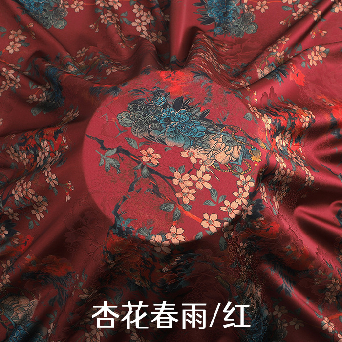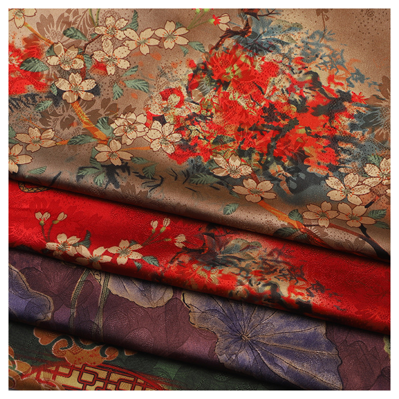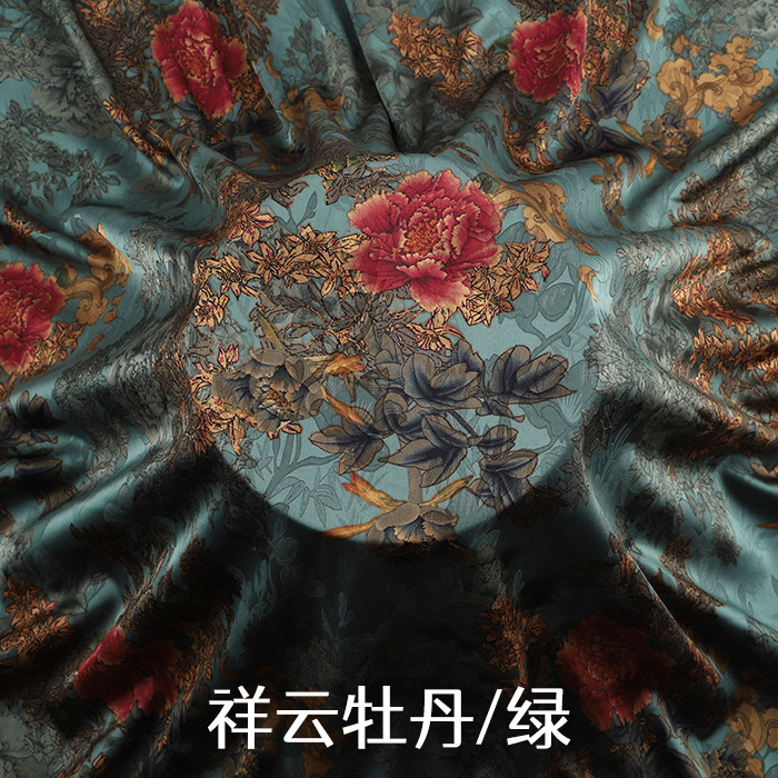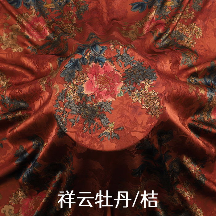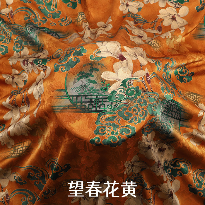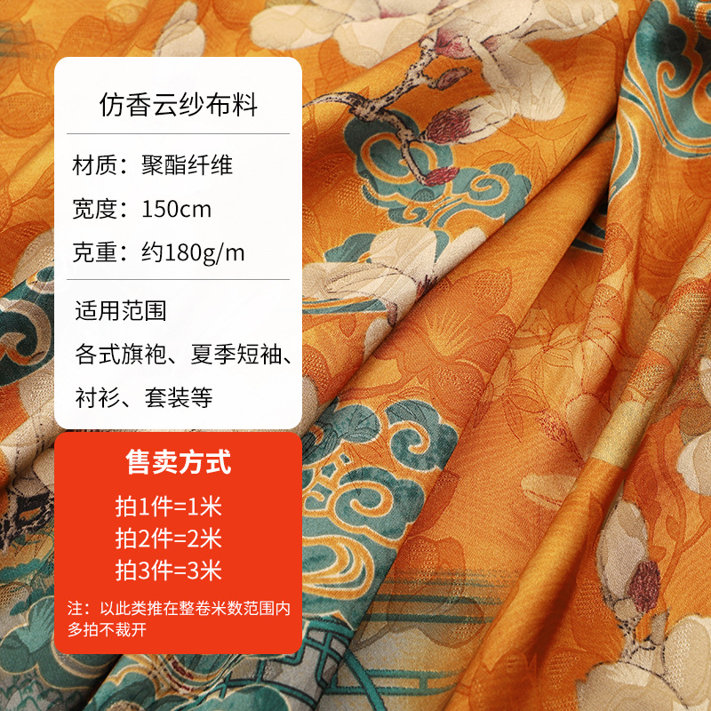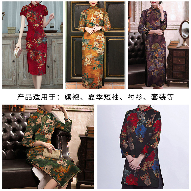 新款高端印花仿真丝香云纱布料柔软旗袍中国风连衣裙唐装制衣面料
