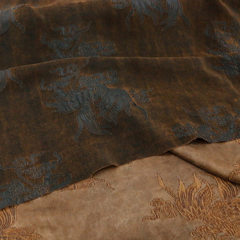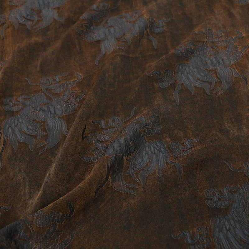 重磅非遗香云纱锦鲤纹样提花真丝冠乐绉莨绸布料服装设计师面料