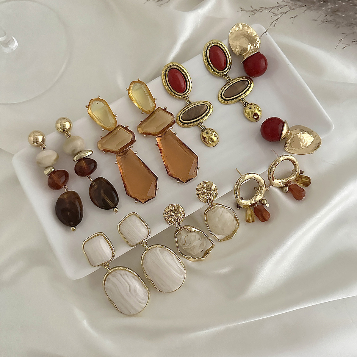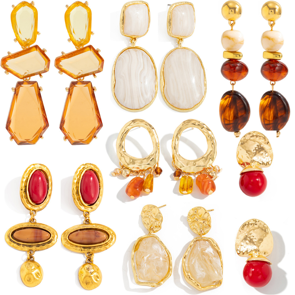 欧美跨境复古几何晕染树脂吊坠耳钉 时尚ins不规则亚克力金属耳饰