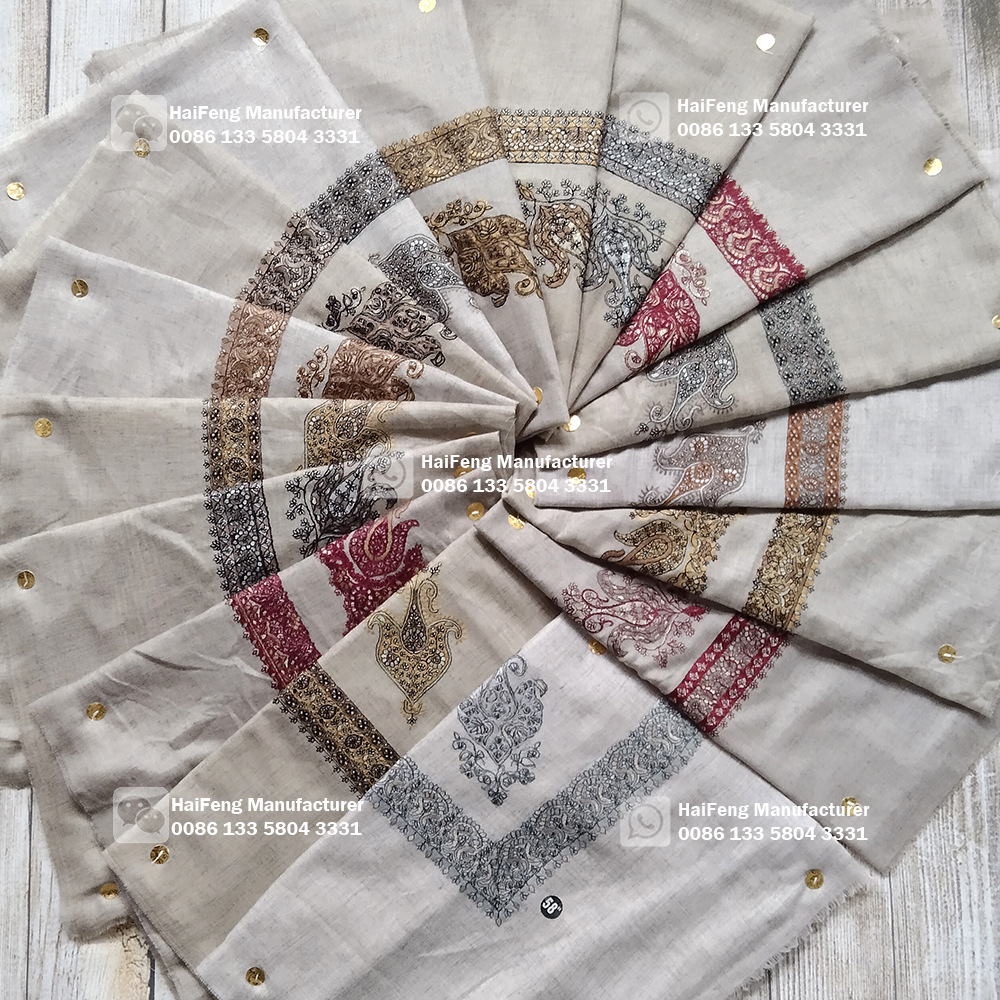 迪拜阿曼中东男士穆斯林绣花头巾围巾高档羊毛新款克什米尔沙特