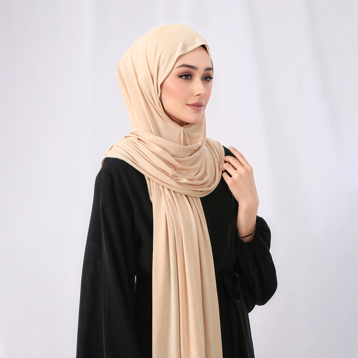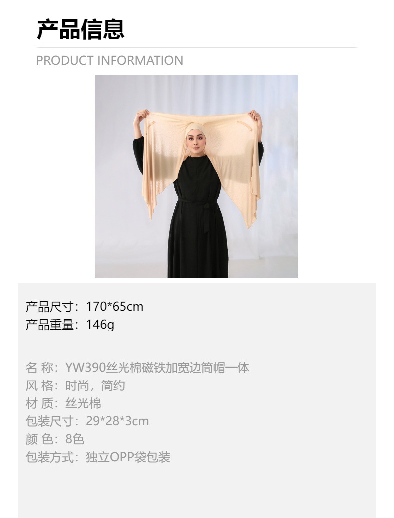东南亚热销爆款丝光棉磁铁长巾女百搭方便宽边筒帽一体披肩头巾