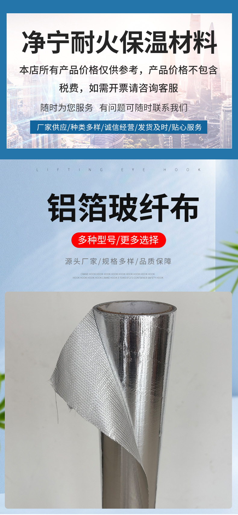 防火铝箔布耐高温阻燃外护层管道保温隔热布玻璃纤维铝箔玻纤布