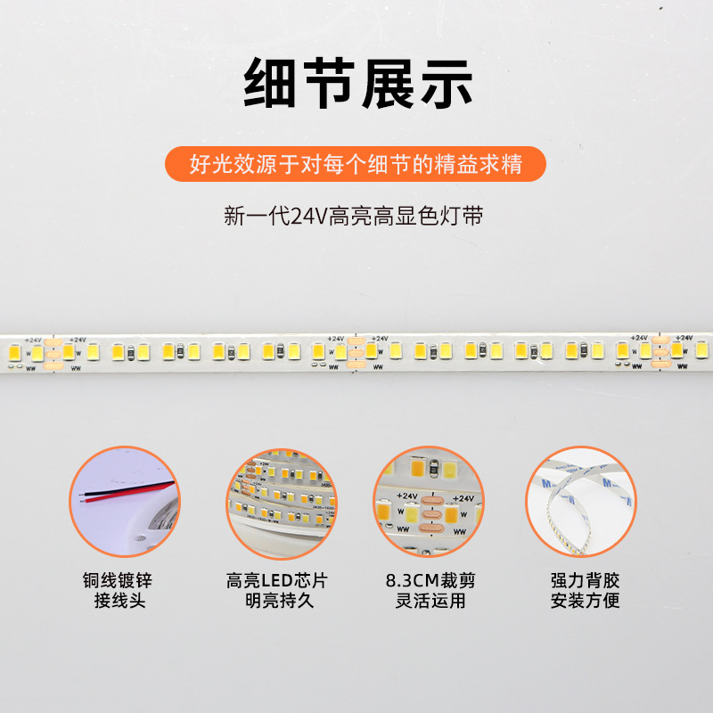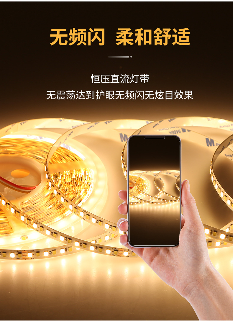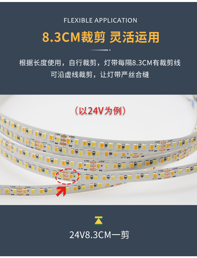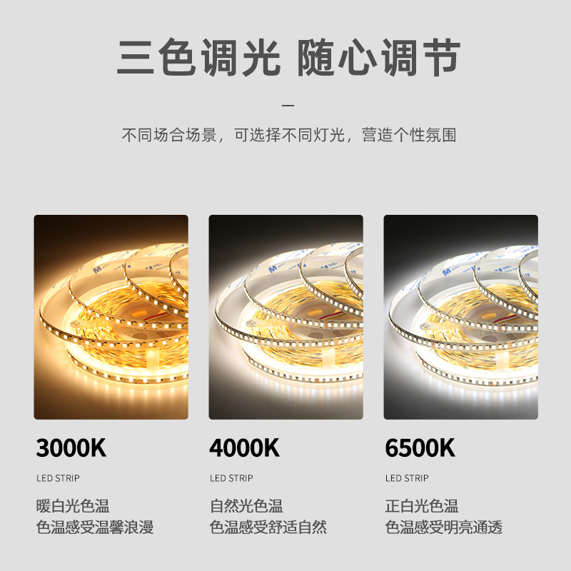 灯带LED灯条三色变光自粘客厅24V8mm192双色温智能无极调光线条灯