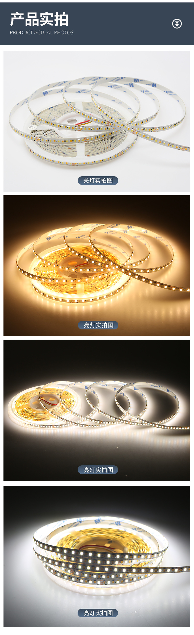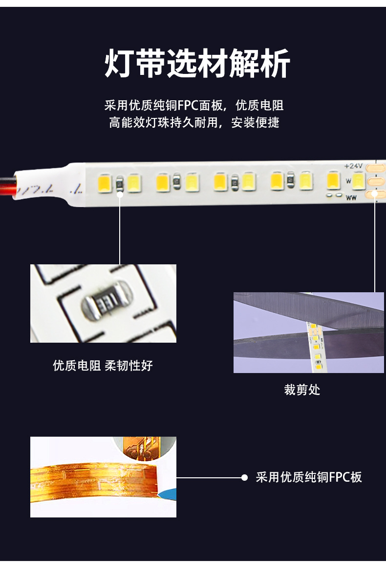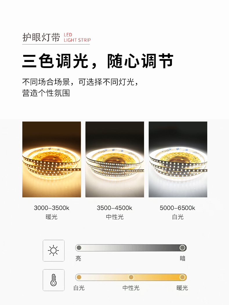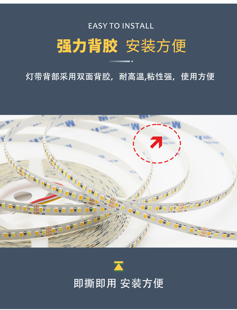 灯带LED灯条三色变光自粘客厅24V8mm192双色温智能无极调光线条灯
