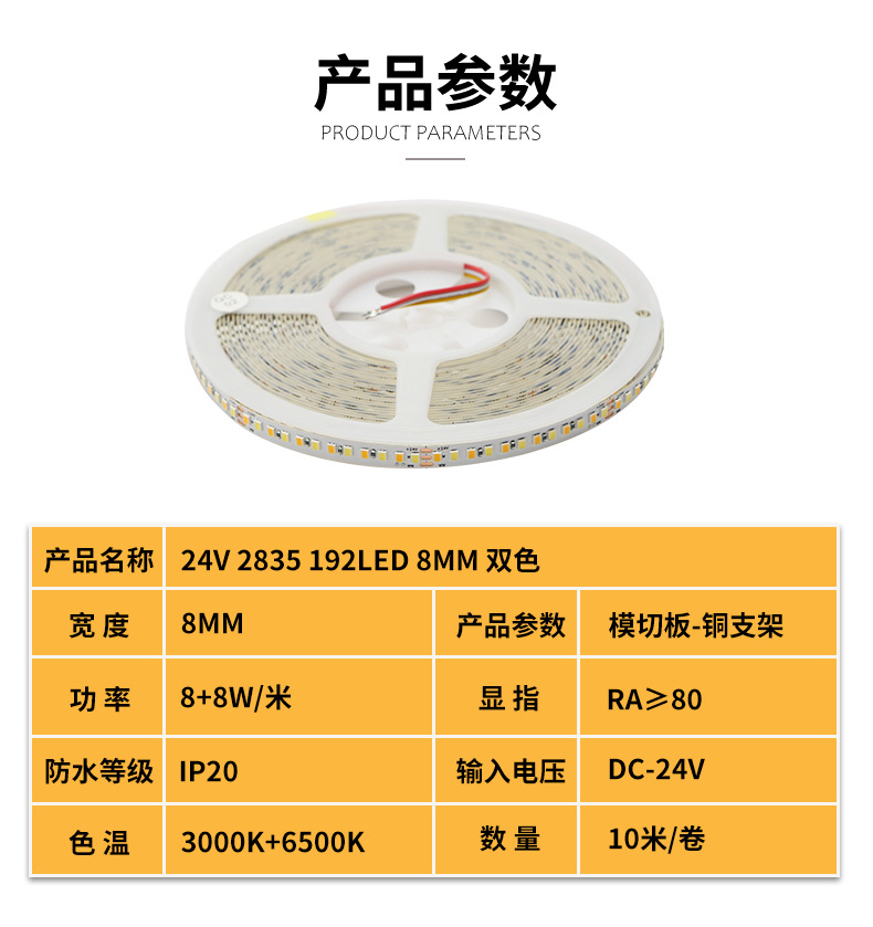 | 24V 2835 192D 8mm 双色 | USD $0.68 | 4270 m available |