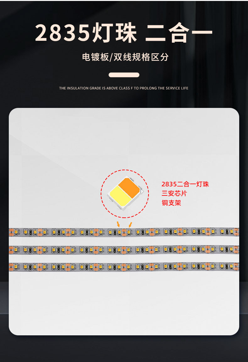 低压24V 2835嵌入式 led双色温灯带224灯/米柔性变光自粘软灯带