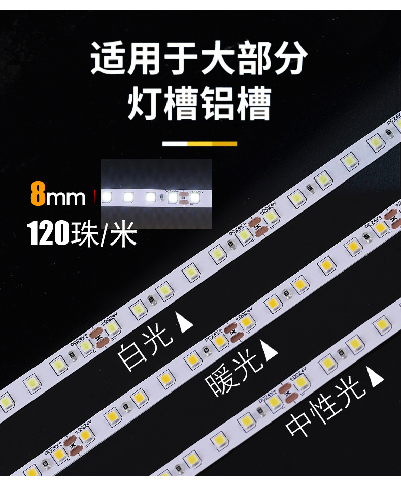 跨境灯带led灯条2835低压12V24V自粘家装吊顶铝槽装饰线型灯批发